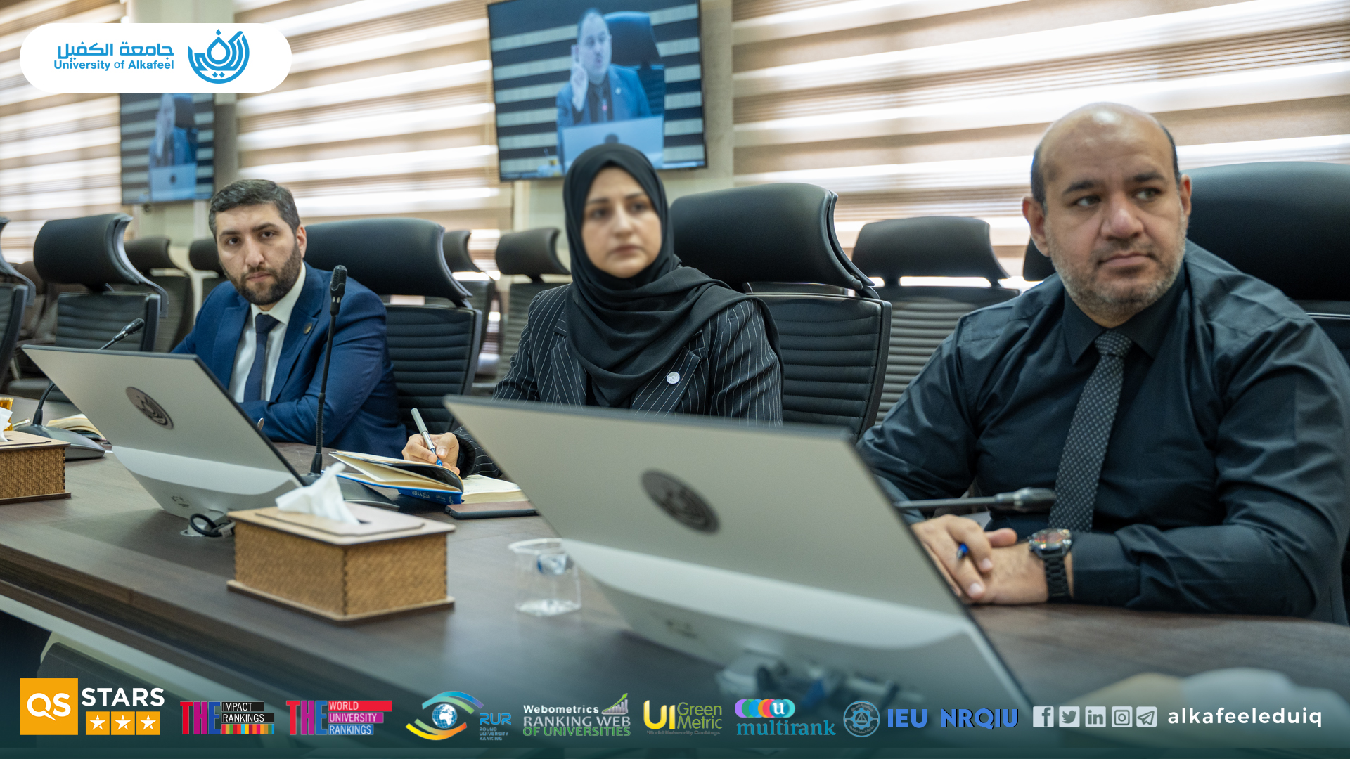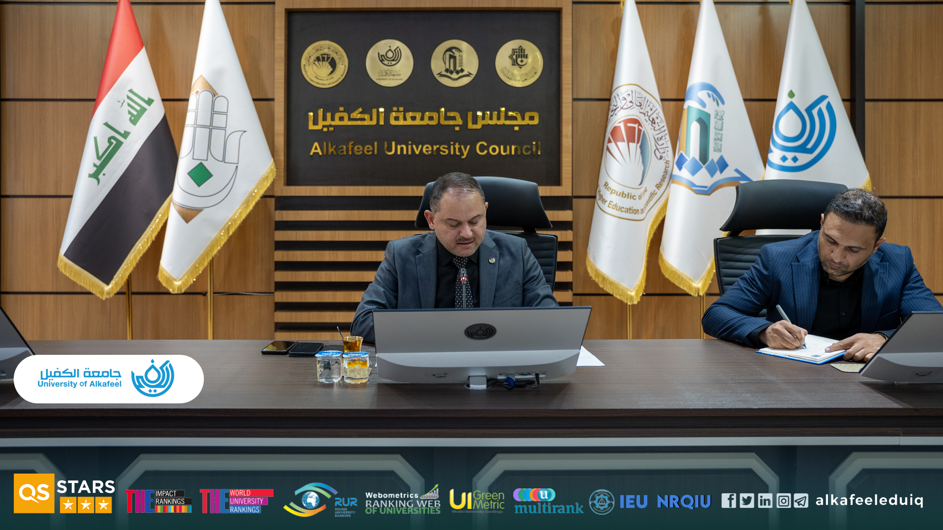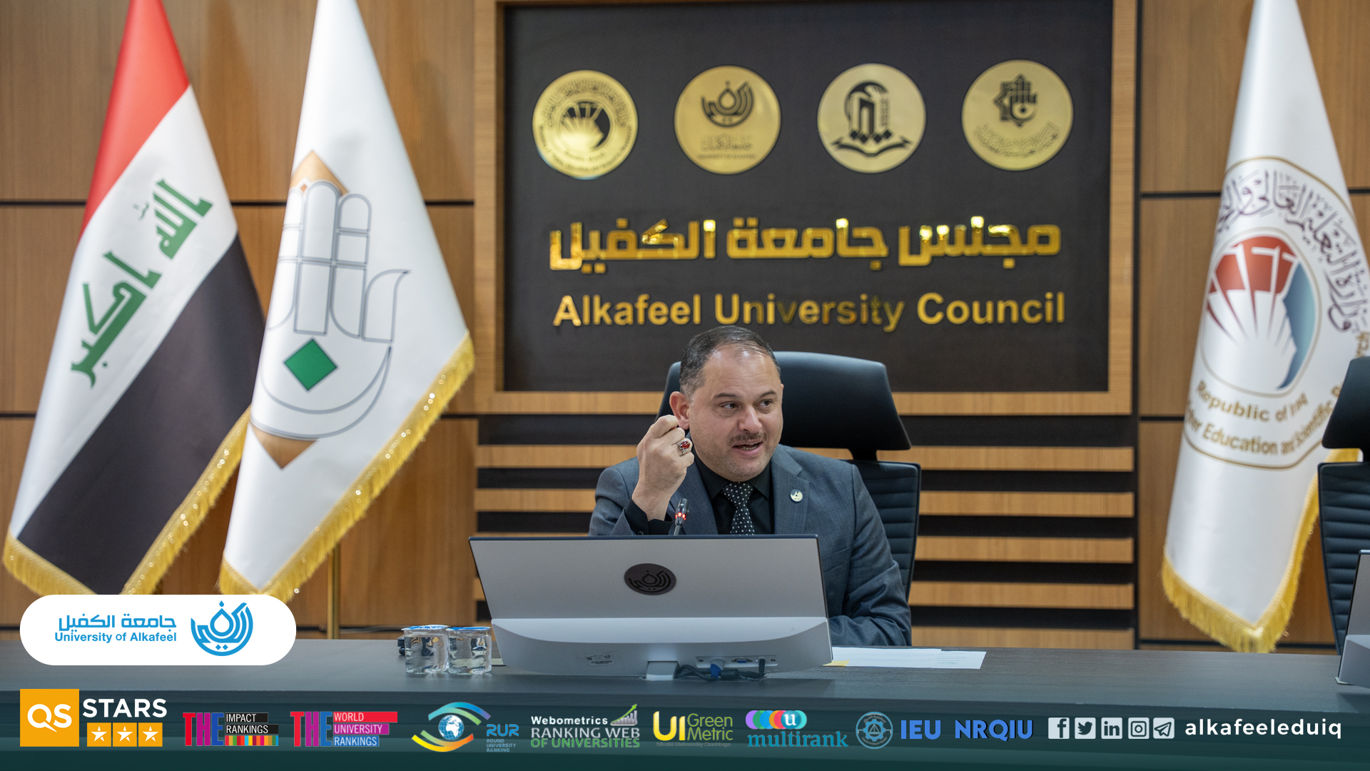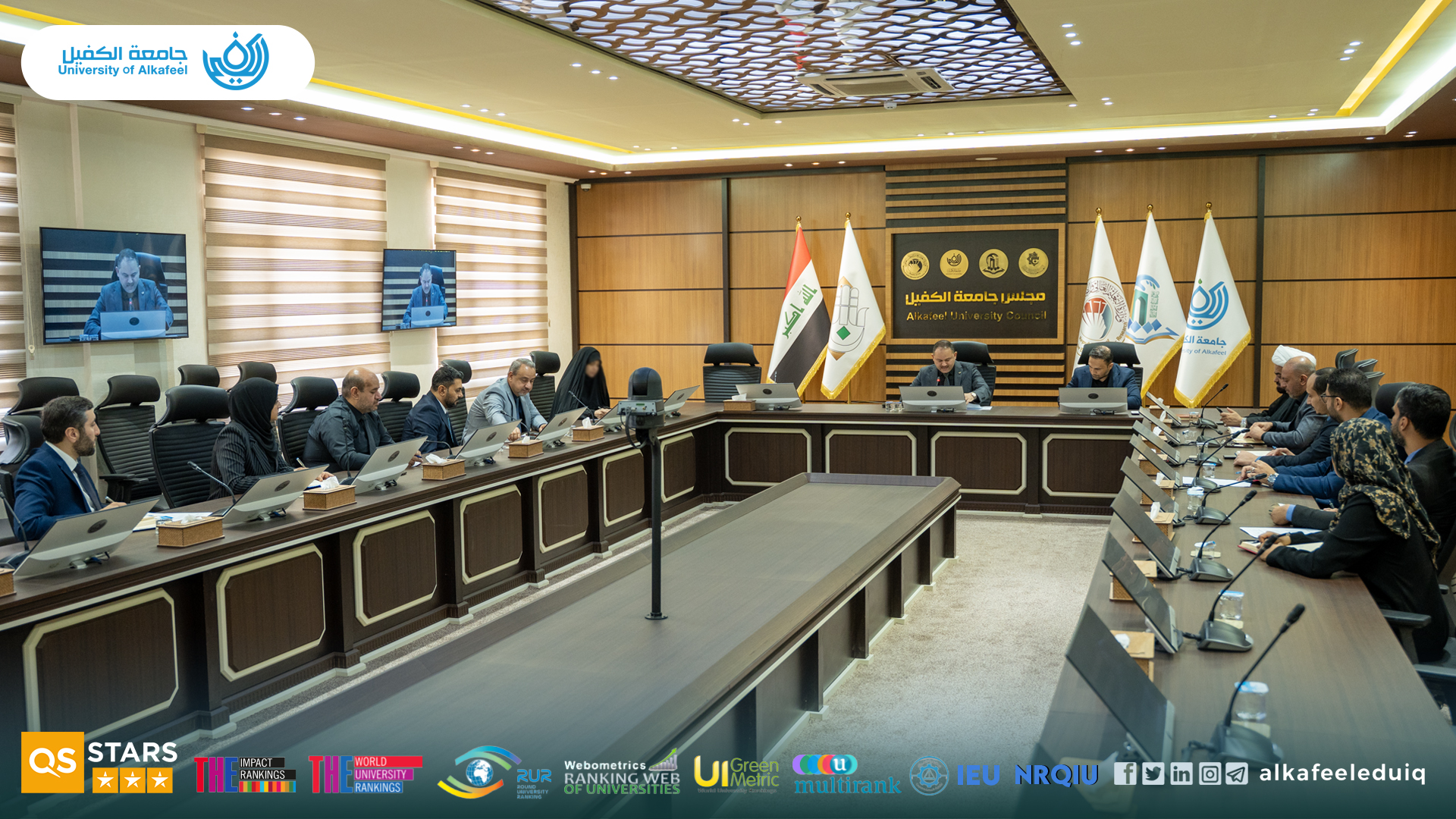 The University of Alkafeel Council held its first session for the new academic year 2025-2026 on Wednesday, 1 October 2025, chaired by Prof.Dr. Nawras Mohammed Shaheed Al-Dahan, and attended by vice-chancellor for academic affairs , Prof.Dr. Nawal Ayed Al-Mayali, and the deans and assistants of the colleges.