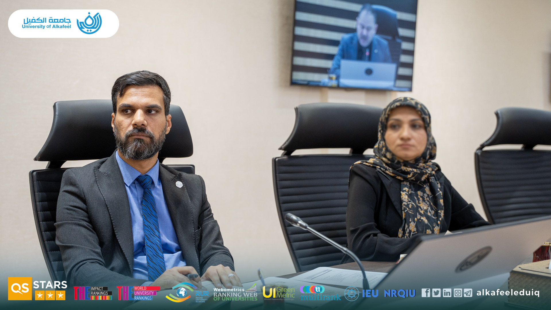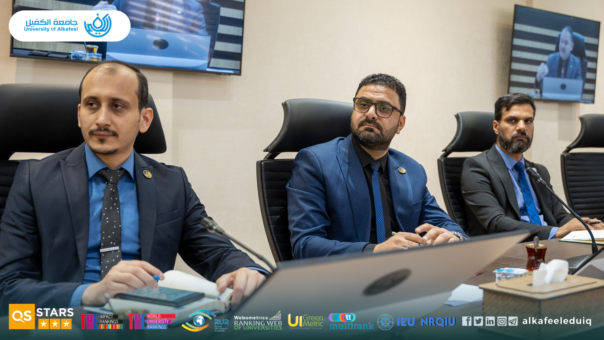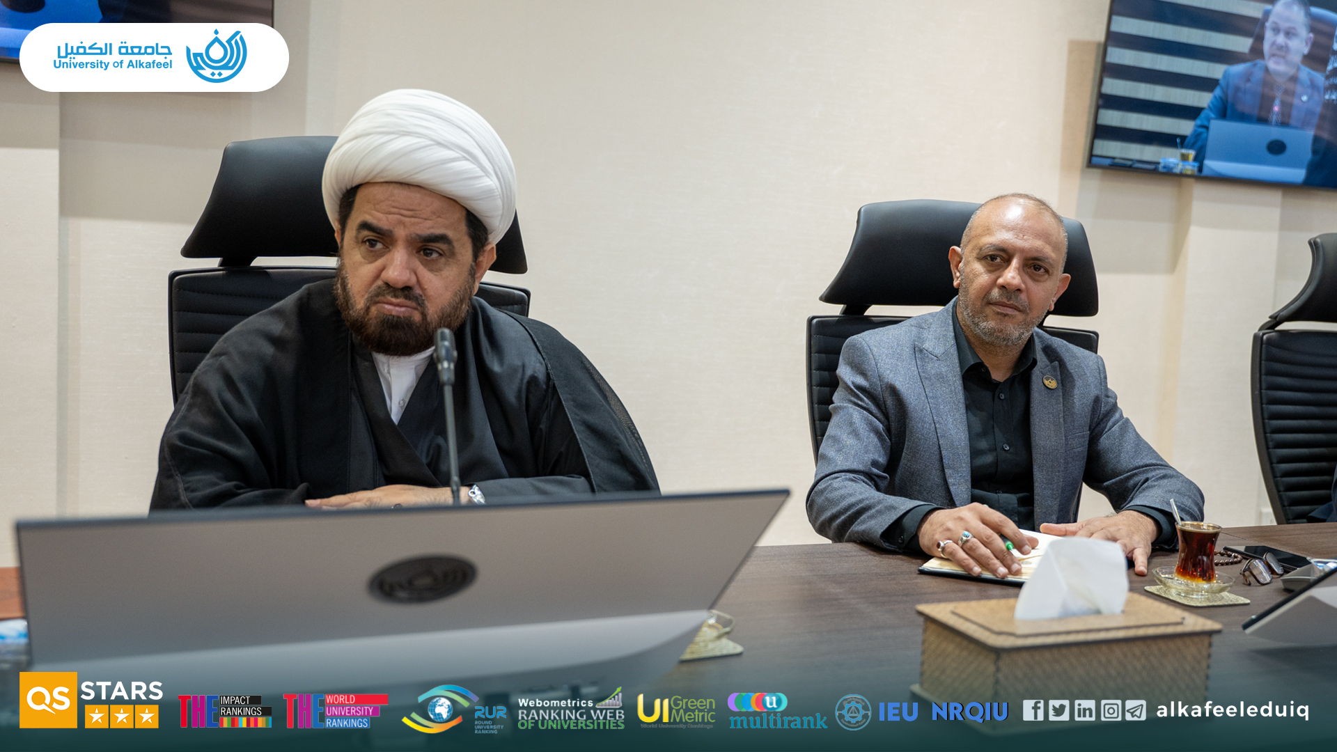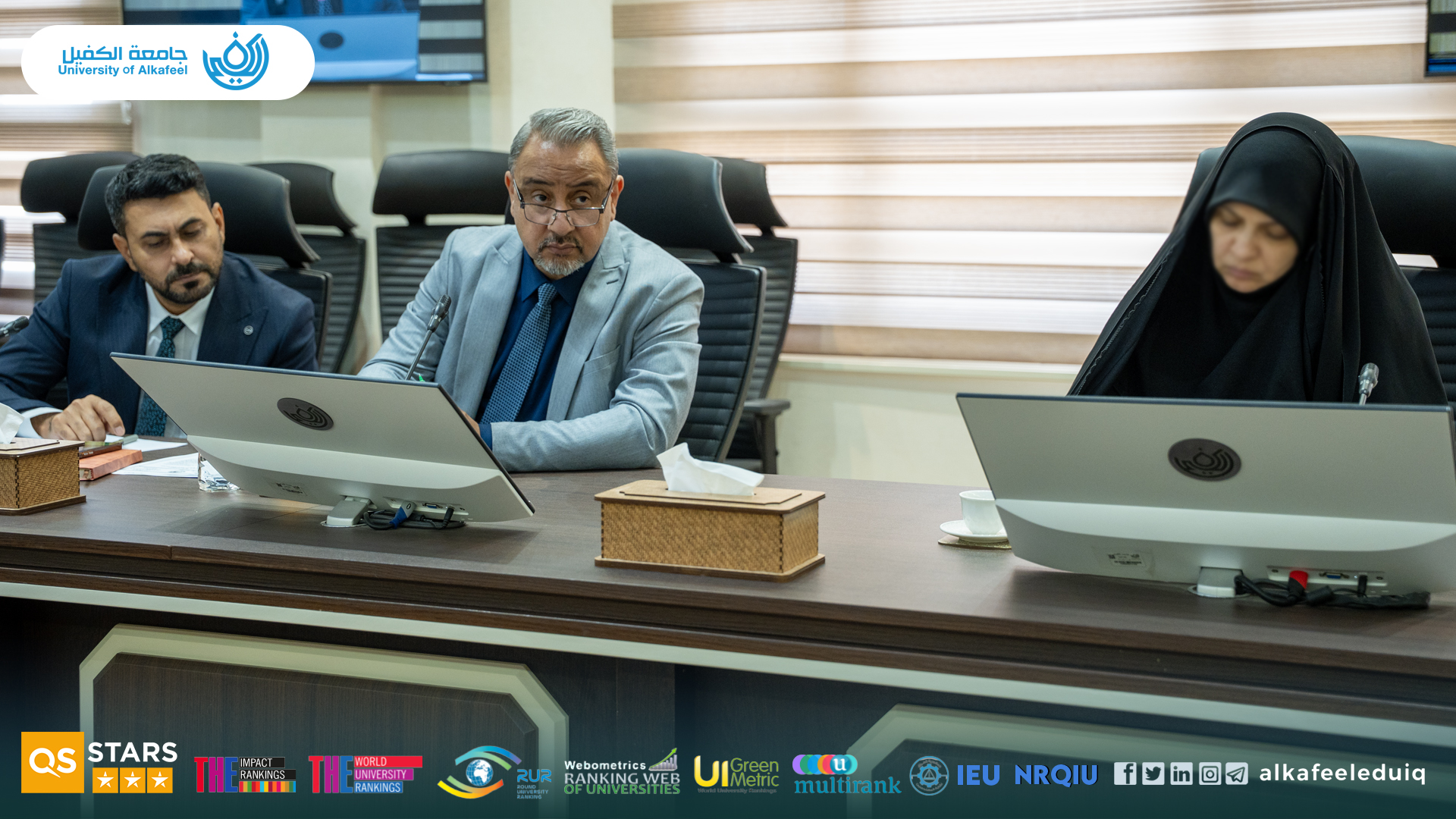 The University of Alkafeel Council held its first session for the new academic year 2025-2026 on Wednesday, 1 October 2025, chaired by Prof.Dr. Nawras Mohammed Shaheed Al-Dahan, and attended by vice-chancellor for academic affairs , Prof.Dr. Nawal Ayed Al-Mayali, and the deans and assistants of the colleges.