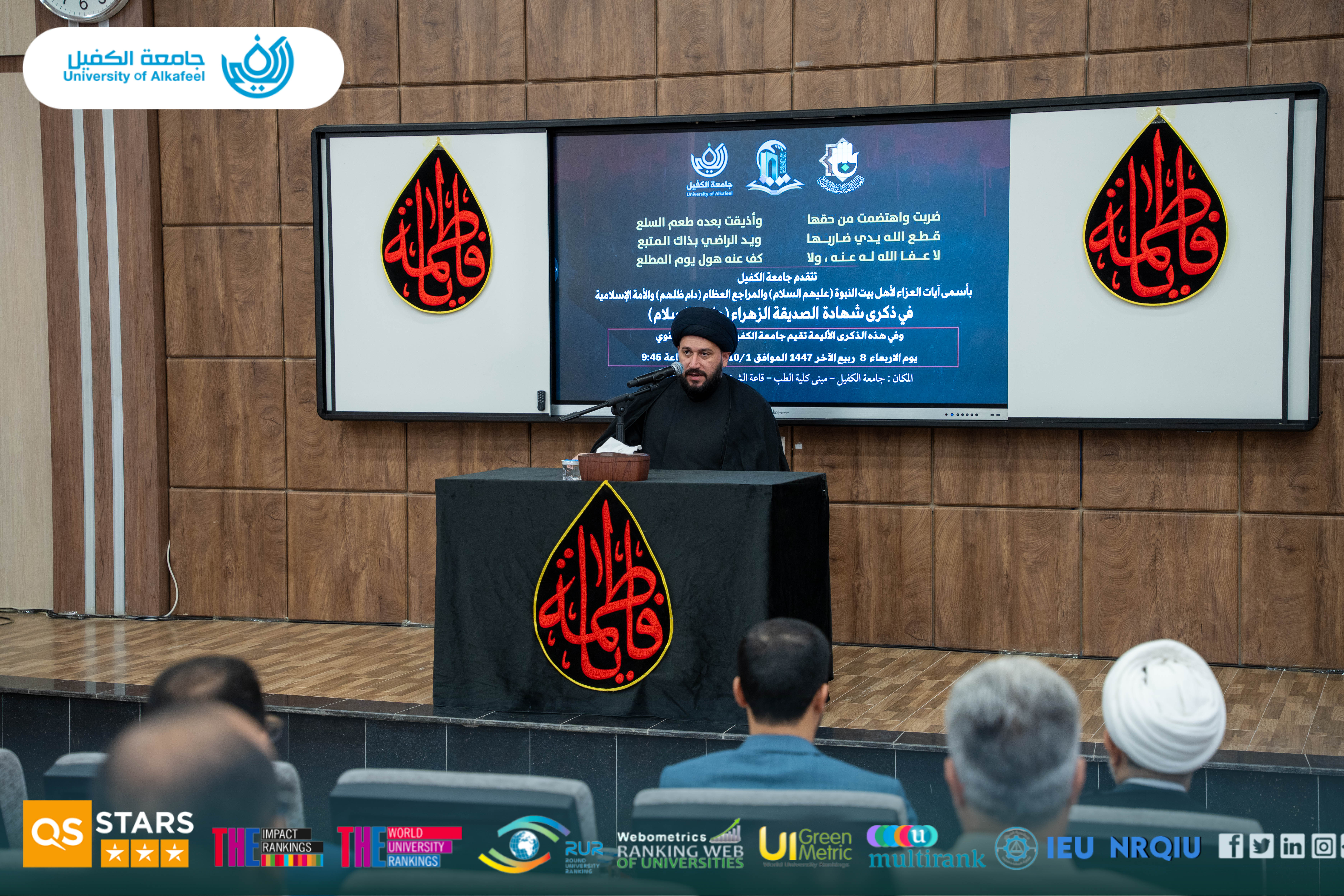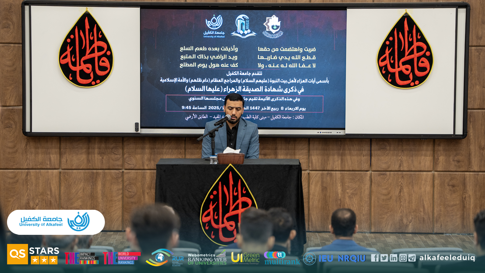 On Wednesday, 1 October 2025, the Department of Psychological Guidance and Educational Orientation at University of Alkafeel organized a mourning session to commemorate the martyrdom anniversary of seida.Fatima al-Zahra (peace be upon her), the Lady of the Worlds. The session was held at the College of Medicine building.