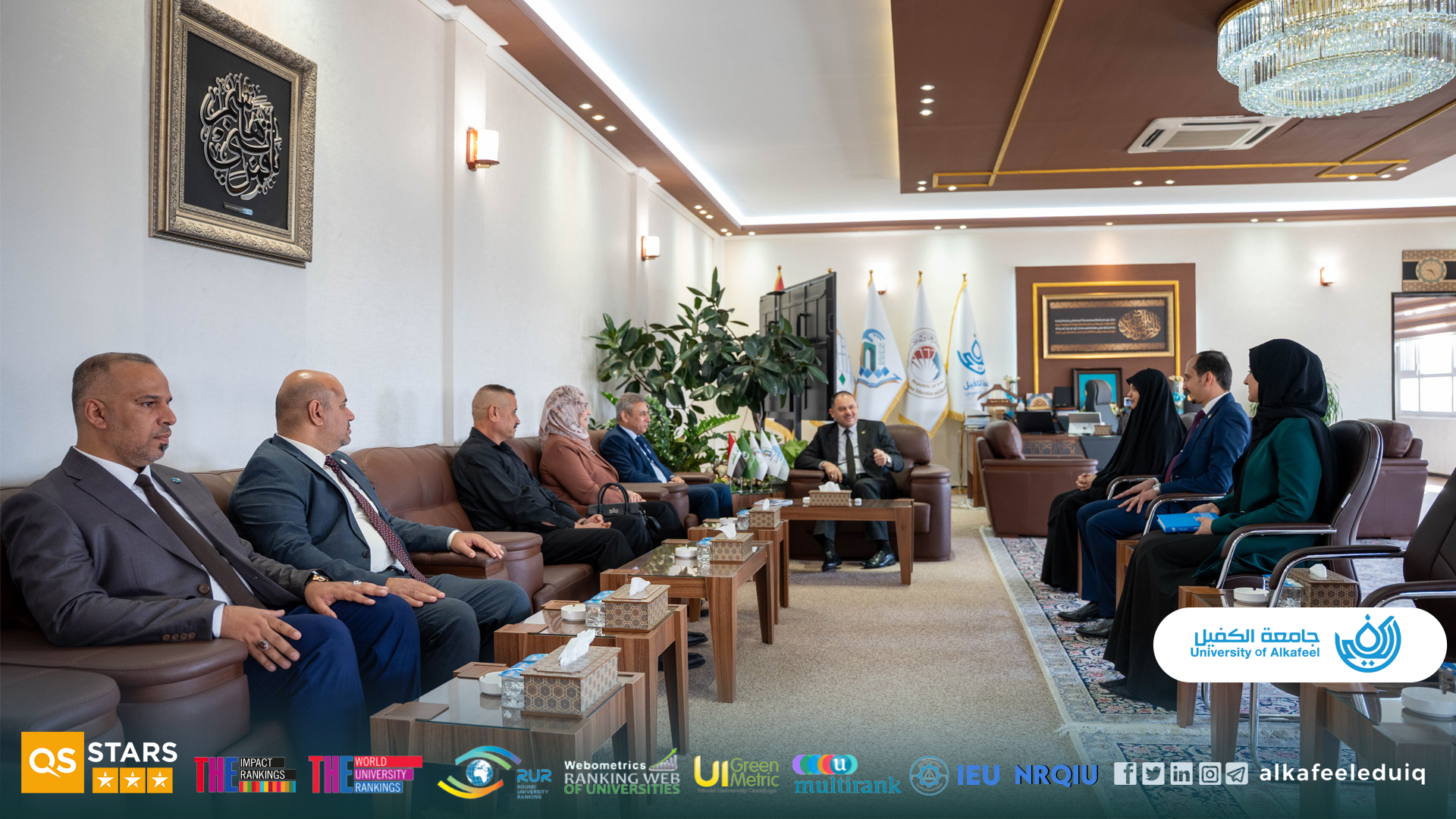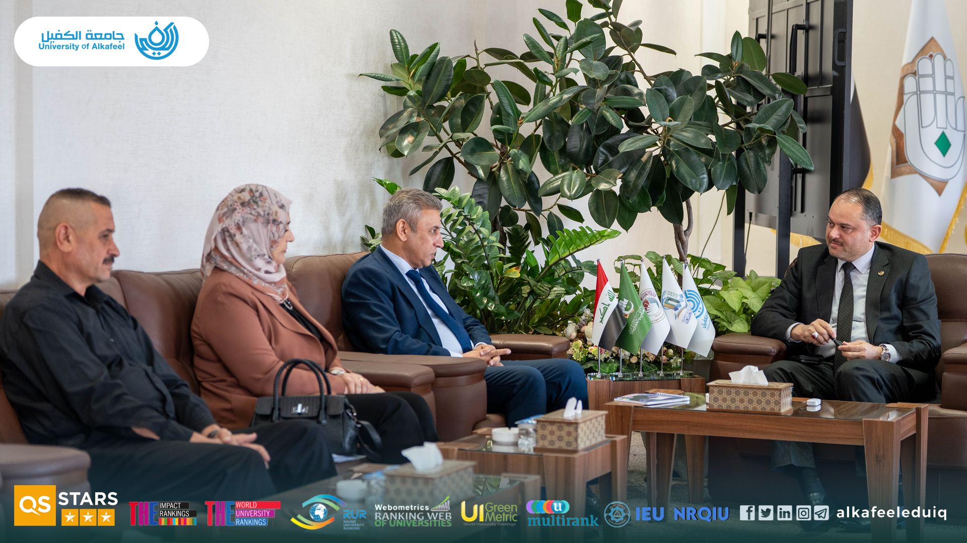 The President of University of Alkafeel , Prof. Dr. Nawras Mohammed Shaheed Al-Dahan, received the visiting ministerial committee at the Alkafeel Research Center for Medical and Pharmaceutical Sciences on Tuesday morning, 7 October 2025. The committee was attended by the Scientific Assistant, Prof. Dr. Nawal Ayed Al-Mayali, and the assistants.