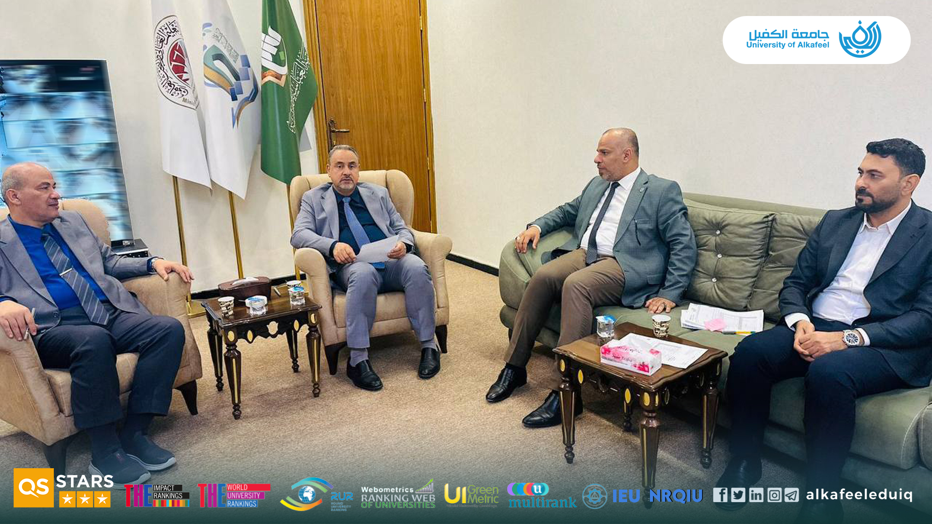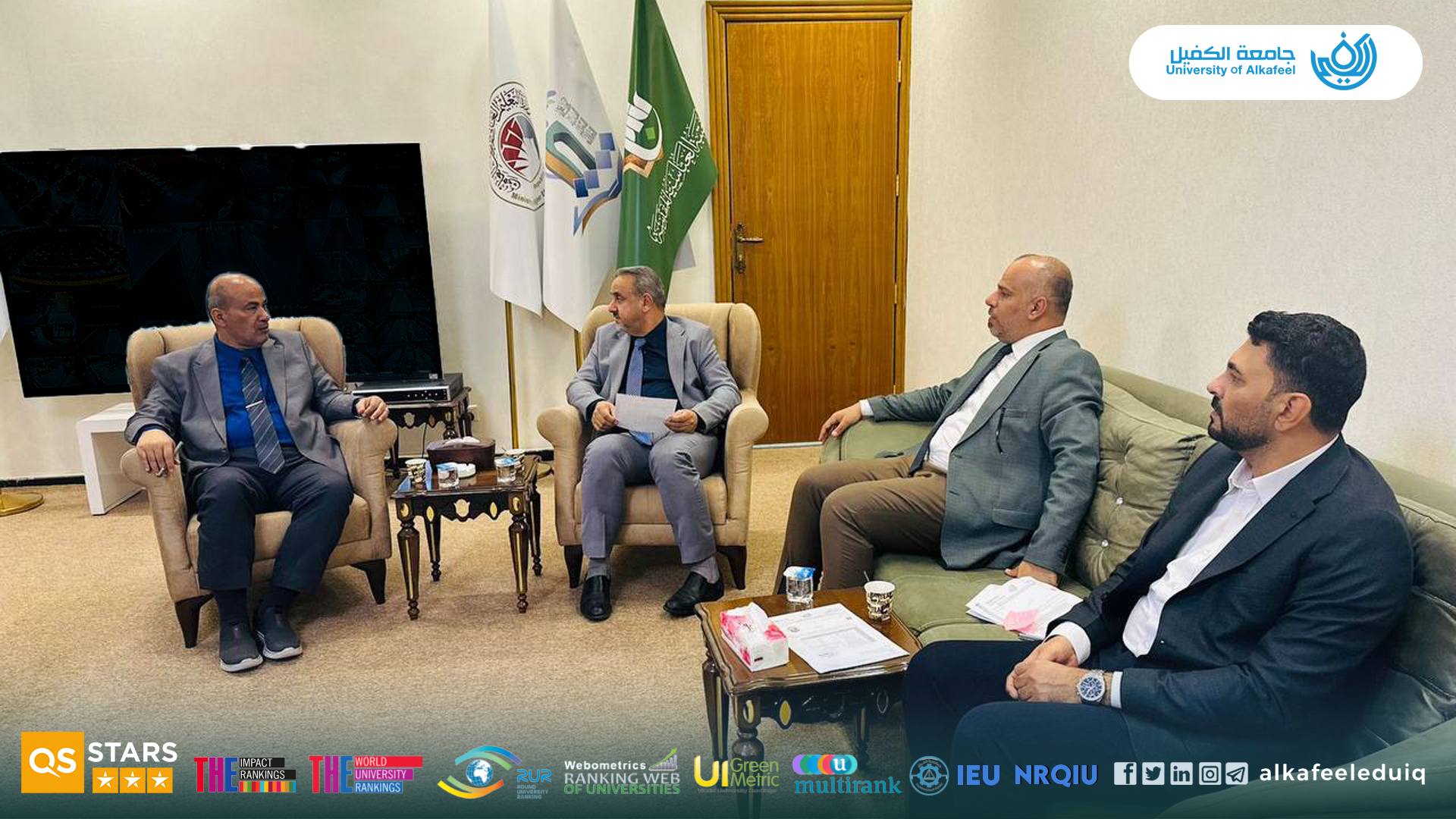 Asst.Prof.Dr. Karim Maktouf Attia Al-Ghanim, Dean of the College of Dentistry at University of Alkafeel , and his assistants received Prof. Dr. Ali Hadi Fahd, Dean of the College of Dentistry at the University of Kufa, on Monday, October 13, 2025, for a scientific visit to solidify the academic cooperation and exchange of expertise.