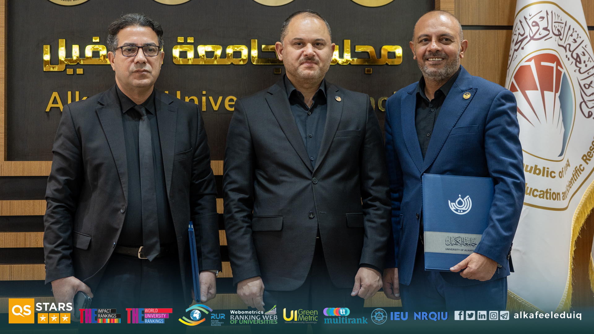 The signing ceremony occurred in the presence of the President of University of Alkafeel , Prof. Dr. Nawras Mohammed Shaheed Al-Dahan. The agreement was signed on behalf of University of Alkafeel by Prof. Dr. Fadhel Ismail Sharad, and on behalf of the University of Kufa by Prof. Dr. Haider Saleh Al-Shafie, Dean of the College of Science.