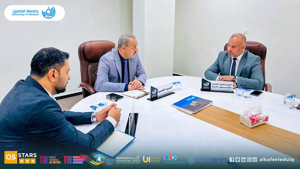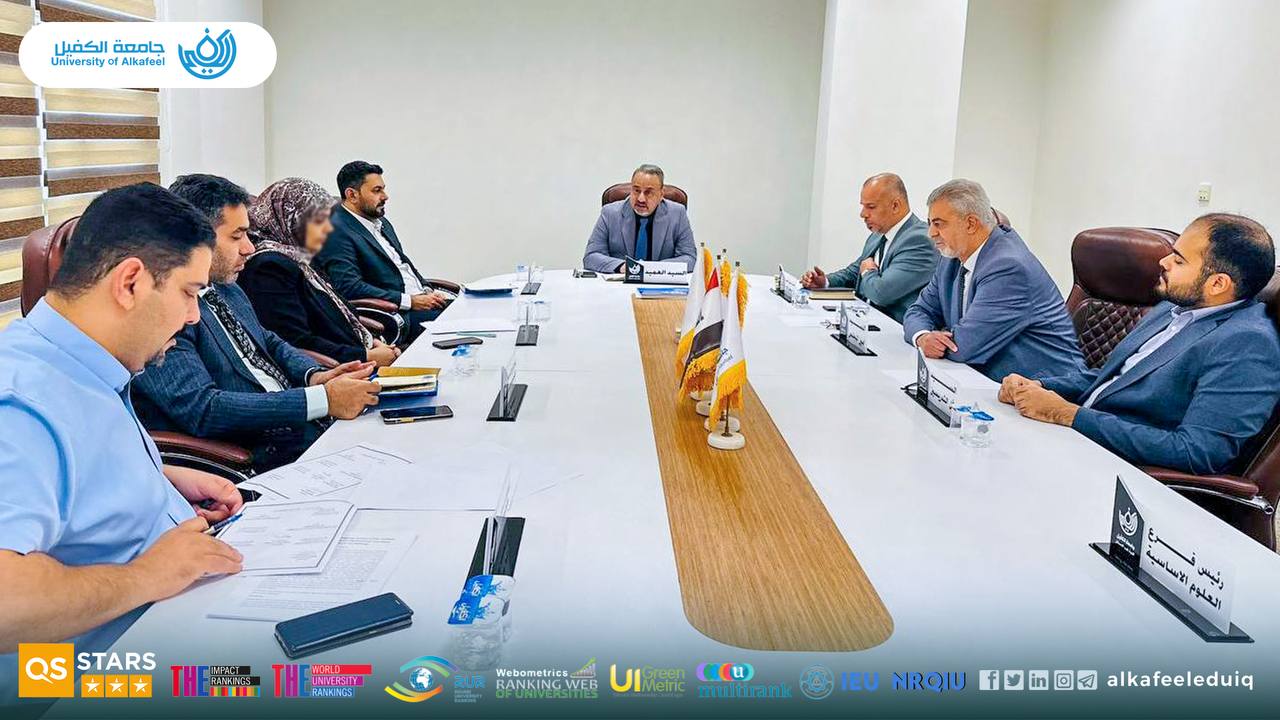The Deanship of the College of Dentistry at University of Alkafeel held a Council meeting on Monday, October 13, 2025, chaired by Asst. Prof. Dr. Karim Maktouf Attia Alghanim, Dean of the College. The meeting discussed key academic and administrative issues as part of ongoing development plans and was attended by Council members, who discussed ways to advance and expand scientific research within the College. They also discussed mechanisms to improve academic performance and enhance the quality of education to meet the requirements of the Ministry of Higher Education and Scientific Research. During the meeting, the Dean emphasized the importance of strengthening the role of the College in serving the community through volunteer and awareness programs and monitoring student attendance in classrooms and educational clinics to ensure the highest levels of discipline and academic responsibility.
