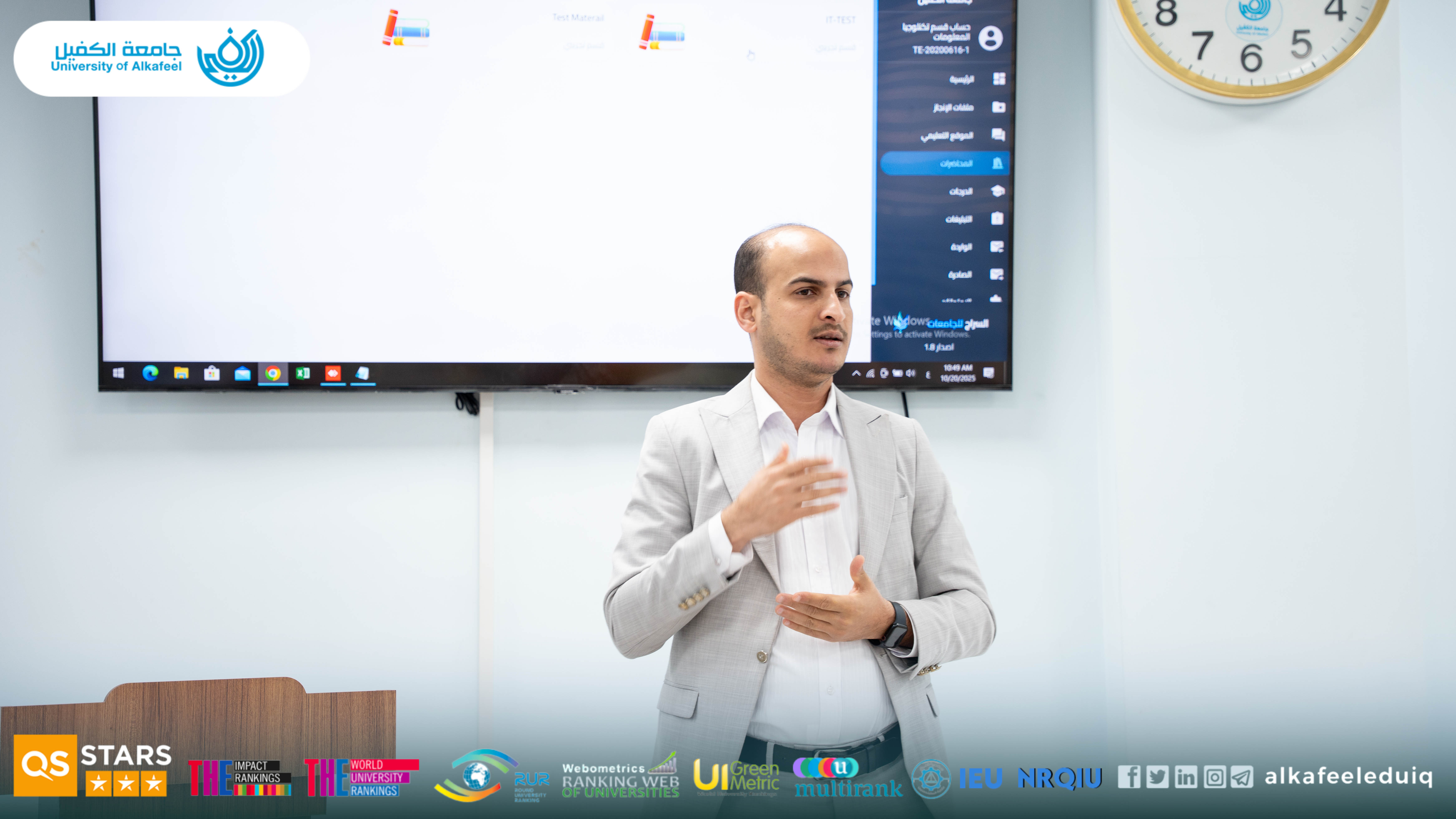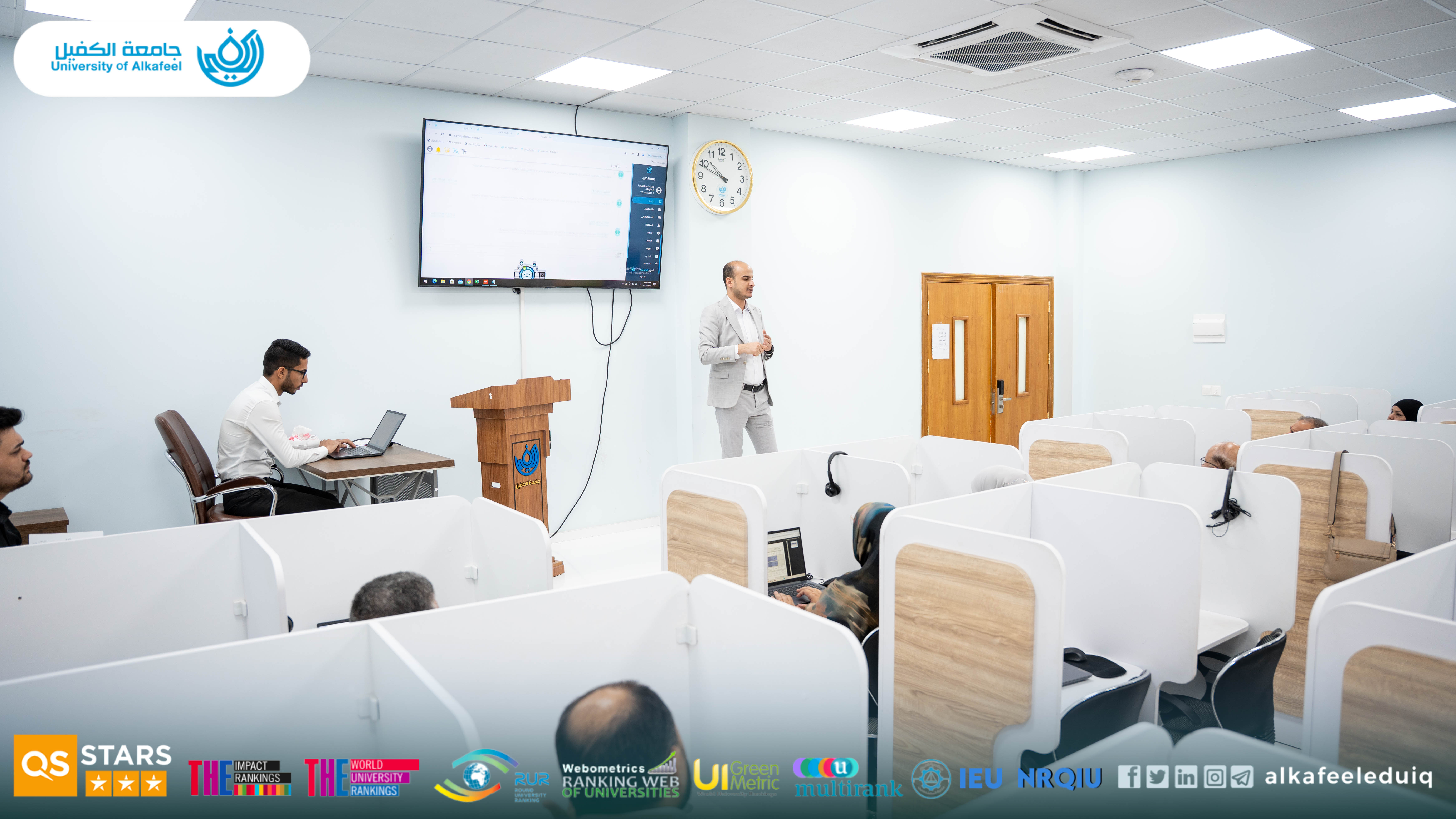 The workshop was presented by Dr. Ali Abdul Zahra, Director of Information Technology Department at University of Alkafeel , who addressed the technical aspects, infrastructure management, and technical support for smart classrooms, and Engr. Muhammad Jawad Kadhim, who provided practical explanations on operating system units, managing electronic content, and monitoring student interaction through the platform. The participants emphasized the importance of such training workshops in developing the skills of the faculty members in digital education and enhancing their ability to effectively manage the educational process with modern technological systems.