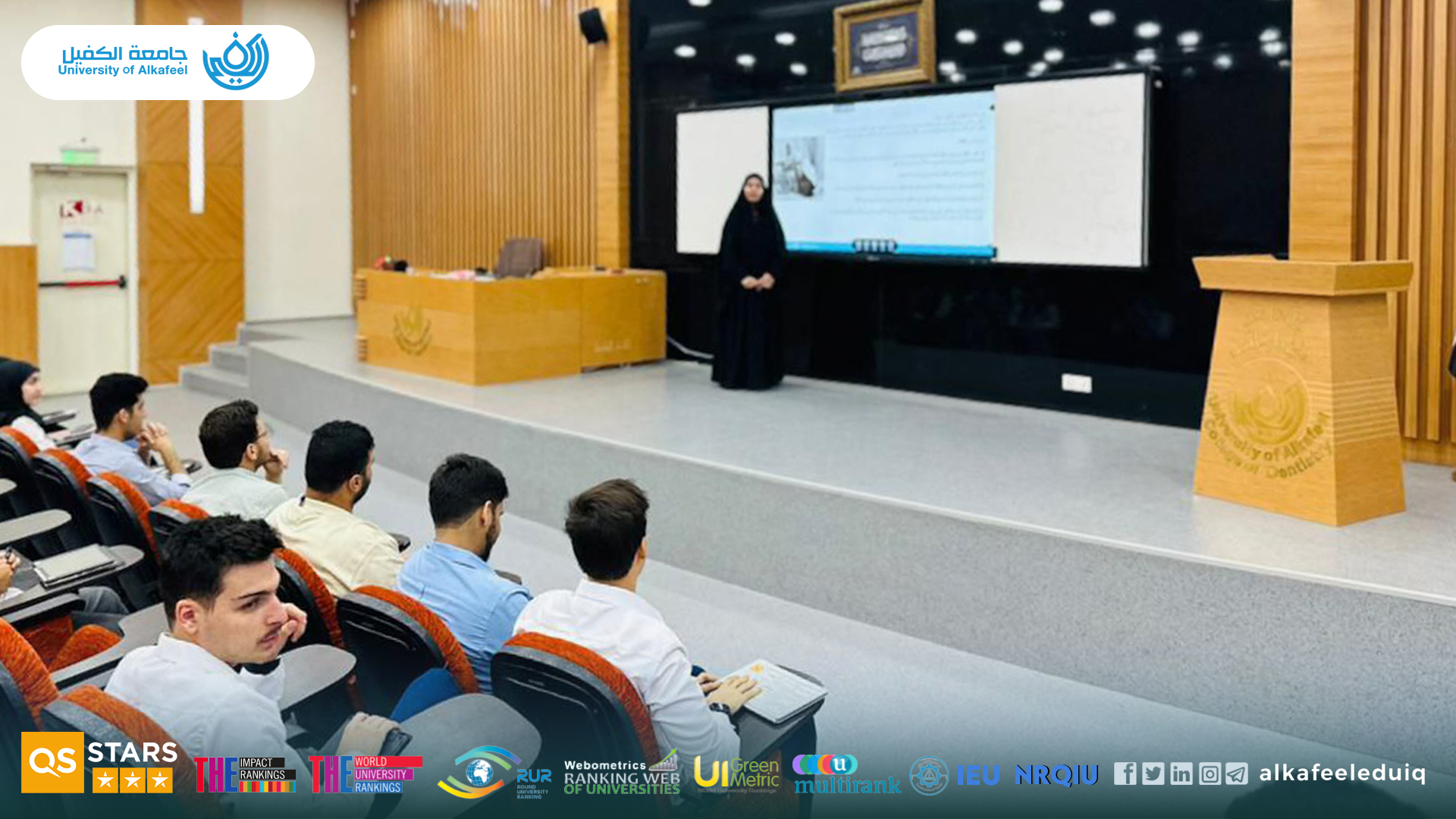 The Department of Psychological Guidance and Educational Orientation at University of Alkafeel , in cooperation with the College of Dentistry, organized an educational guidance lecture on Monday, October 20, 2025, titled “Filial Piety: Supreme Societal Value,” presented by Assistant School Counsl. Kawthar Kadhim Awda, with the participation of fourth-year students.