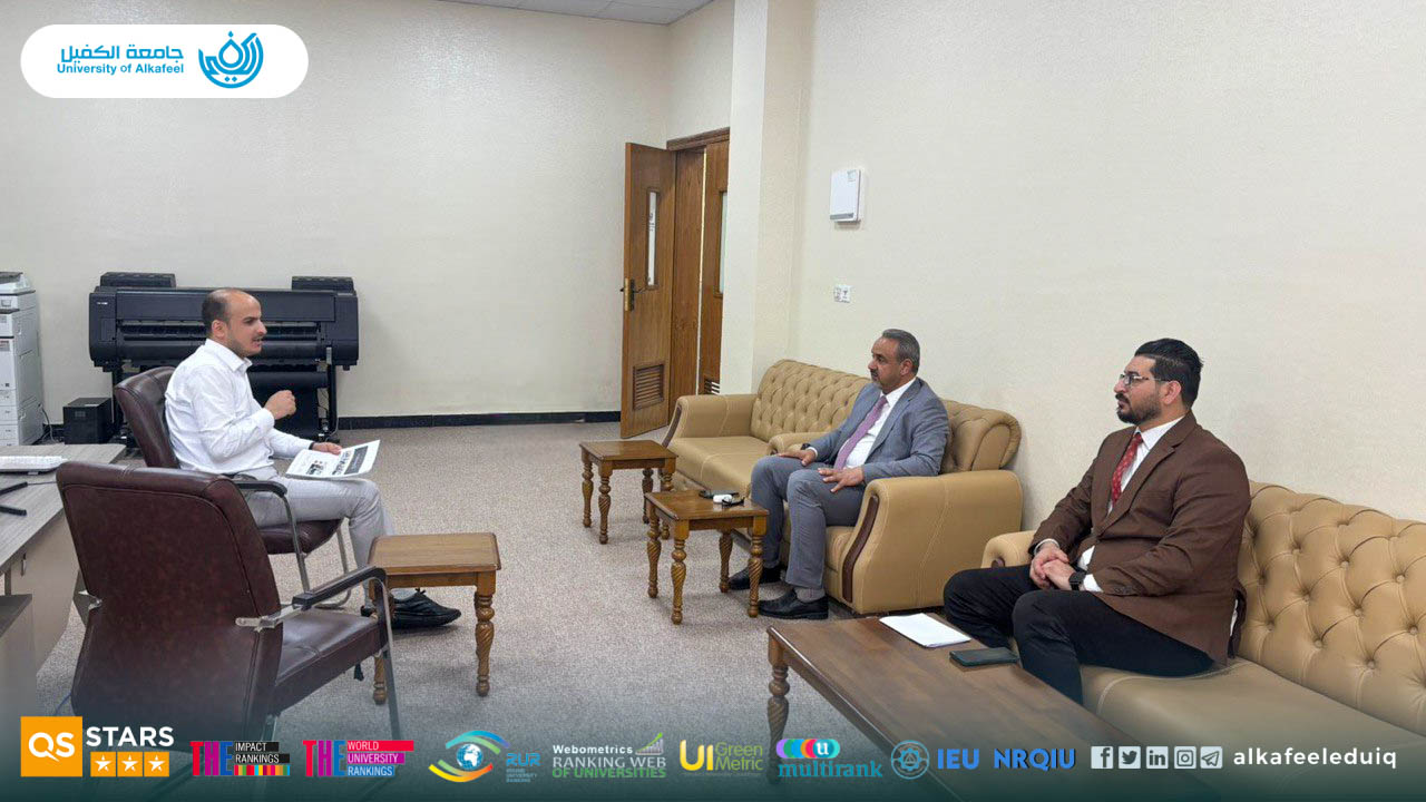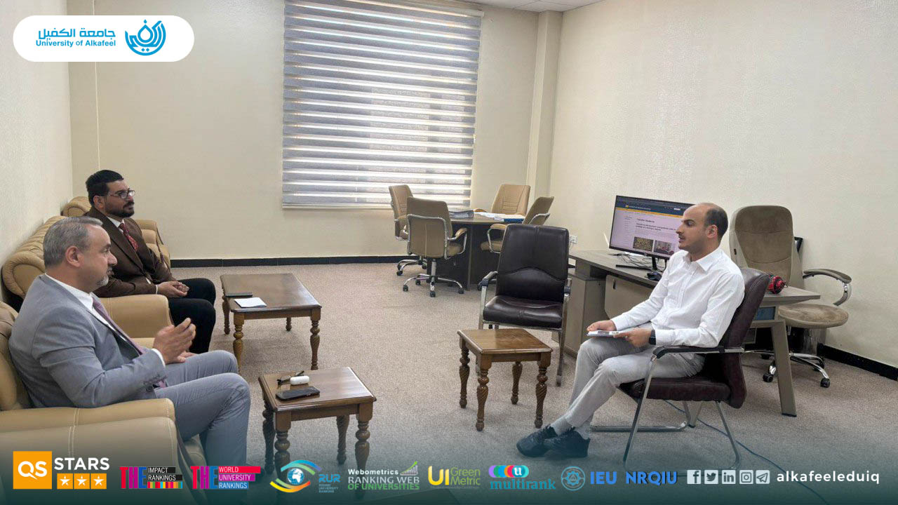As part of the efforts of the University of Alkafeel in the field of digital transformation, the Dean of the College of Dentistry, Asst.Prof.Dr. Karim Maktoof Attia Al-Ghanim, visited the Information Technology Department at the university on Monday, 20 October 2025, accompanied by the head of the Information Technology Unit.