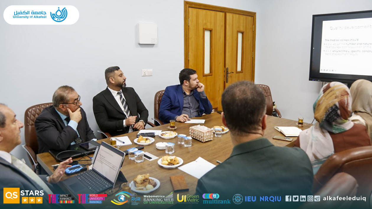 During the meeting, the mechanisms for implementing the Placement Test for second-year students in English language skills were also discussed. The aim is to strengthen their language proficiency and ensure their readiness for English-based medical education, in coordination with the English Language Unit to establish the appropriate procedural and technical foundations for the test.