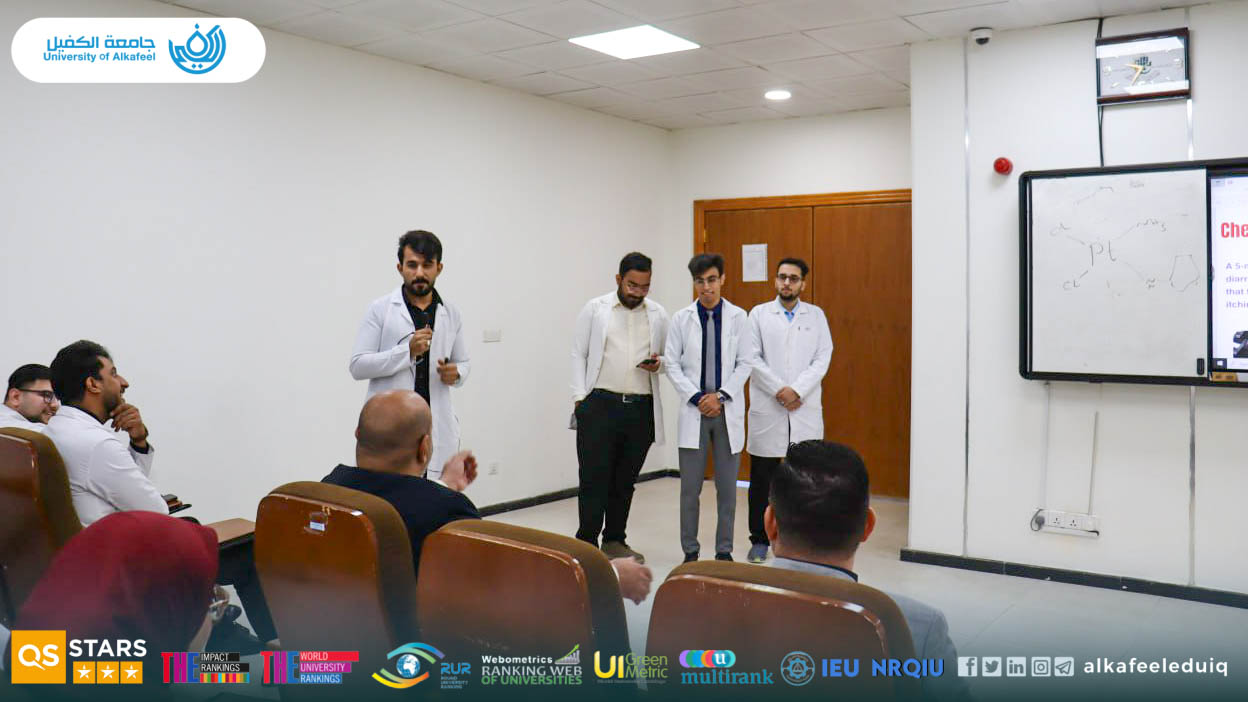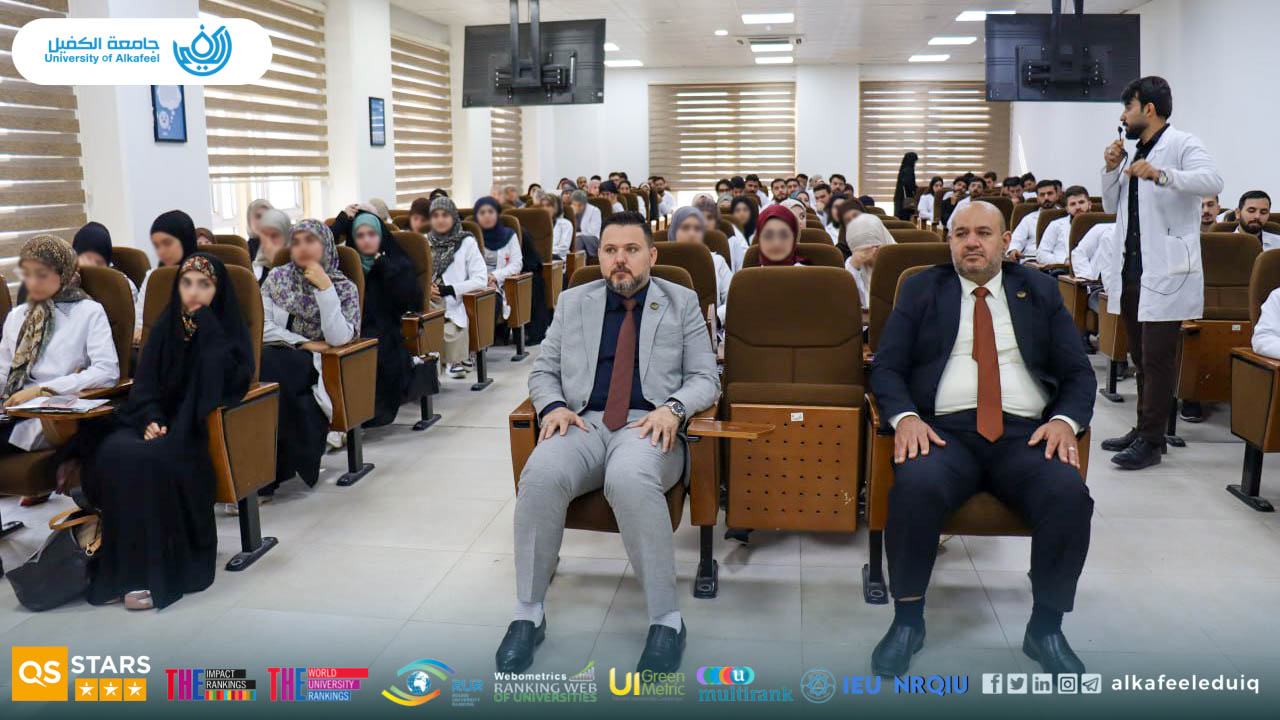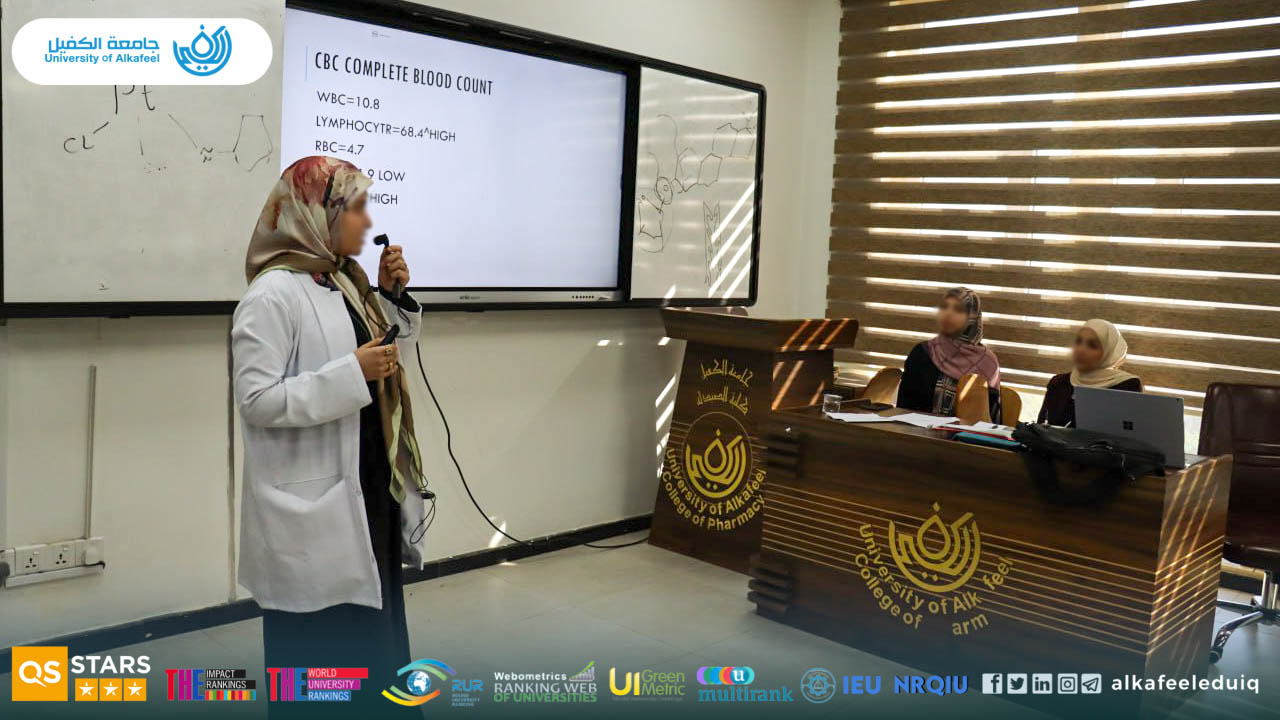 On Tuesday, October 28, 2025, Al-Balaghi Hall at University of Alkafeel , College of Pharmacy hosted a specialized scientific discussion session supervised by the Department of Clinical Pharmacy and overseen by the Assistants for Scientific and Administrative Affairs of the college .