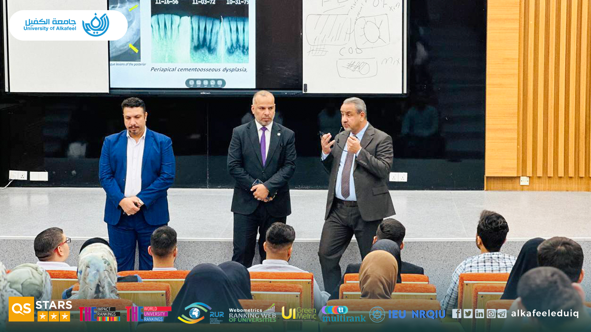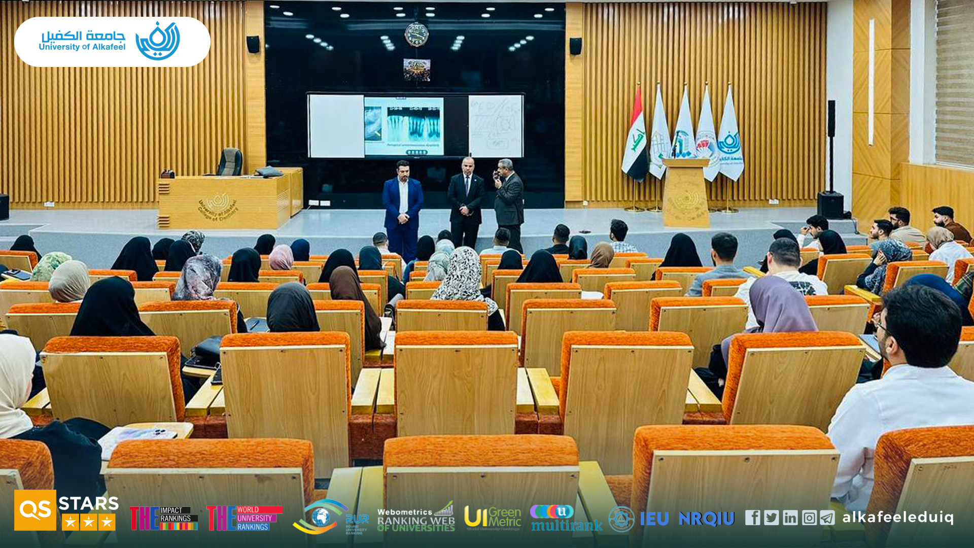 On Sunday, November 2, 2025, the Dean of the College of Dentistry at University of Alkafeel held an academic orientation meeting with fourth-year students to review the progress of their studies and clinical training during the current academic year.