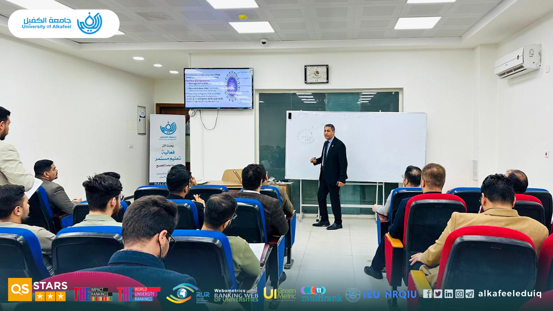 The Lifelong Learning Unit at the College of Dentistry organized a scientific lecture : “ Influenza Virus” on Monday, 10 November 2025. The lecture was delivered by Dr. Diaa Naji Hamza, to raise the scientific and knowledge level of faculty and students regarding the influenza virus, focusing on its types, modes of transmission, and modern methods of prevention, in addition to the role of medical staff in community health awareness.