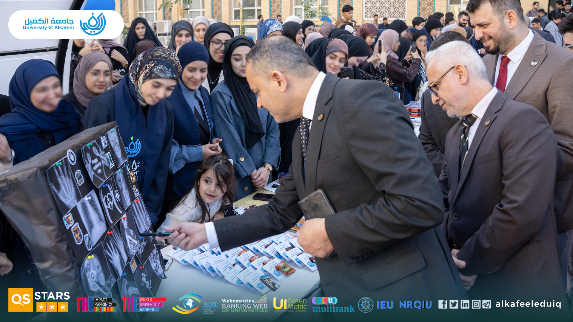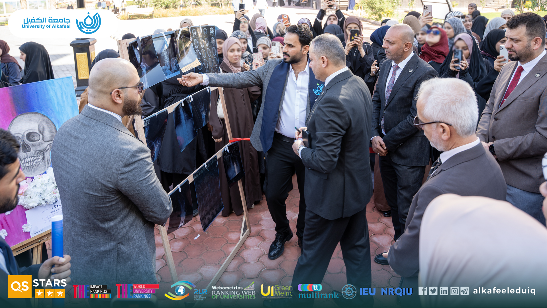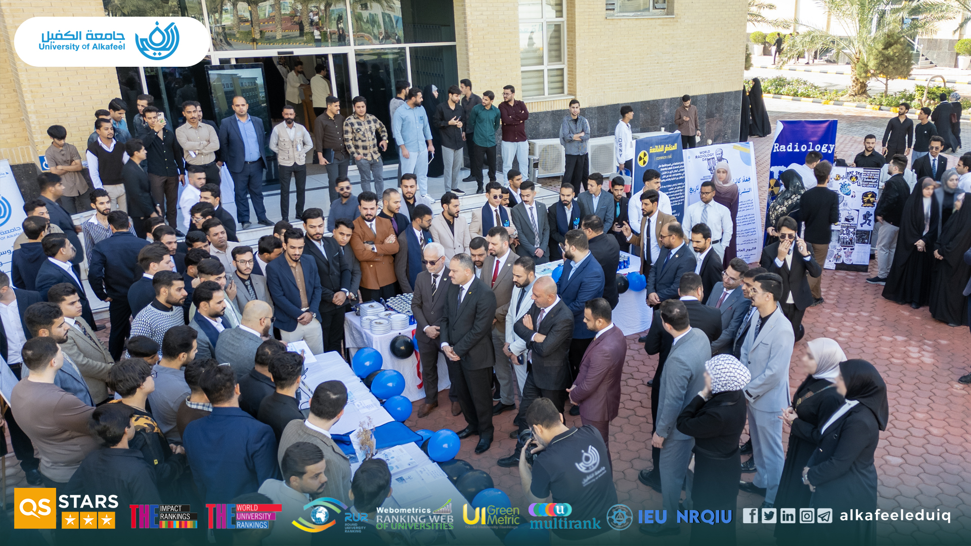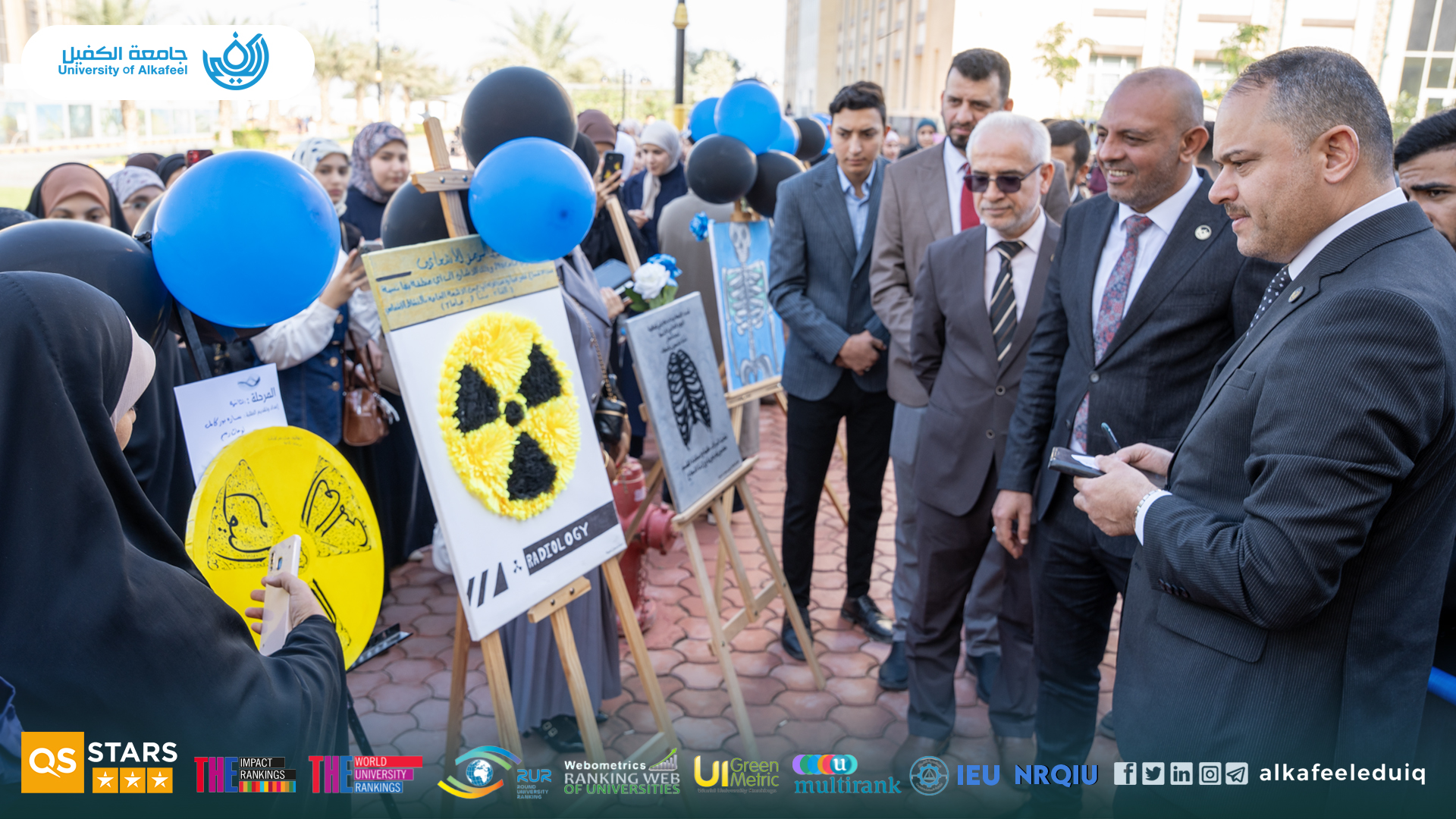 University of Alkafeel – College of Medical and Health Technologies celebrated World Radiography Day on Sunday, 16 November 2025, by organizing a special exhibition by students of the Radiography Technology Department. The event was attended by the University President, Prof. Dr. Nawras Mohammed Shaheed Al-Dahan, the Dean of the College, Prof.Dr. Fadhil Ismail Sharad, the Head of the Radiography Technology Department, Prof. Dr. Arif Saleh Baroun, and a number of academic figures and faculty members.