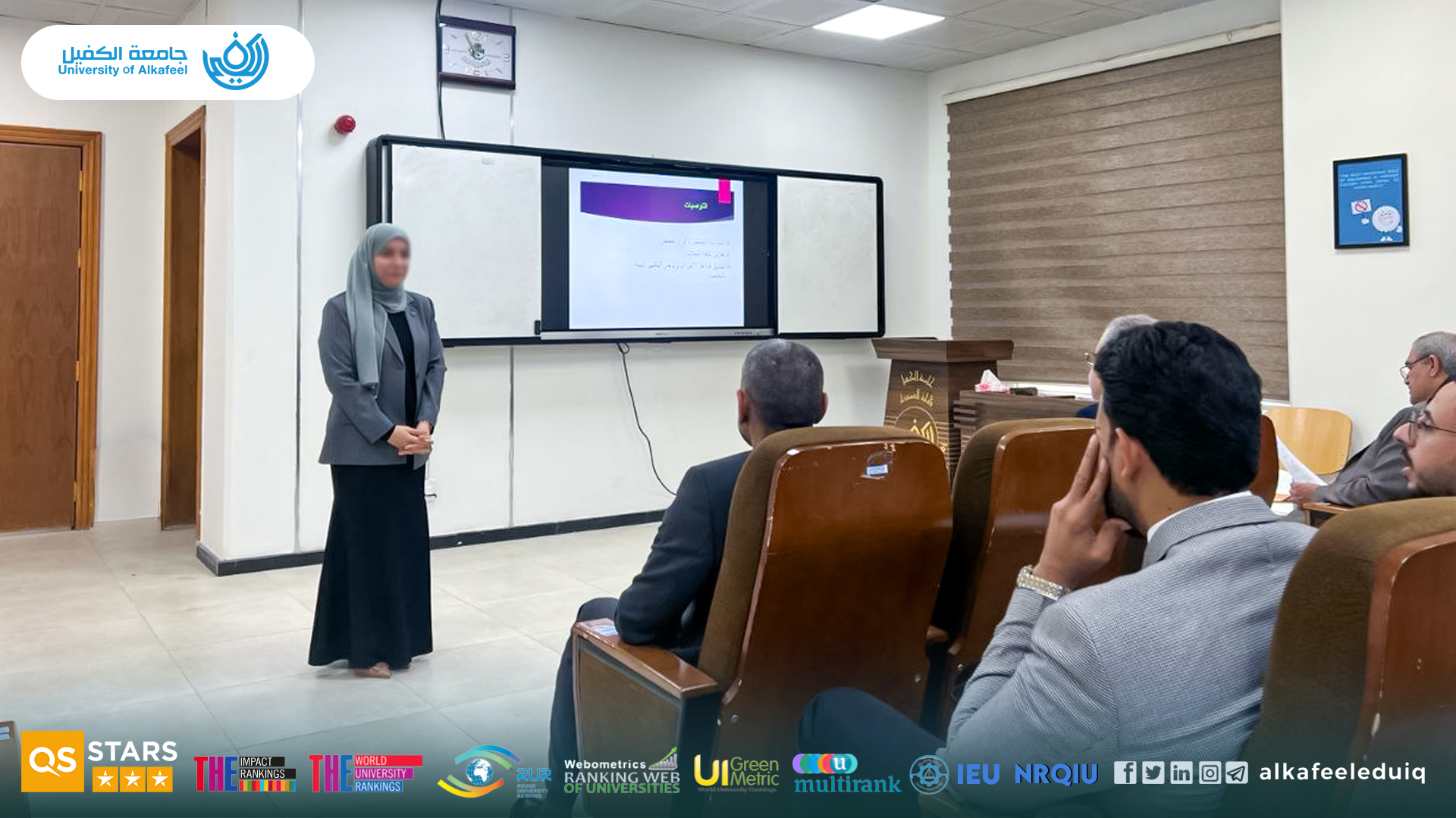The College of Pharmacy at University of Alkafeel organized a training course : " on Radiological, Biological and Chemical Safety Standards " . The course was presented by Asst. Prof. Dr. Noor Hassoun Kadhim to highlight the fundamentals of occupational safety within the laboratory, focusing on prevention mechanisms and managing potential risks. He also explained the hazards of chemical and biological materials and the proper methods for handling them to ensure a safe working environment that protects the health of employees and the safety of scientific facilities.