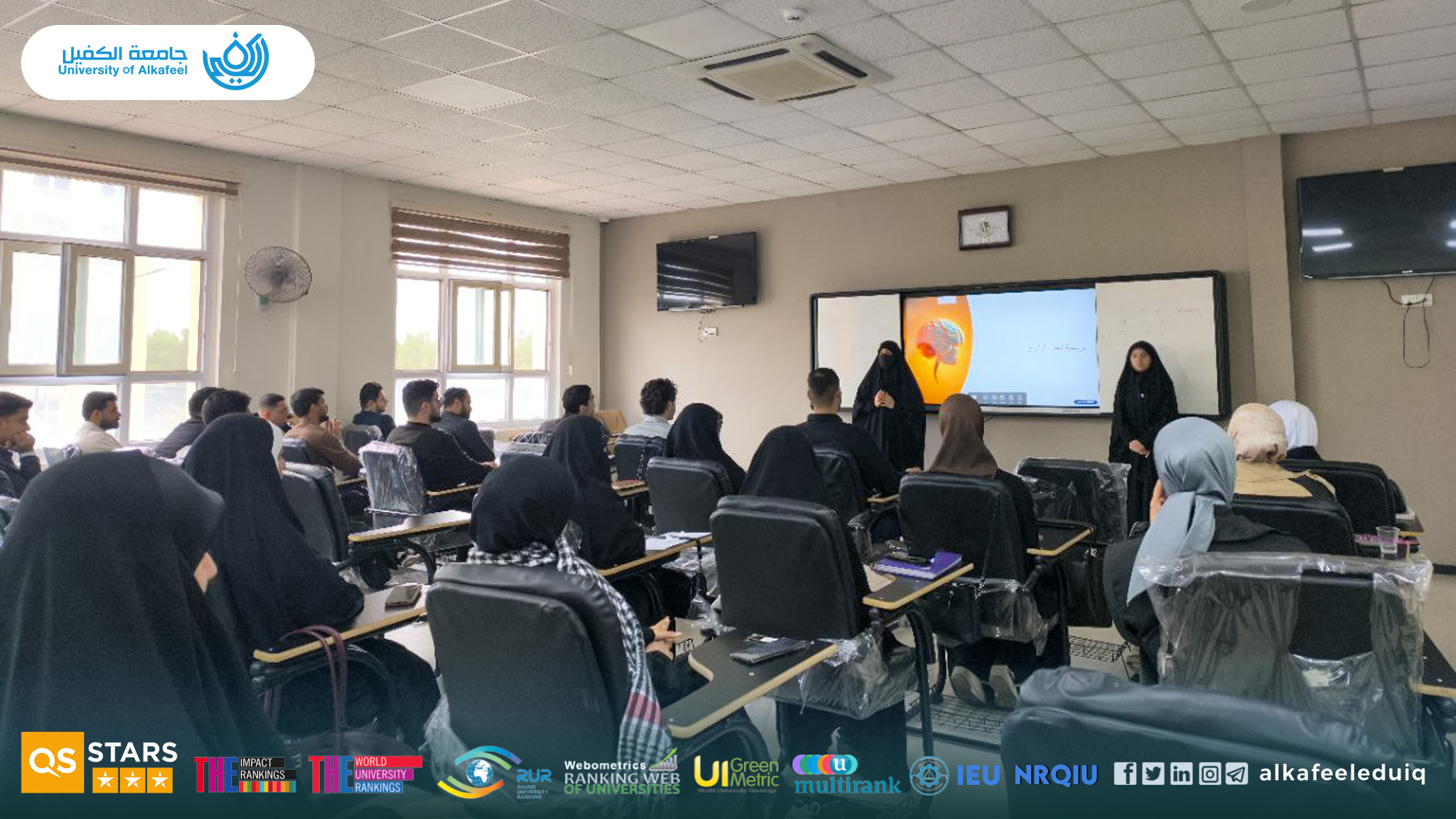 University of Alkafeel organized an educational lecture : " Mind Programming and Self-Awareness Building" for the College of Engineering Technology students. The lecture, presented by Counsl. Kawthar Alawi with the participation of Student. Fatima Ahmed from the Department of Psychological Guidance and Educational Orientation , was part of efforts to enhance student awareness and develop mental skills. The impact of recurring thoughts on shaping behavior and emotions, and how the mind forms habits through the daily messages , an individual receives, were all discussed . It also addressed the importance of inner awareness, training the mind to think positively, and freeing it from limiting beliefs that hinder personal development. The lecture concluded by emphasizing that the mind programming is a personal responsibility that begins with monitoring internal dialogue , reshaping thought patterns to achieve greater psychological balance and also encouraging the students to adopt positive mental practices that contribute to creating a more conscious and capable version of themselves.