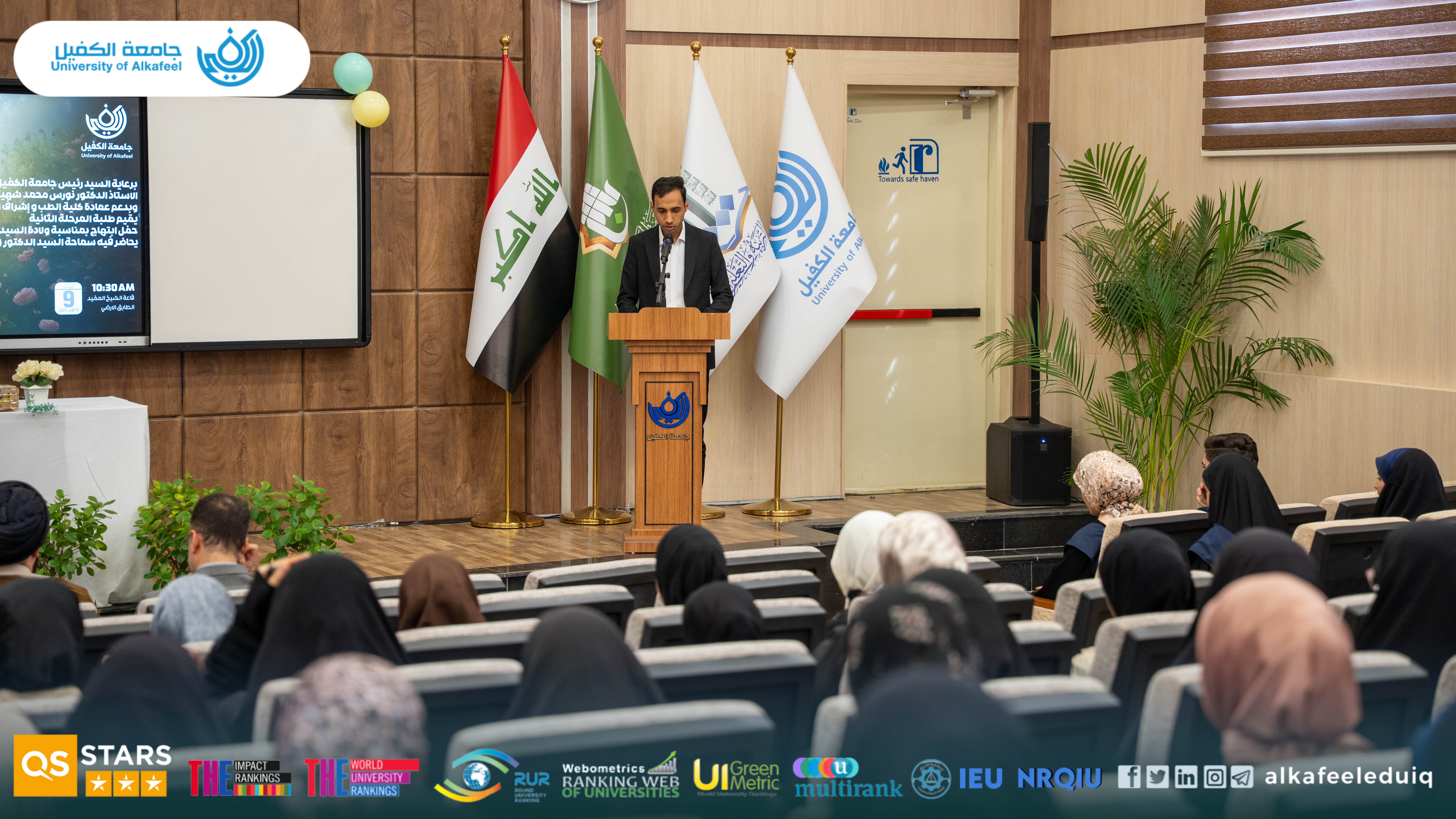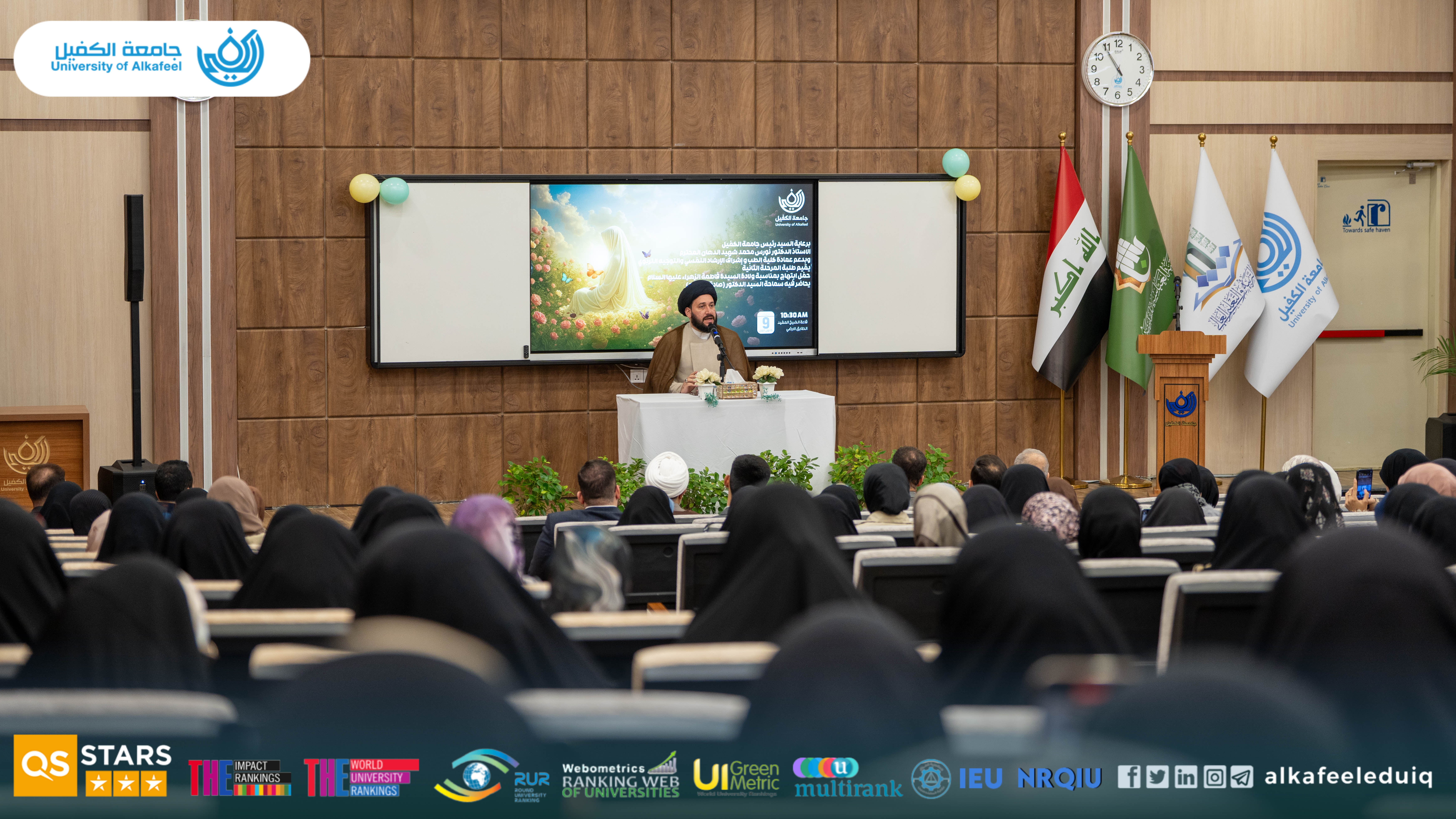 The College of Medicine at University of Alkafeel organized a celebration to commemorate the birth of Seida. Fatima Al-Zahra (peace be upon her). The celebration included an informative lecture delivered by Dr. Sadiq Al-Marouj, who discussed the life and virtues of Seida. Fatima Al-Zahra , her role in the family, the lessons she imparted, and her importance as a role model for women in family and educational responsibilities.