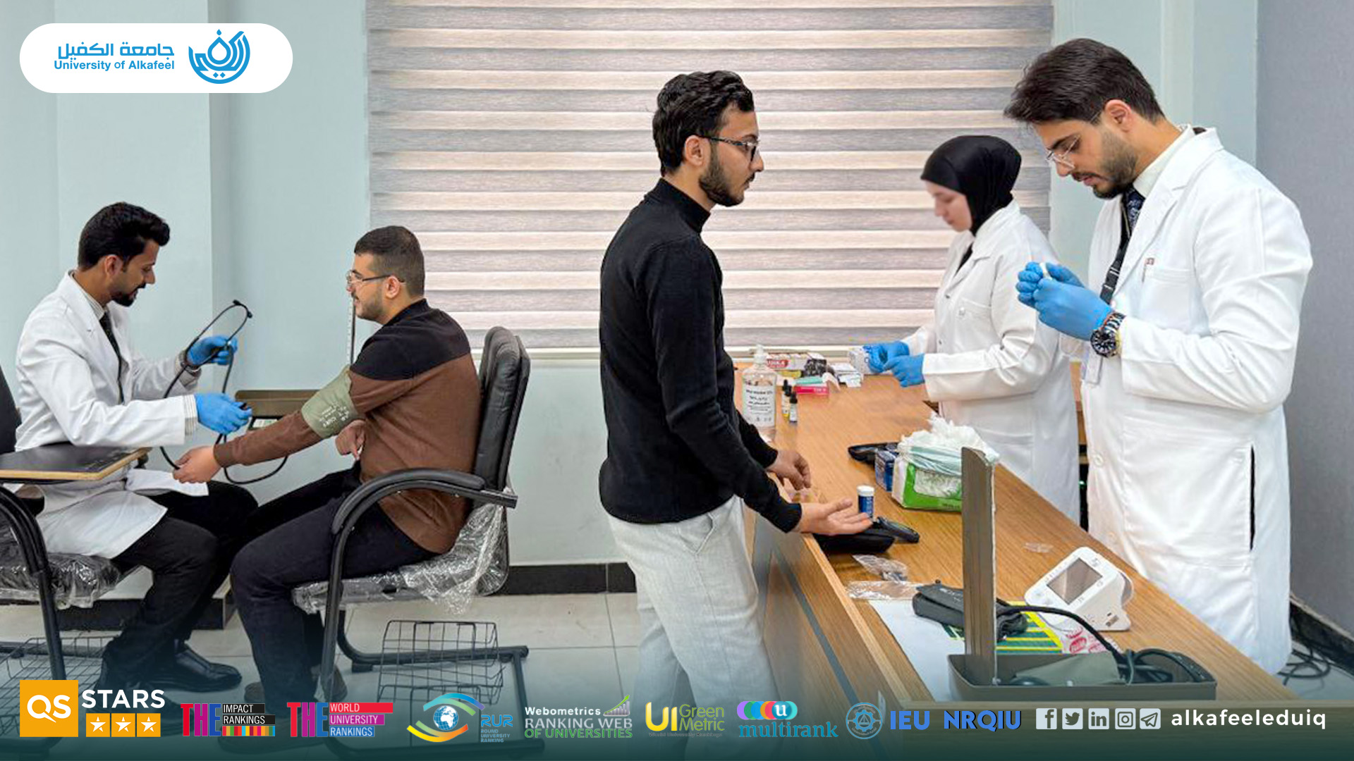 The College of Health and Medical Technologies at University of Alkafeel organized an awareness campaign for screening diabetes, blood pressure, and blood type. The campaign aims for the early detection of diabetes and hypertension among students by measuring blood sugar and blood pressure levels. It is also to determine blood type and encourage students to accurately register it on their national identity cards to ensure the speed and accuracy of blood transfusions when needed.