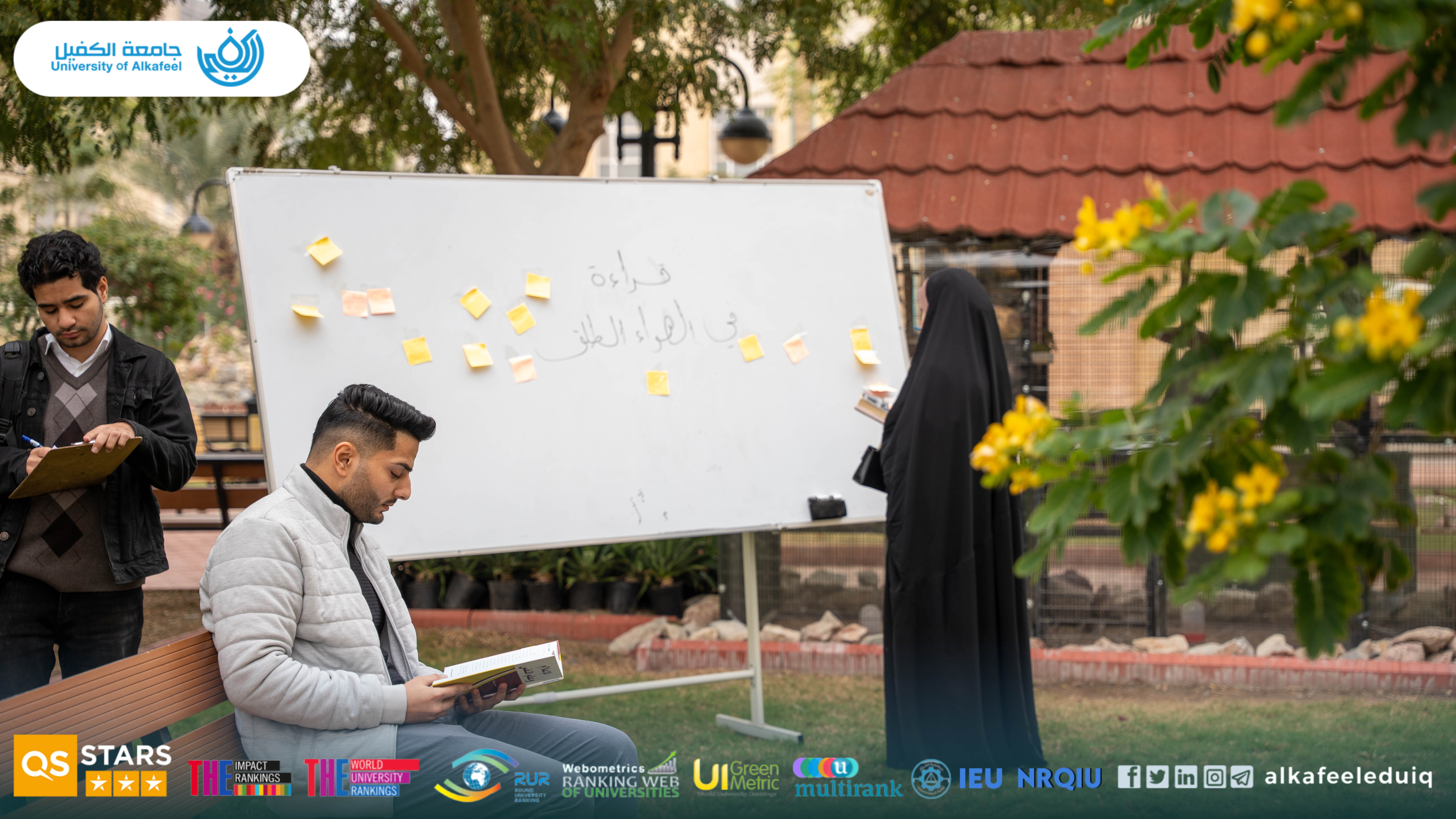 The Central Library at University of Alkafeel organized an open-air reading event, outdoor reading , in the university gardens on Monday, 15 December 2025, with wide participation from university students.