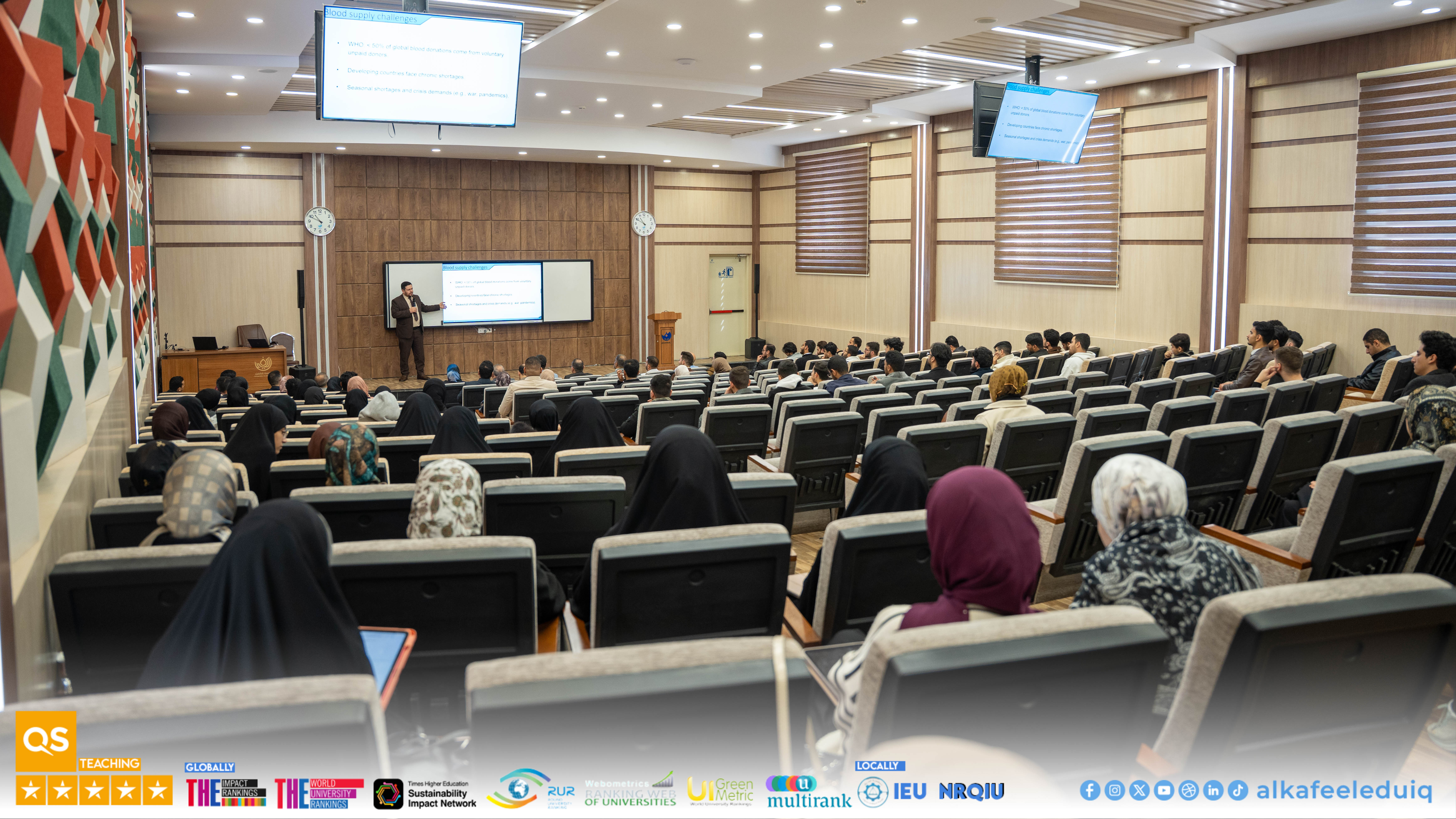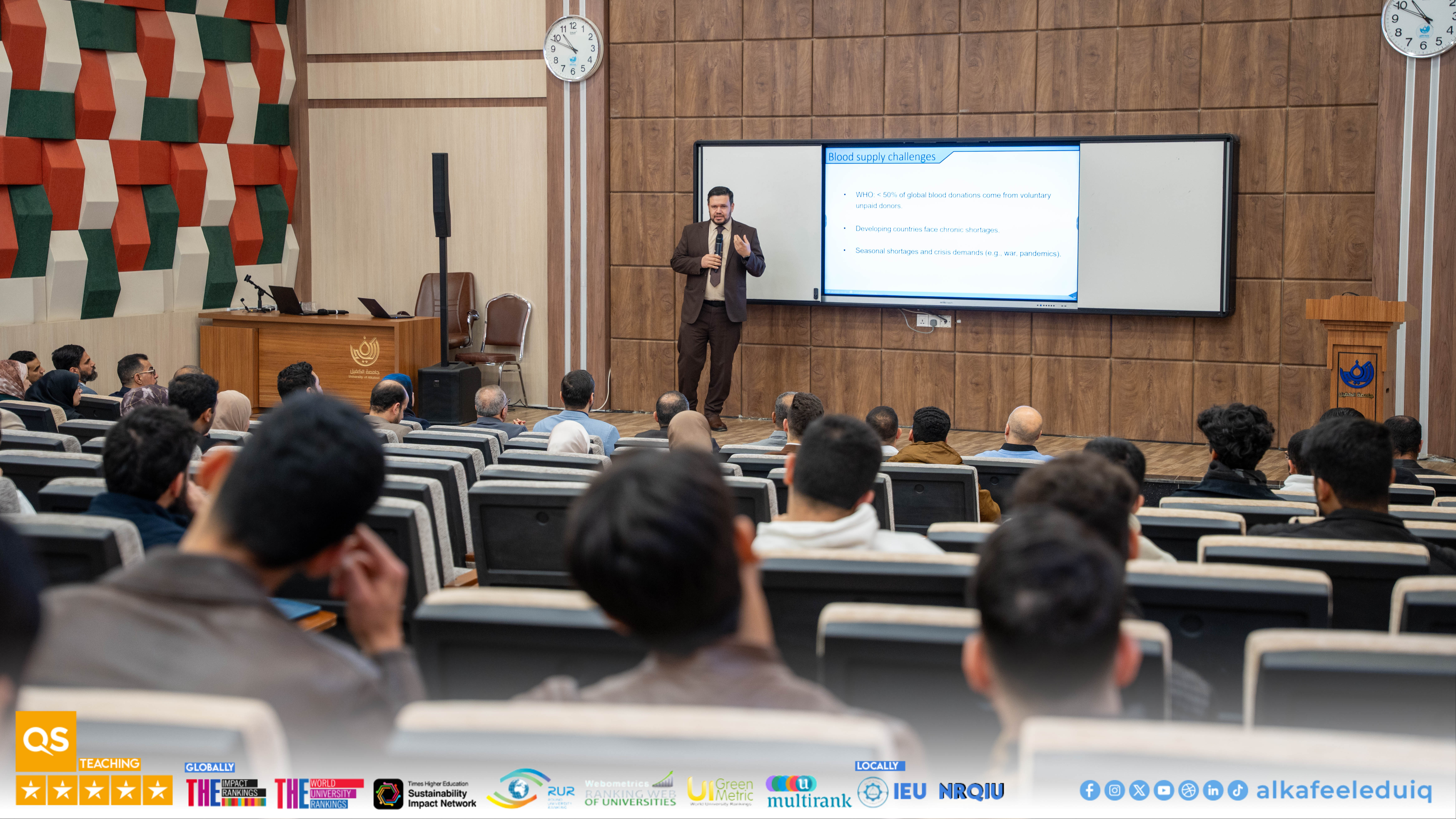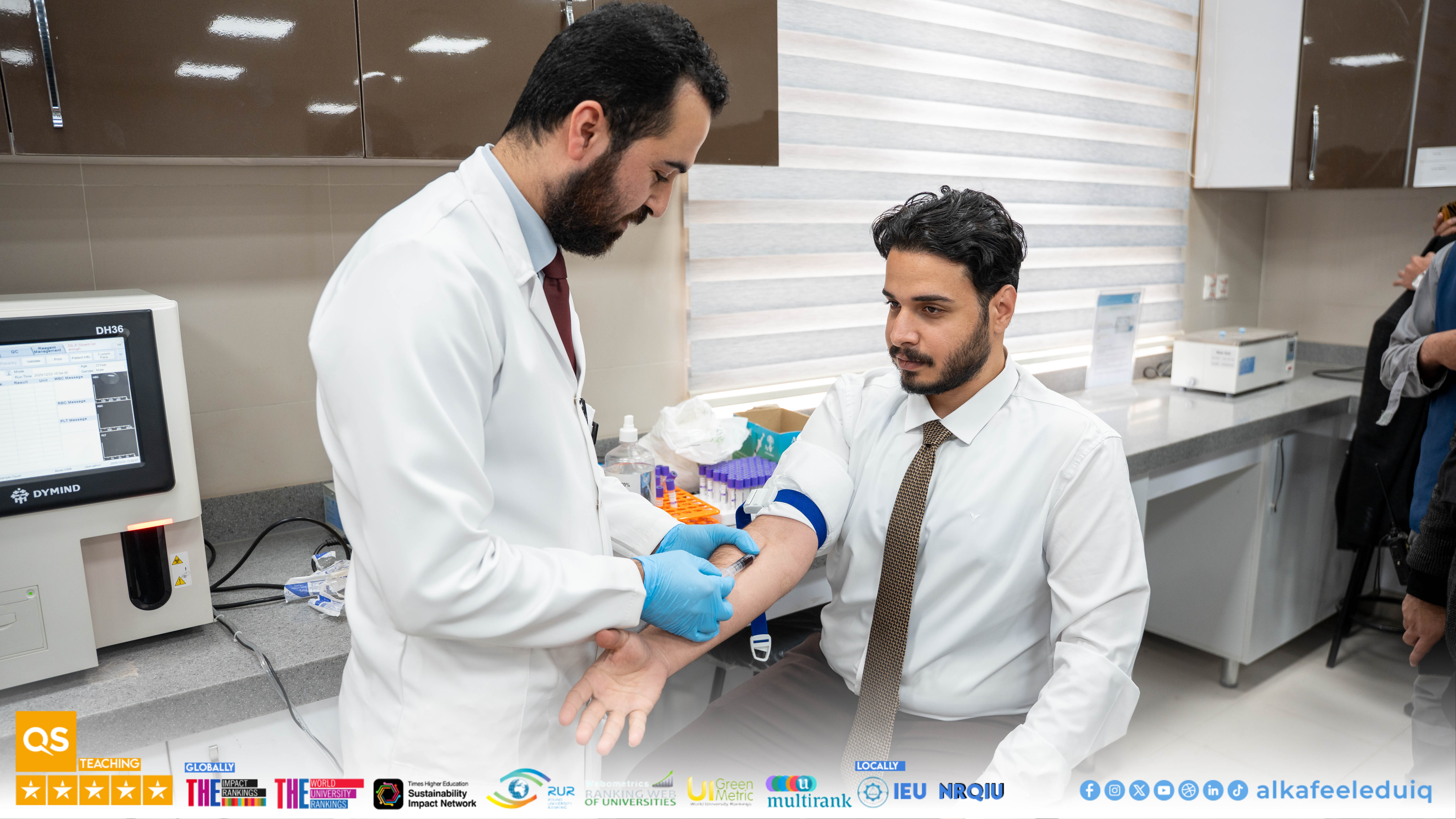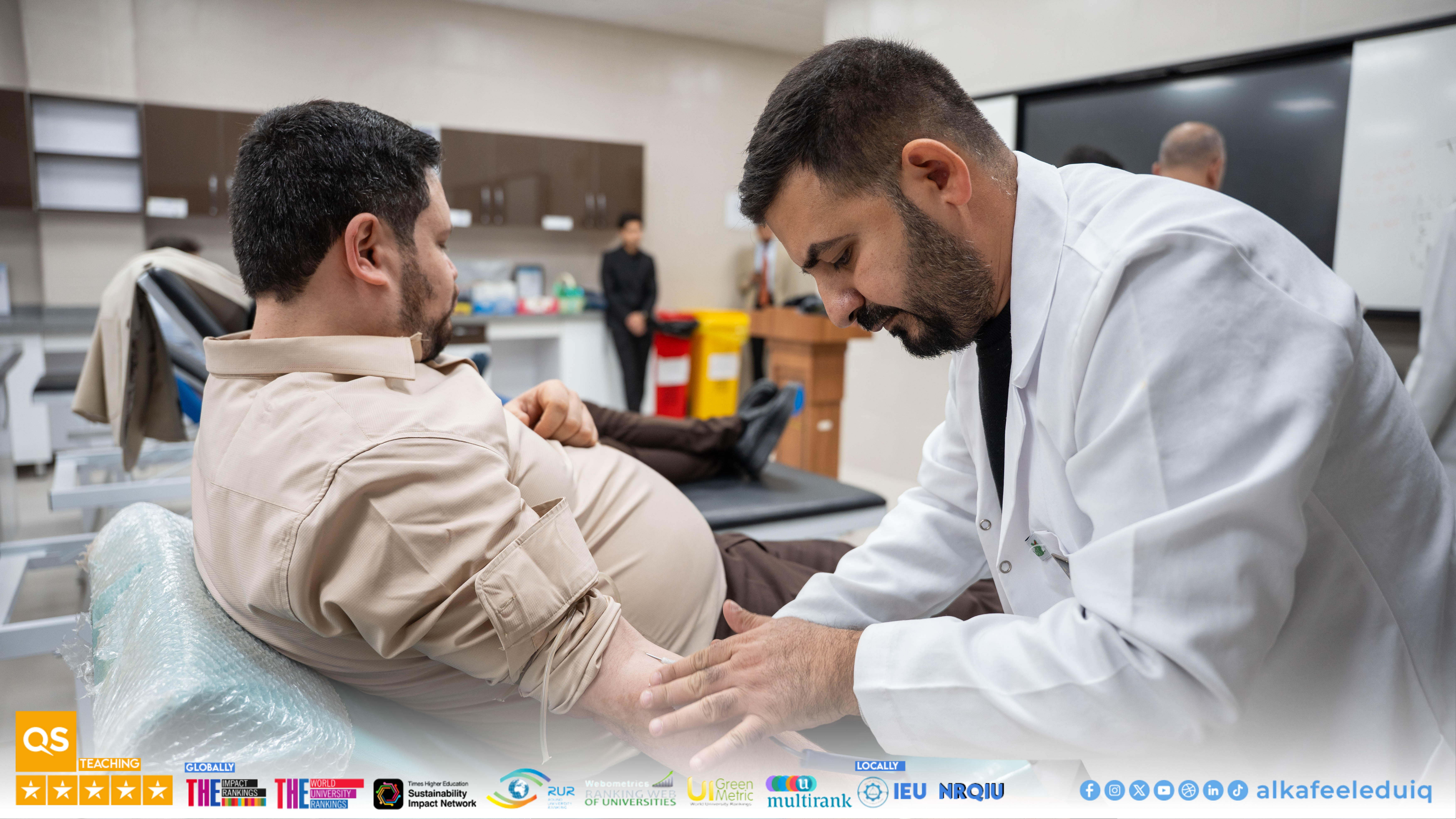 The College of Medicine at University of Alkafeel, in cooperation with the Najaf Health Department, organized a blood donation campaign on Tuesday, 23 December 2025. The campaign was attended by the University President, Prof.Dr. Nawras Mohammed Shaheed Al-Dahan, university staff, students, and the faculty. Such a campaign aimed to encourage blood donation to save patients, especially children suffering from thalassemia and cancer, and to promote a sense of responsibility and social solidarity among the participants. The event showed widespread participation from students and staff, reflecting the commitment of the university to supporting humanitarian and community initiatives and encouraging students to actively participate in serving the community. The organizers recommended promoting a culture of blood donation in the university and the wider community, supporting patients in need, and encouraging more similar community initiatives.