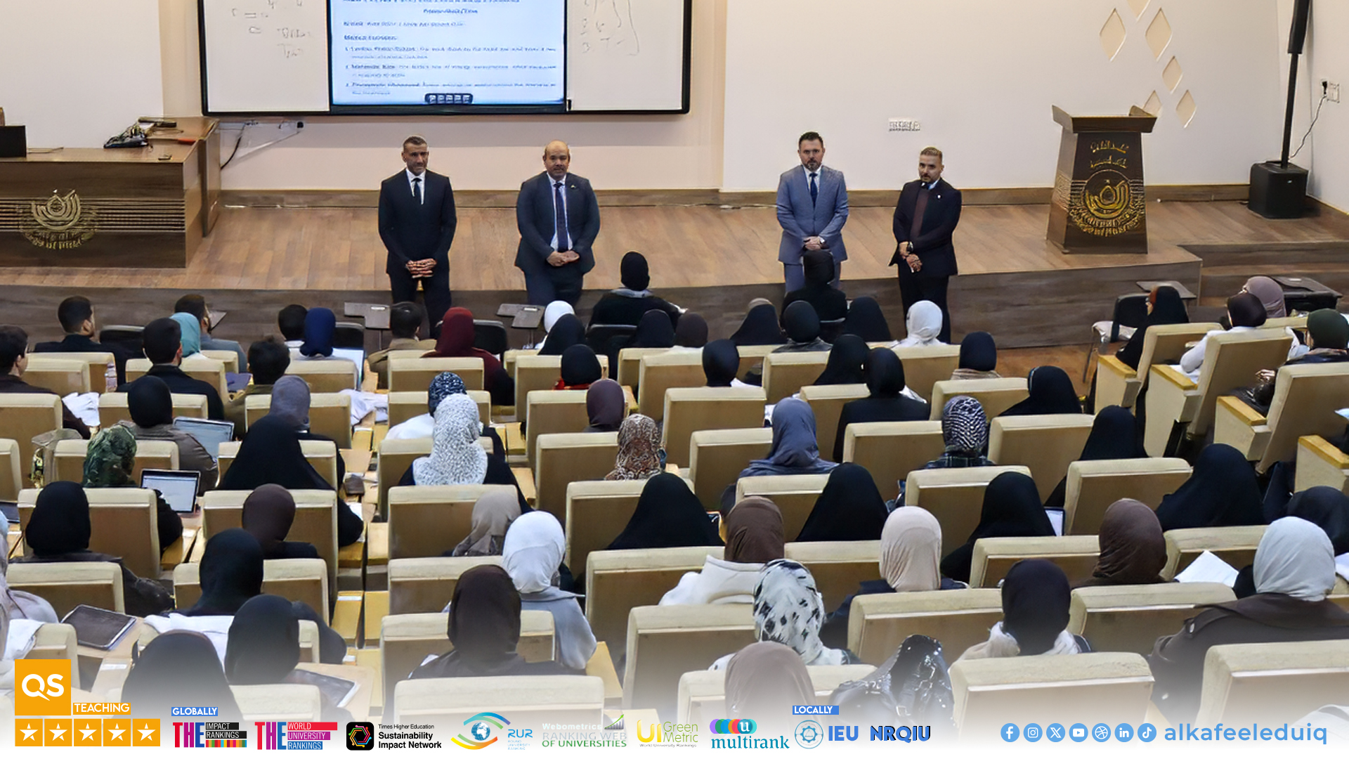On Sunday, 28 December 2025, the Dean of the College of Pharmacy at University of Alkafeel held a meeting with first-year students. The meeting was attended by the Dean, Asst. Prof. Dr. Saad Mashkour Waleed, and his deputies, Prof.Dr. Hassanein Shaker Mahmoud for Scientific Affairs and Asst. Prof. Dr. Ali Al-Mayali for Administrative Affairs. The purpose of the meeting was to open a direct discussion and listen to their inquiries, comments, and suggestions.