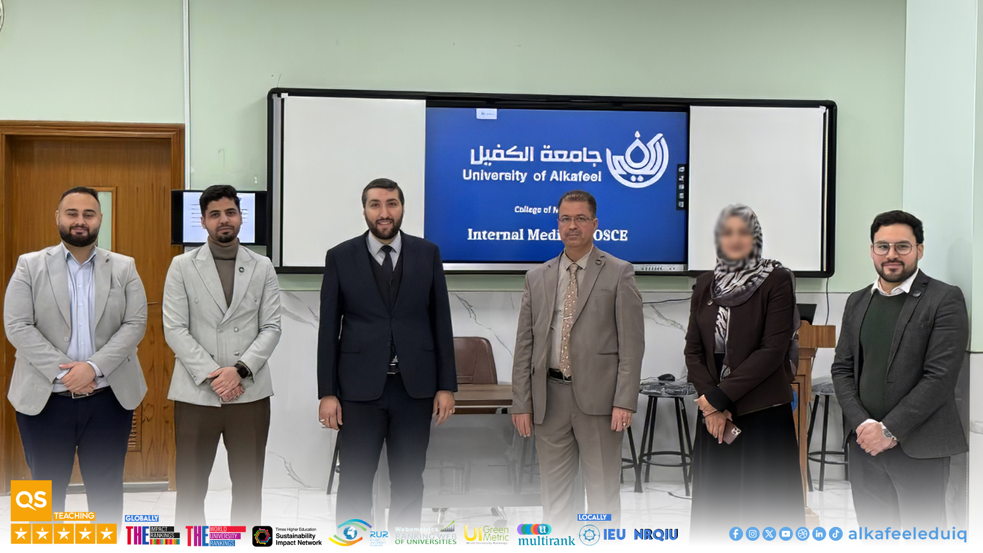The College of Medicine at University of Alkafeel conducted the OSCE , Objective Structured Clinical Examination, for fourth-year medical students on Saturday and Sunday, 27-28 December 2025, in the Clinical Skills Laboratory. The external evaluator, Prof. Dr. Nizar Haddad from the University of Basra, was present, and the examination was overseen by the college deanery in cooperation with the examination committees.