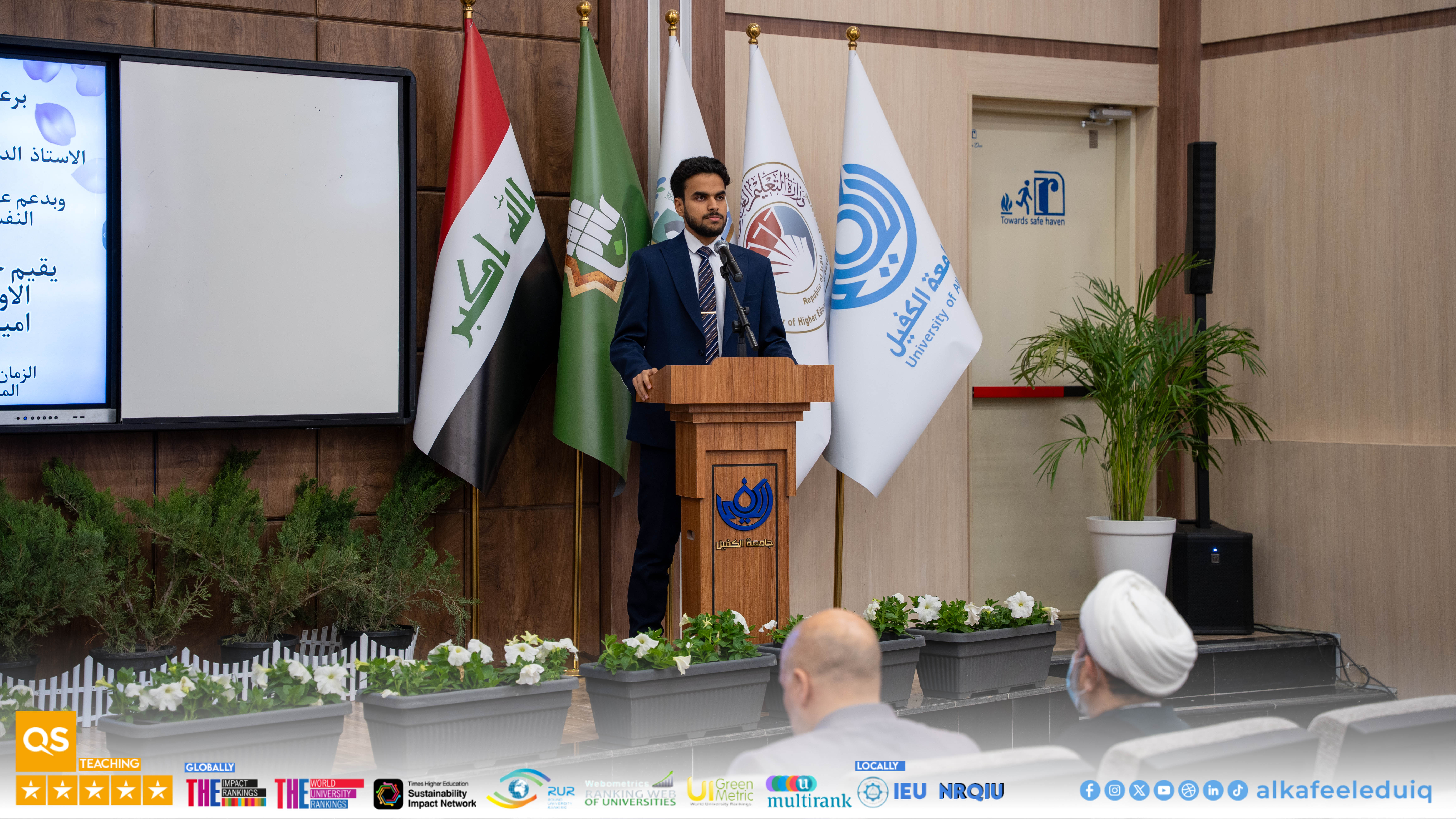 The Director of the Psychological Counseling and Educational Guidance Department at University of Alkafeel , Asst.Prof. Dr. Hussam Ali Hassan Al-Obaidi, delivered a welcoming address to the new students, emphasizing the importance of this pivotal stage in their university lives and the role of psychological counseling and educational guidance in supporting them both psychologically and academically, thus contributing to their success and academic excellence.