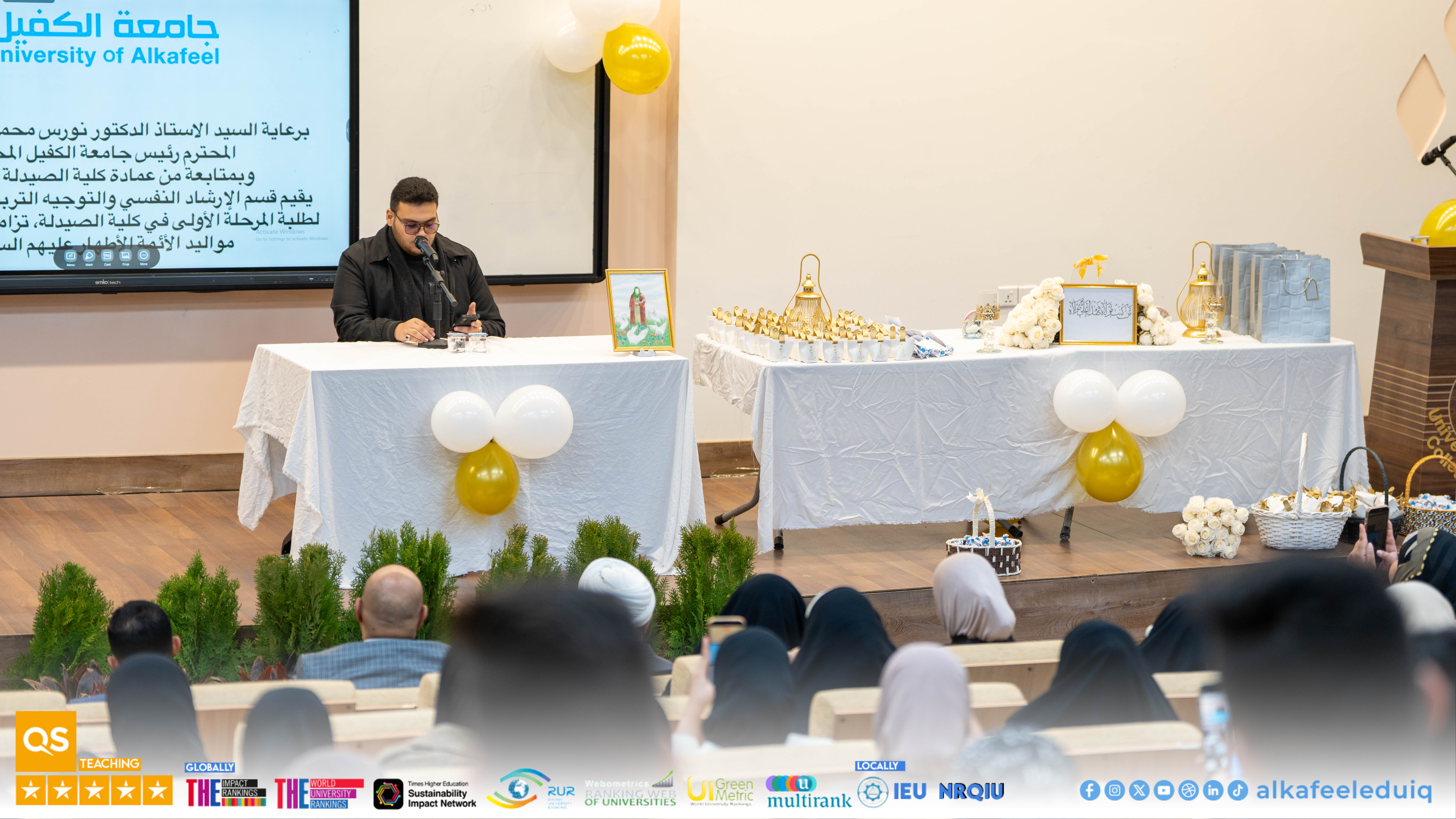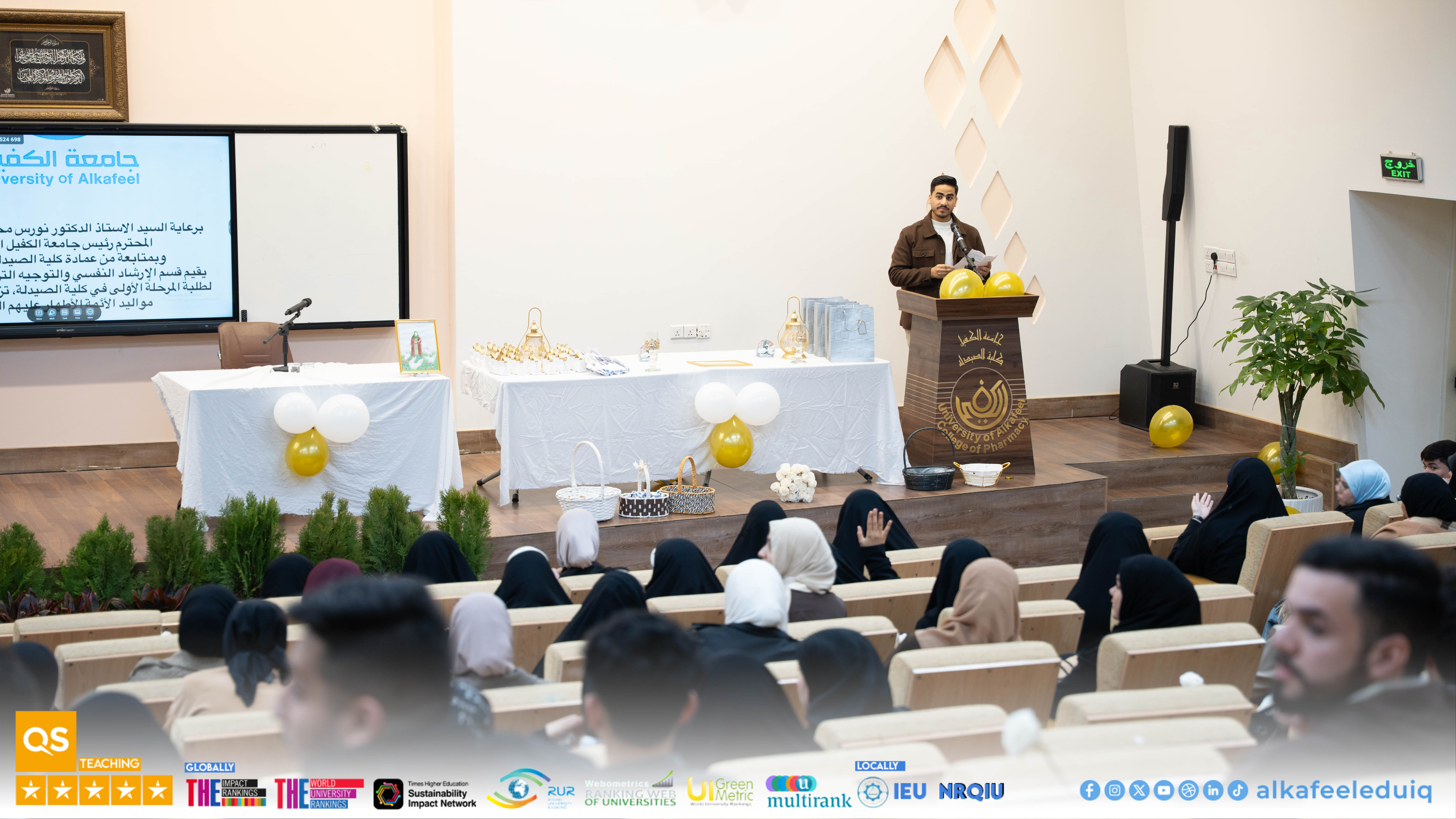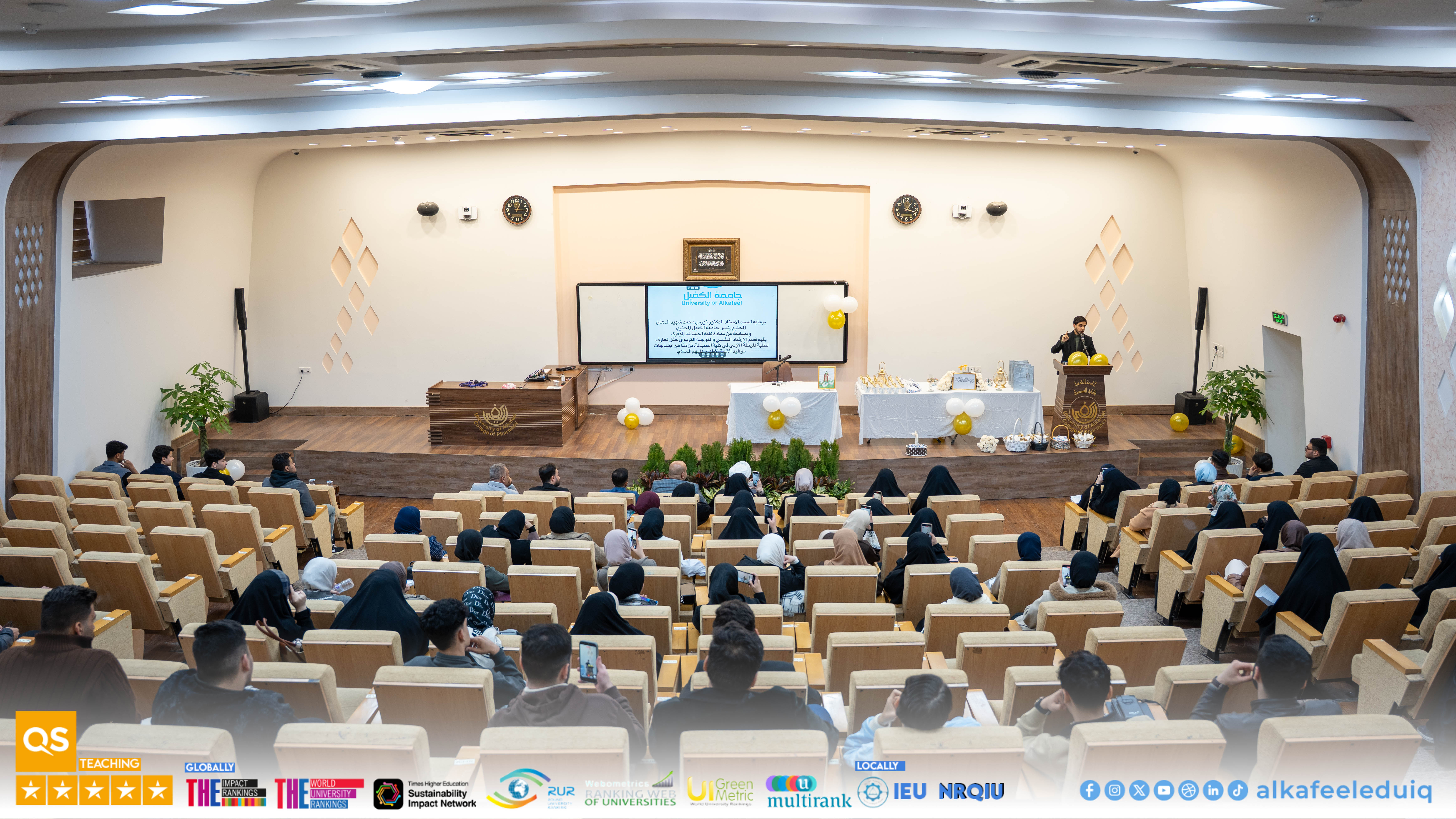 Under the patronage of Prof.Dr. Nawras Muhammed Shaheed Al-Dahan, President of University of Alkafeel , the Department of Psychological Guidance and Educational Orientation at University of Alkafeel , in cooperation with the College of Pharmacy, held a welcoming gathering to receive Freshman Students , coinciding with the birth anniversary of Imam Ali ibn Abi Talib (peace be upon him).