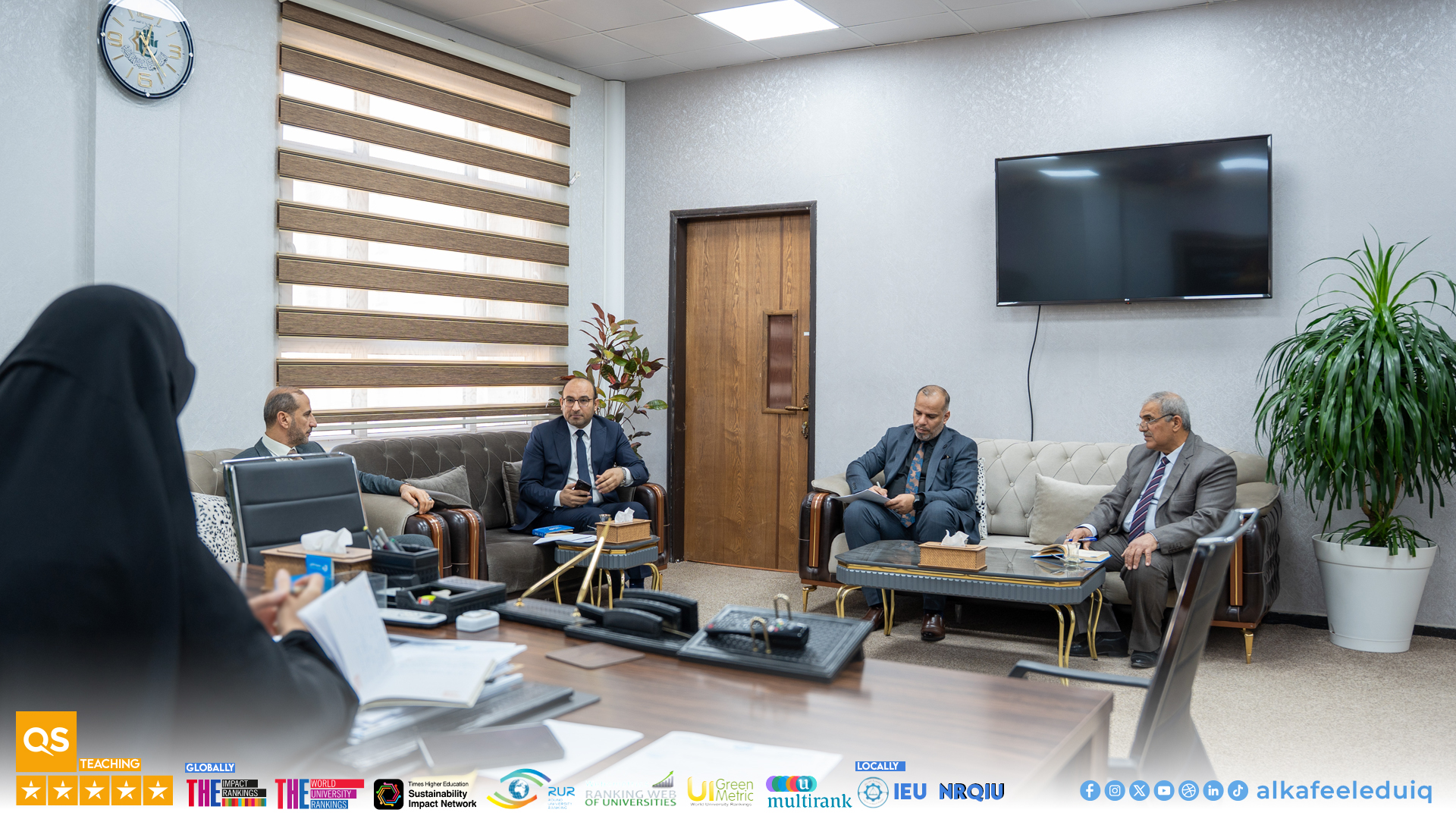 A meeting was held on Sunday, 11 January 2026, between members of the Chemical, Biological, and Radiological Safety and Security Committee and the Vice-Chancellor for Scientific Affairs, Prof. Dr. Nawal Ayed Al-Mayali, to enhance the laboratory safety system and develop the academic work environment.
