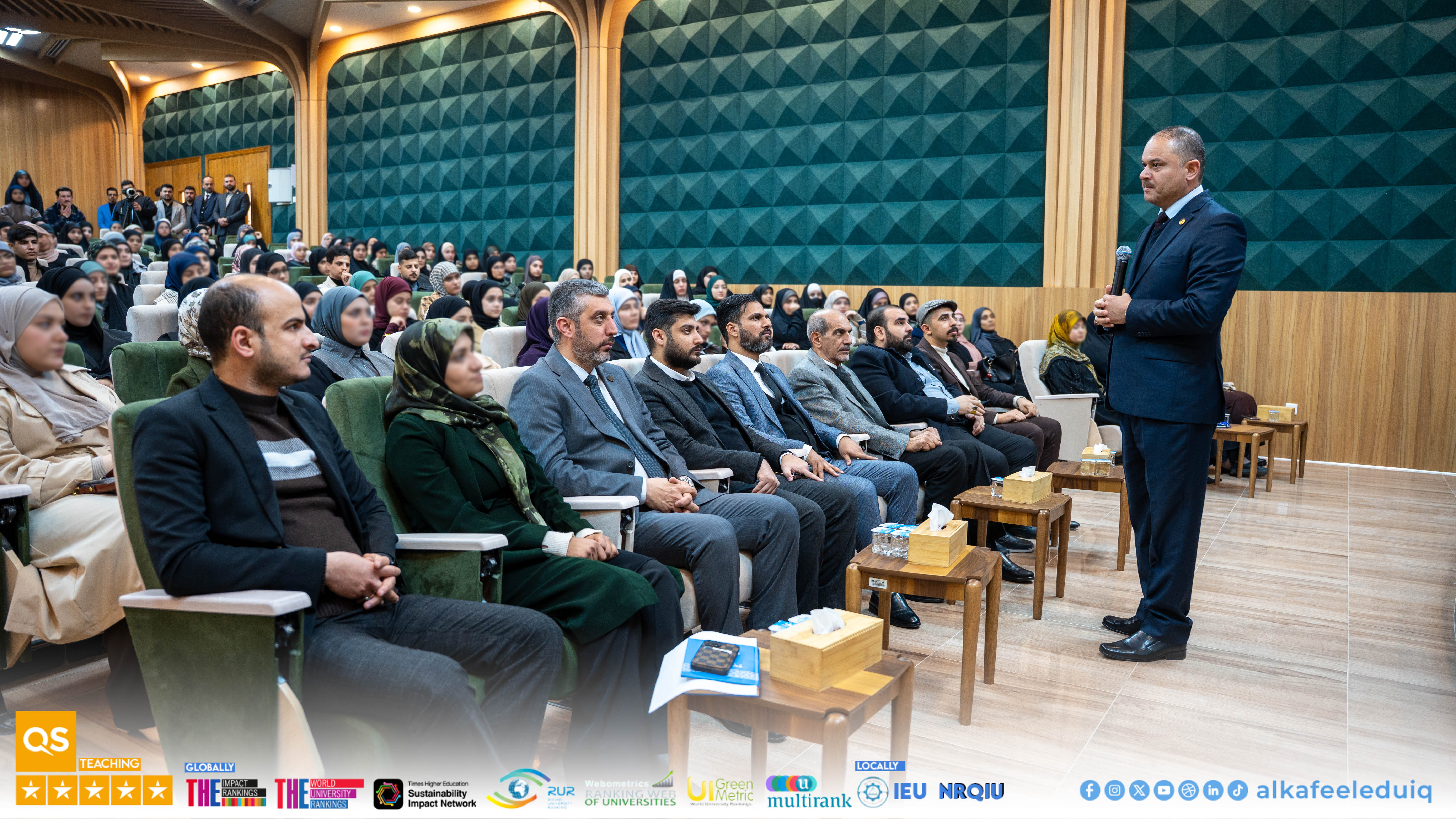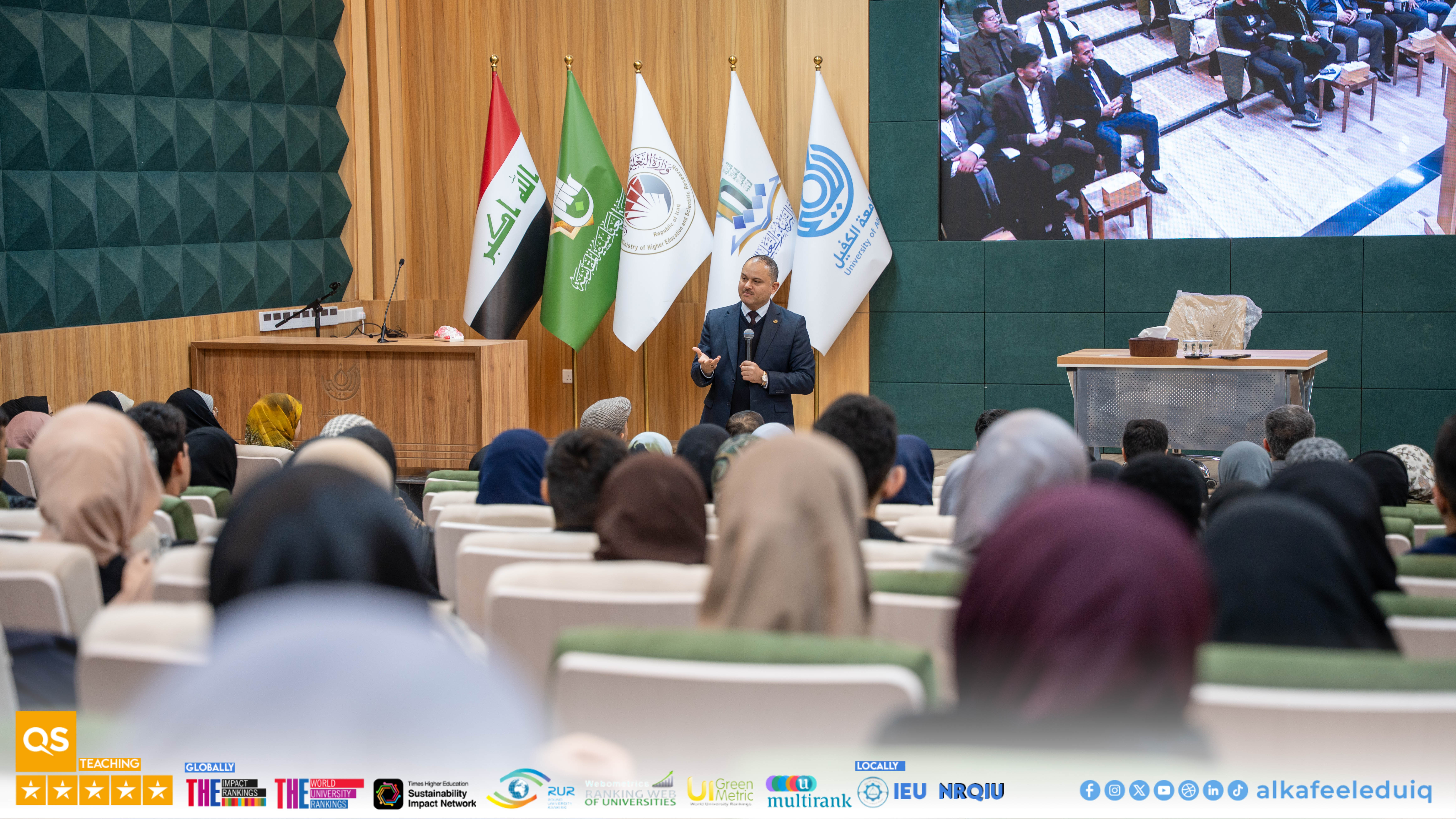 As it is committed for University of Alkafeel to the acts of direct communication with its students and supporting their academic progress, University President Prof.Dr. Nawras Muhammed Shaheed Al-Dahan met with first-year students from the Colleges of Science and Engineering Technology on Tuesday, January 13, 2026, in a meeting characterized by open dialogue and a friendly atmosphere.