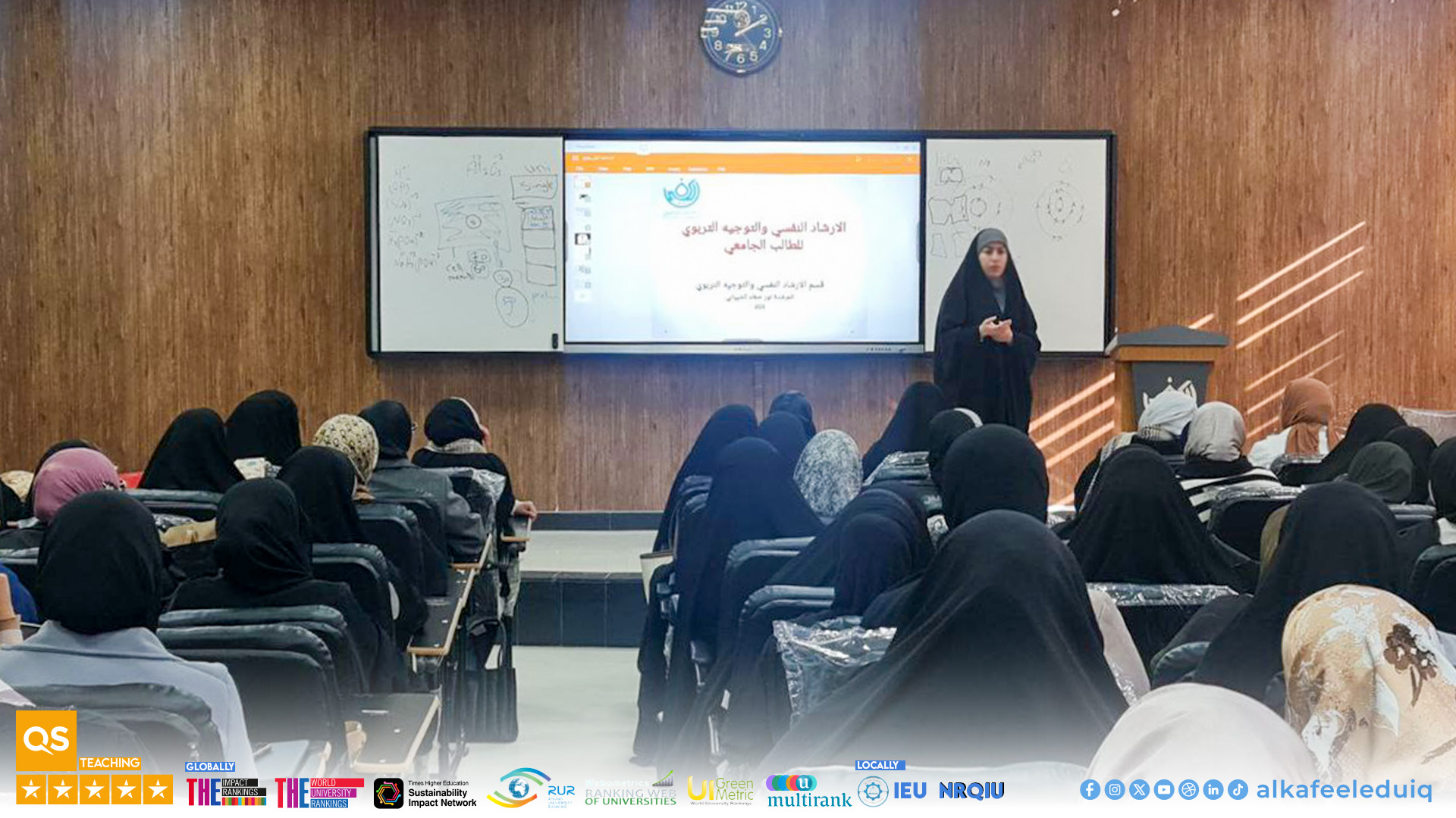 The lecture was presented by Counsl. Noor Safaa Al-Shaibani, who addressed the concept of psychological guidance and educational orientation , and explained their importance in supporting students psychologically and educationally, especially in the early stages of university studies. This support contributes to enhancing adjustment to the university environment and building a balanced personality capable of facing academic challenges.