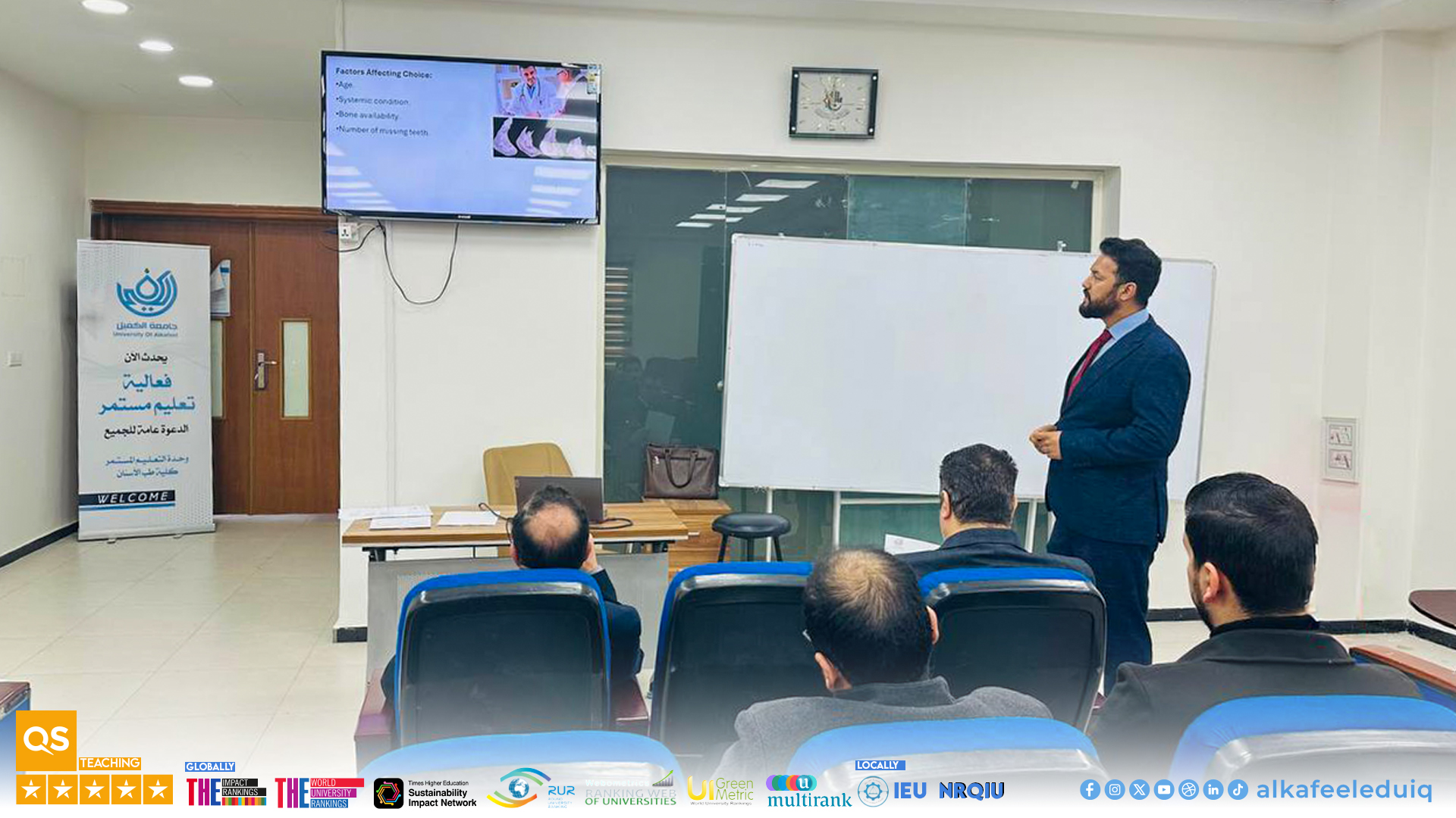 The College of Dentistry organized a scientific lecture : "Options for Replacing Missing Teeth," presented by Asst. Lecture. Ali Abbas Hussein, at the College of Dentistry on Tuesday, 20 January 20, 2026.