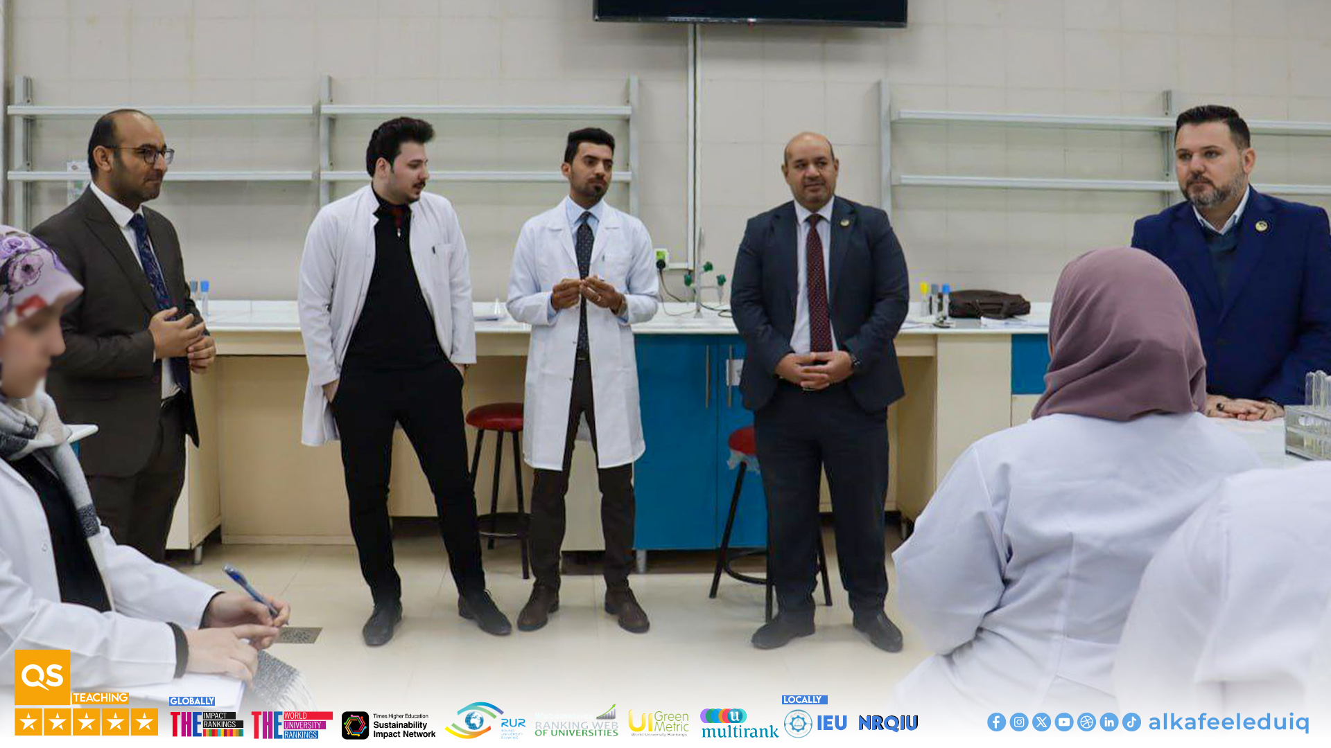 The Dean of the College of Pharmacy at University of Alkafeel held an orientation meeting attended by Asst. Prof. Dr. Ali Ahmed Hussein Al-Mayali, Vice-Dean for Administrative Affairs, and Prof. Dr. Hassanein Shaker Mahmoud, Vice-Dean for Scientific Affairs, with first-year students. The meeting aimed to enhance direct communication, address academic and administrative challenges, provide psychological and moral support, and motivate students to strive for excellence and persevere.