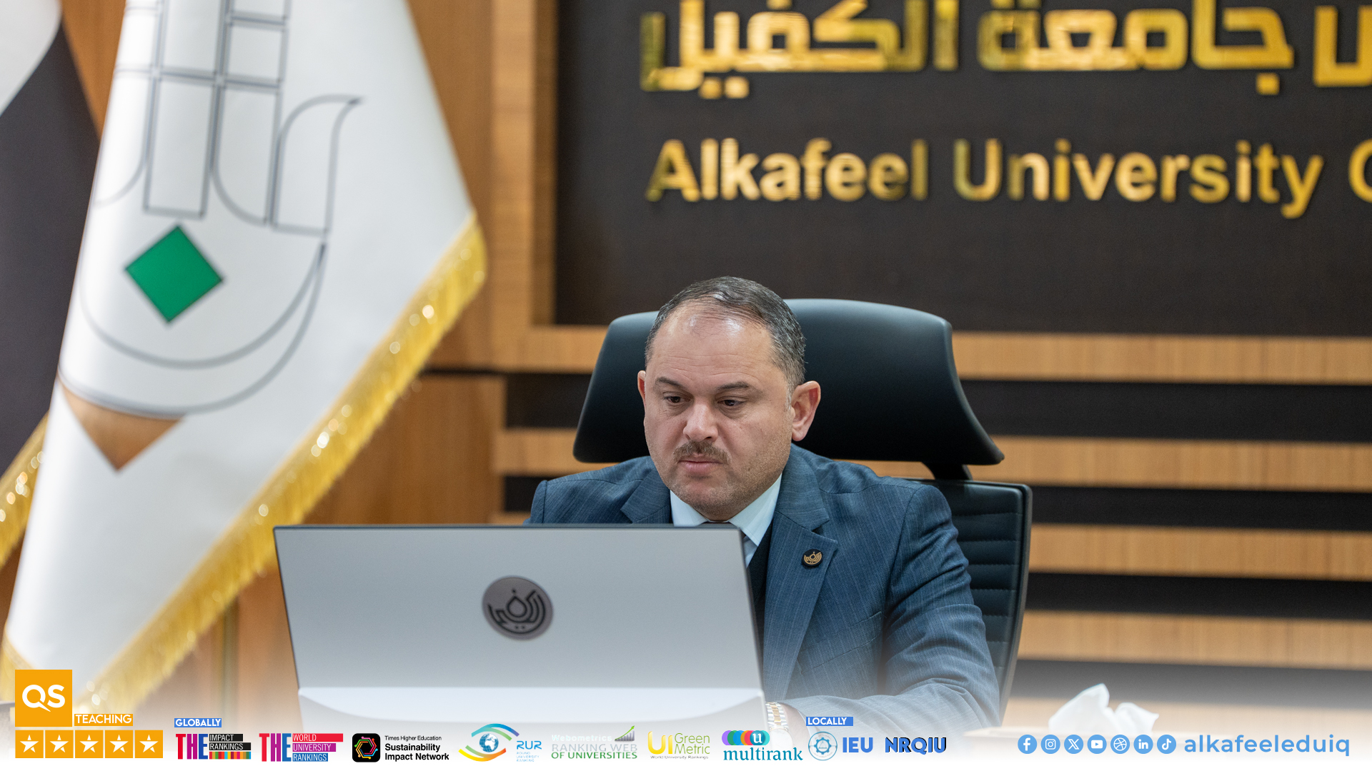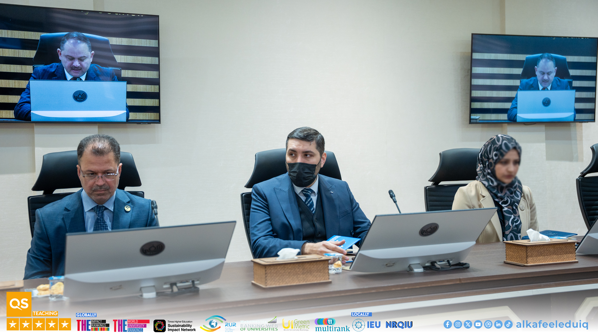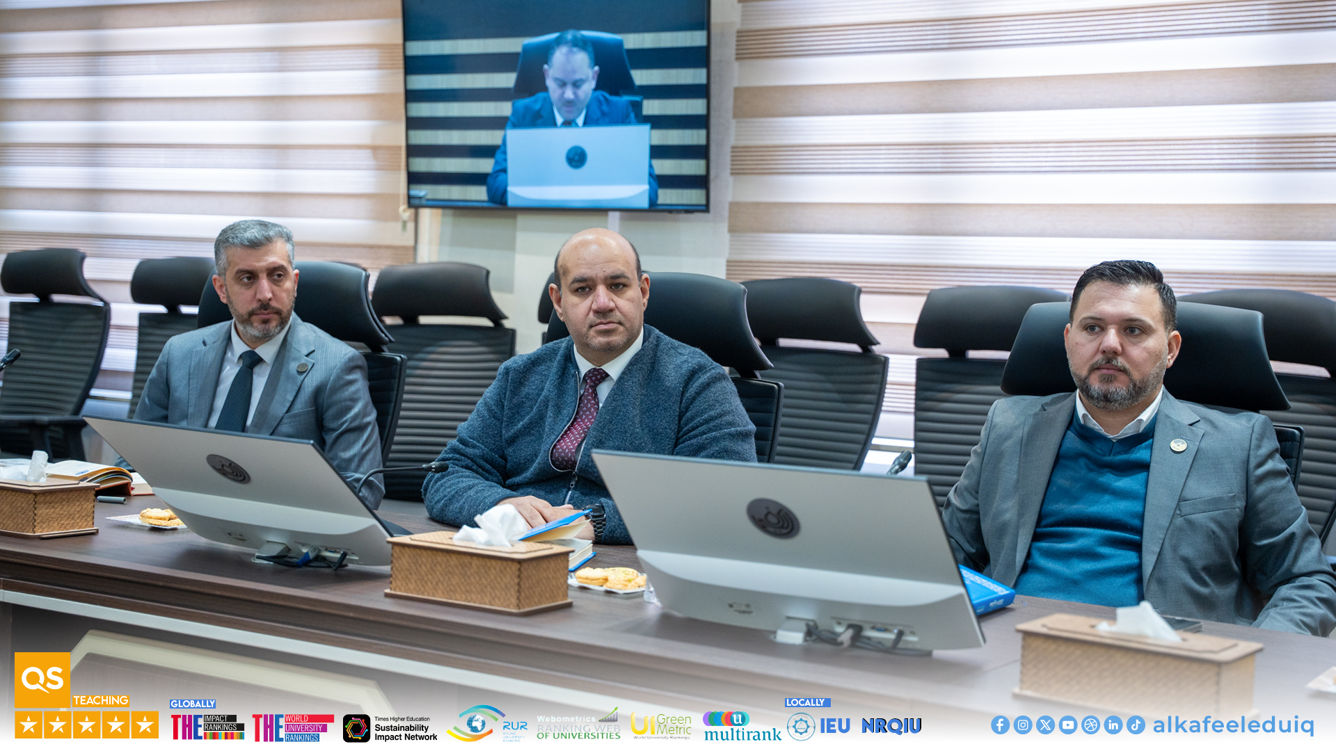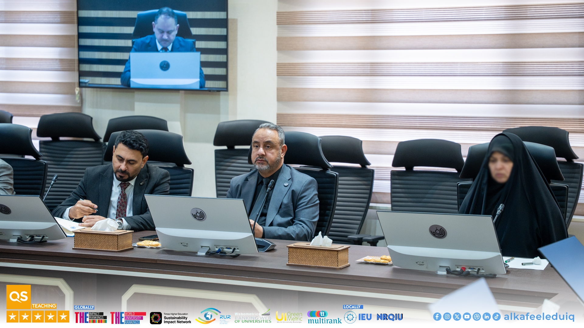 University of Alkafeel Council held its regular meeting for 2025-2026 academic year, chaired by the University President, Prof.Dr. Nawras Muhammed Shaheed Al-Dahan, and attended by the Vice-Chancellor for Scientific Affairs, Prof. Dr. Nawal Ayed Al-Mayali, the deans and assistant deans of the colleges.