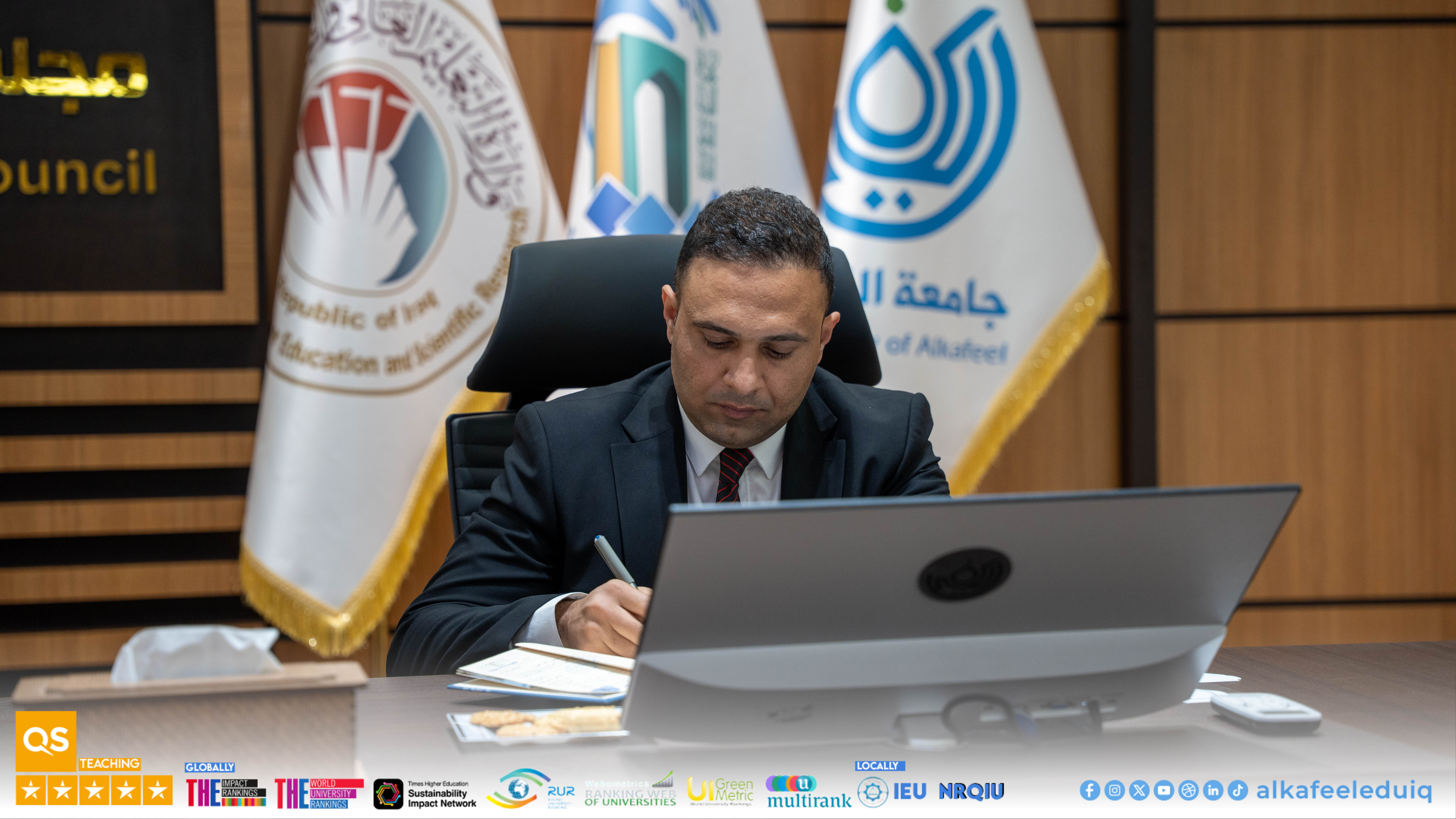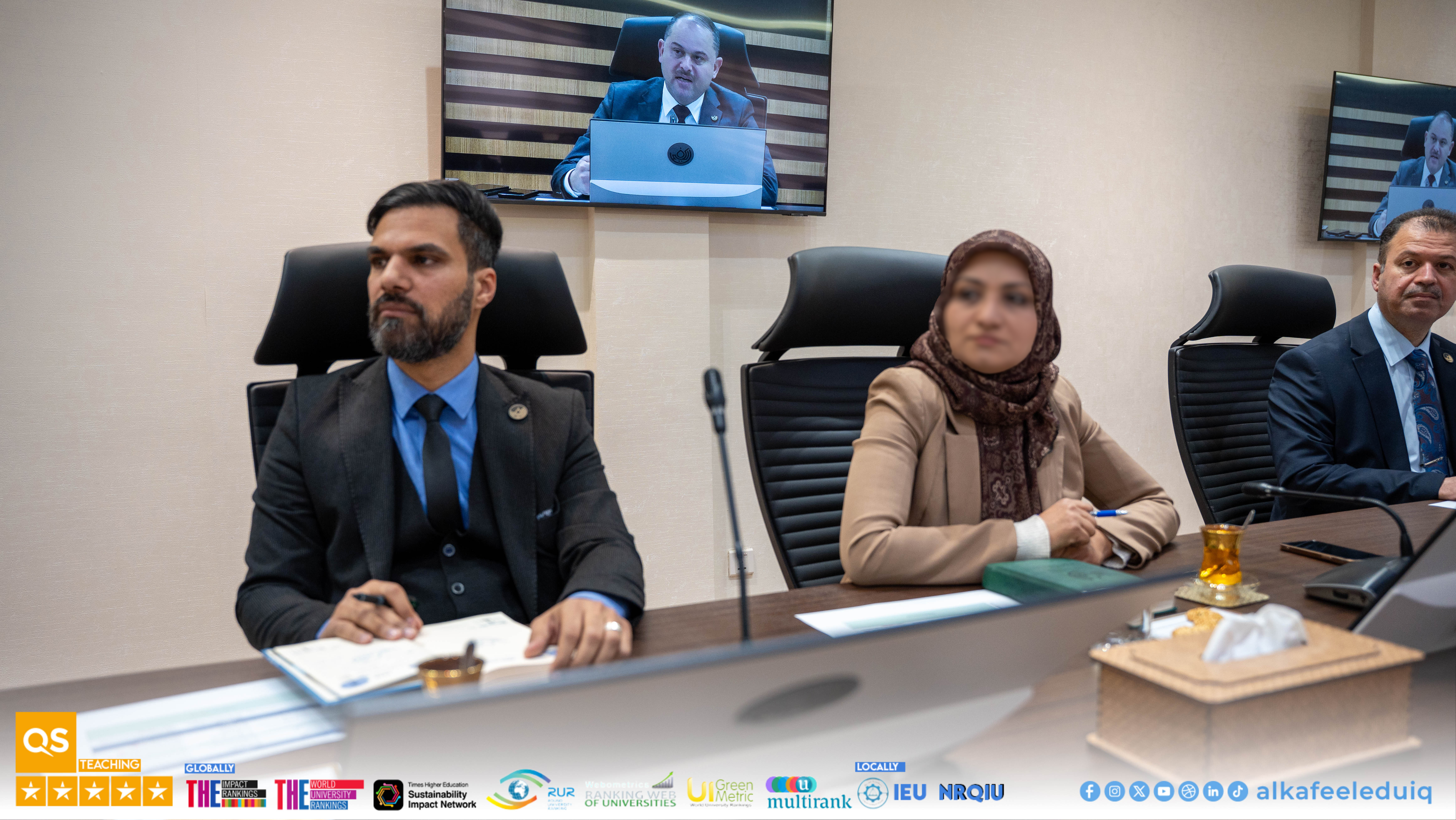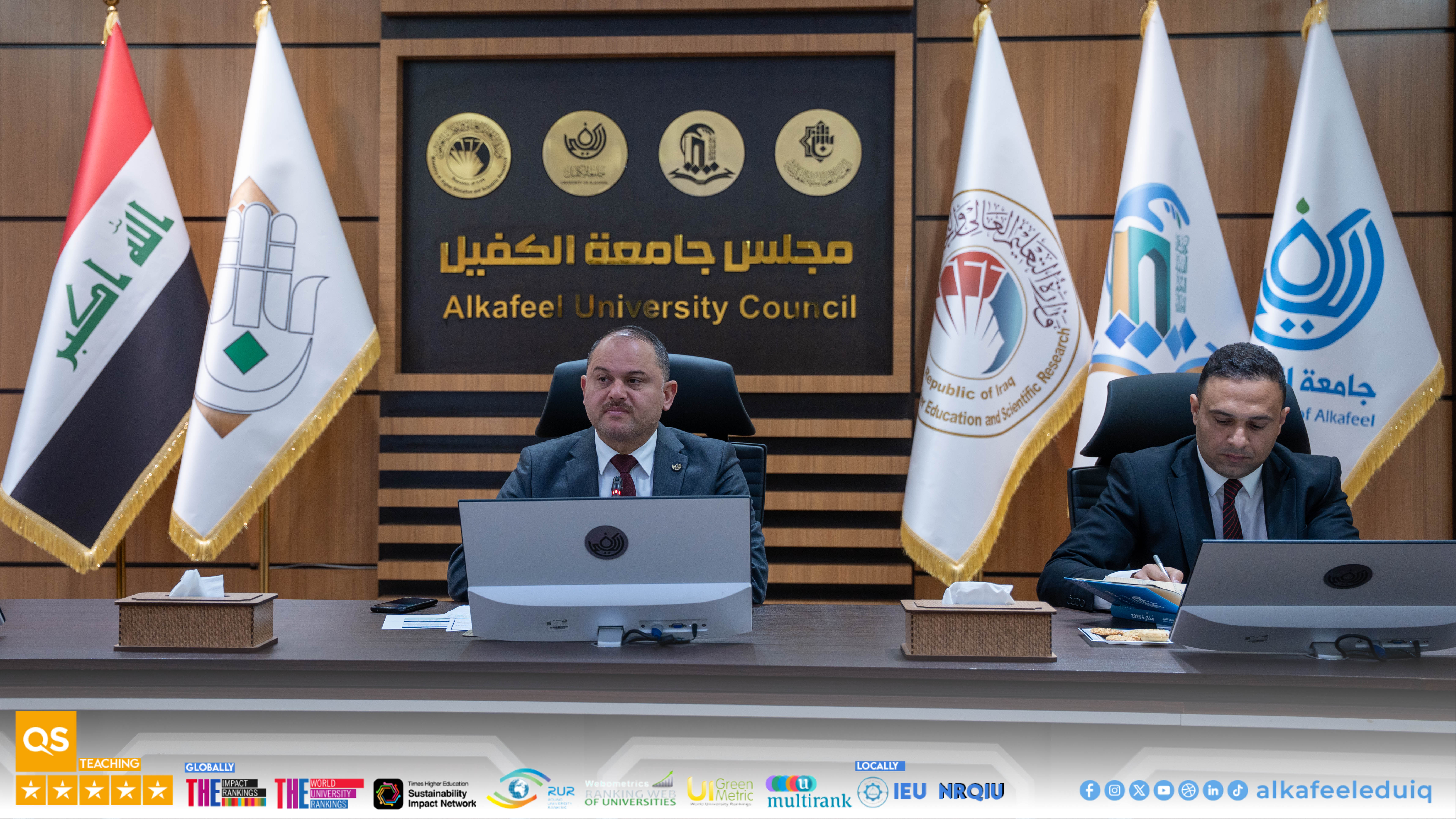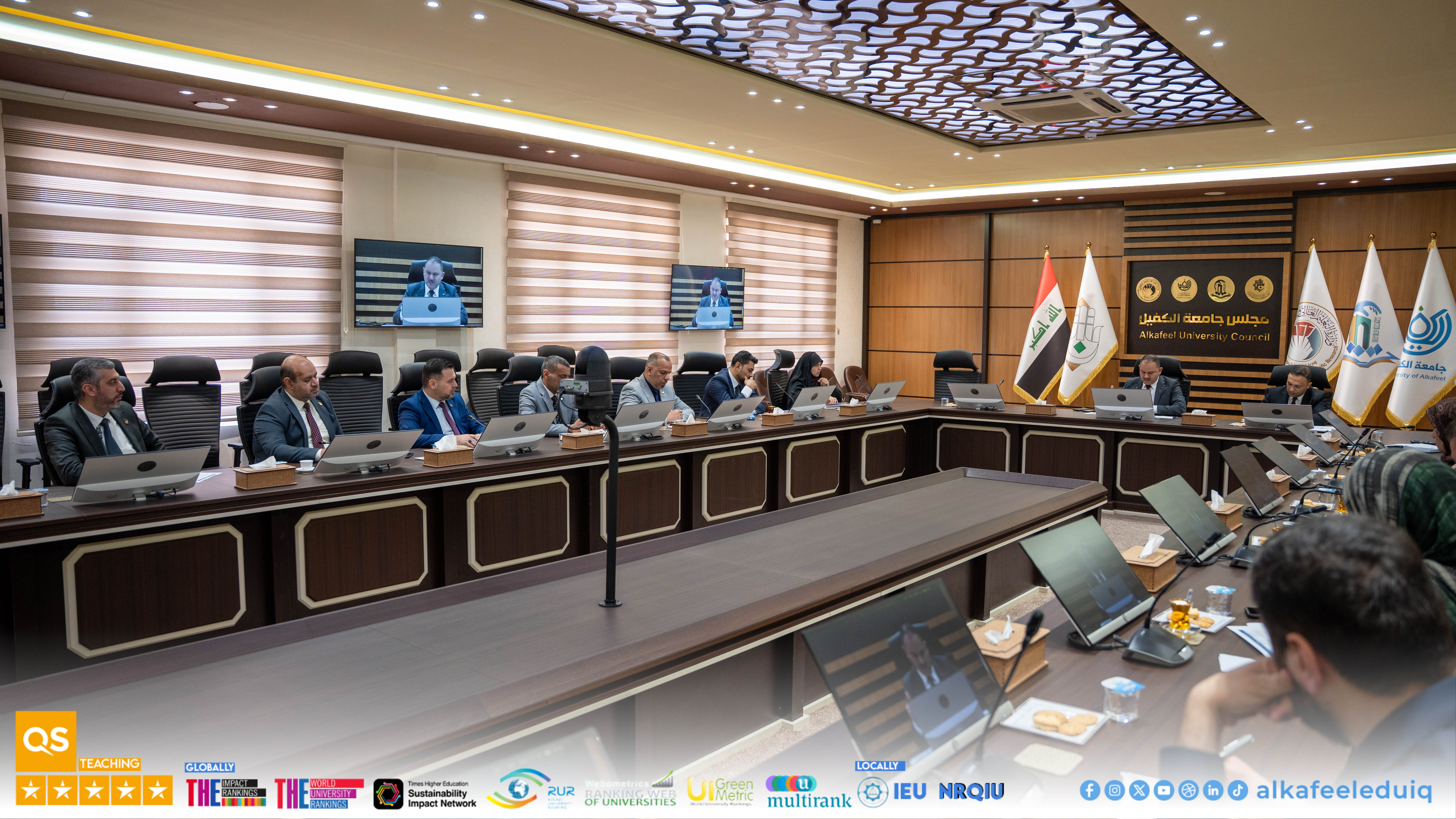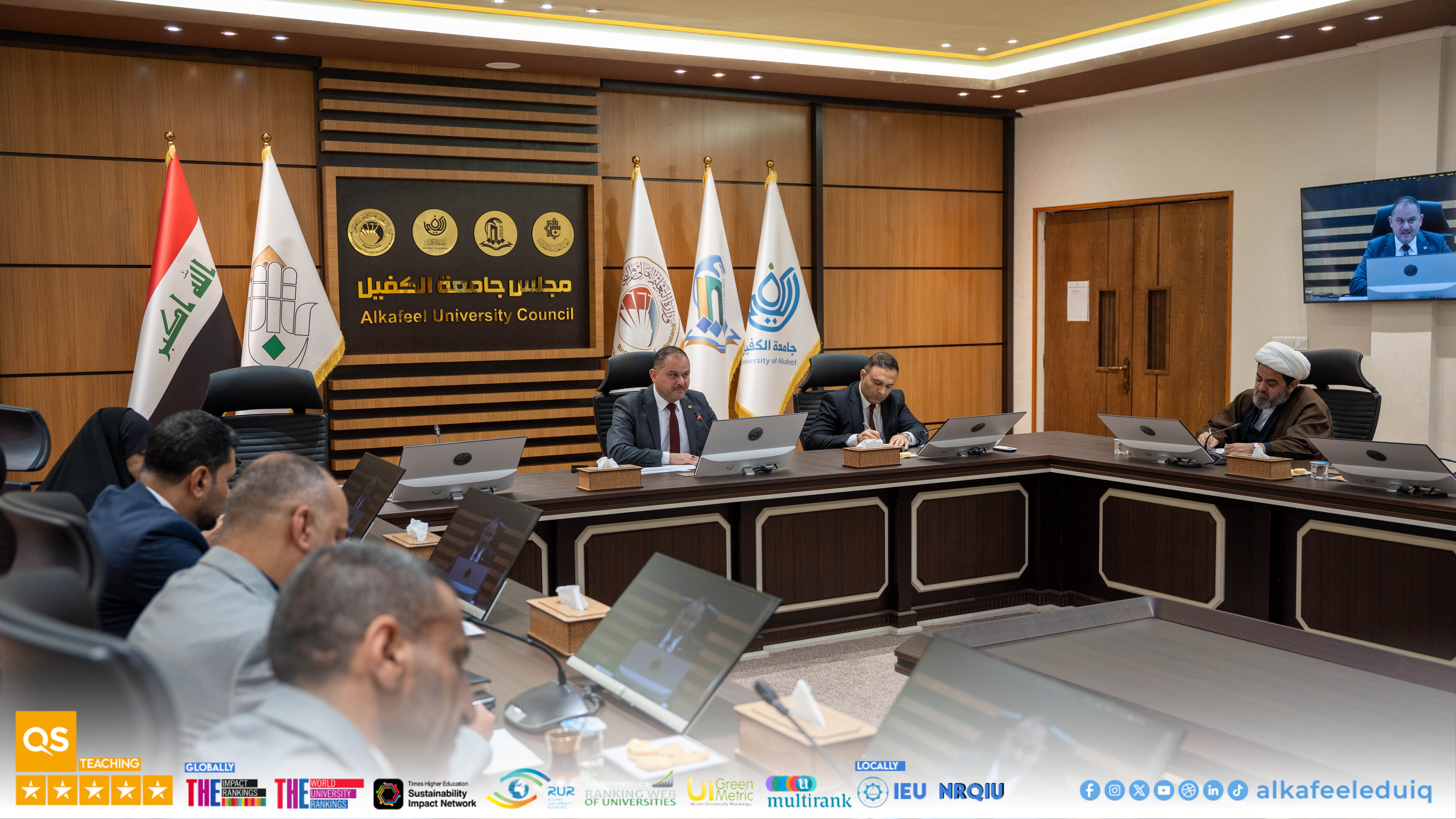 University of Alkafeel Council held its sixth meeting 2025-2026, chaired by the University President, Prof. Dr. Nawras Muhammed Shaheed Al-Dahan, and attended by the Vice-Chancellor for Scientific Affairs, Prof.Dr. Nawal Ayed Al-Mayali, the deans and their assistants, to discuss several important academic and administrative matters on Saturday, 7 February 2026.