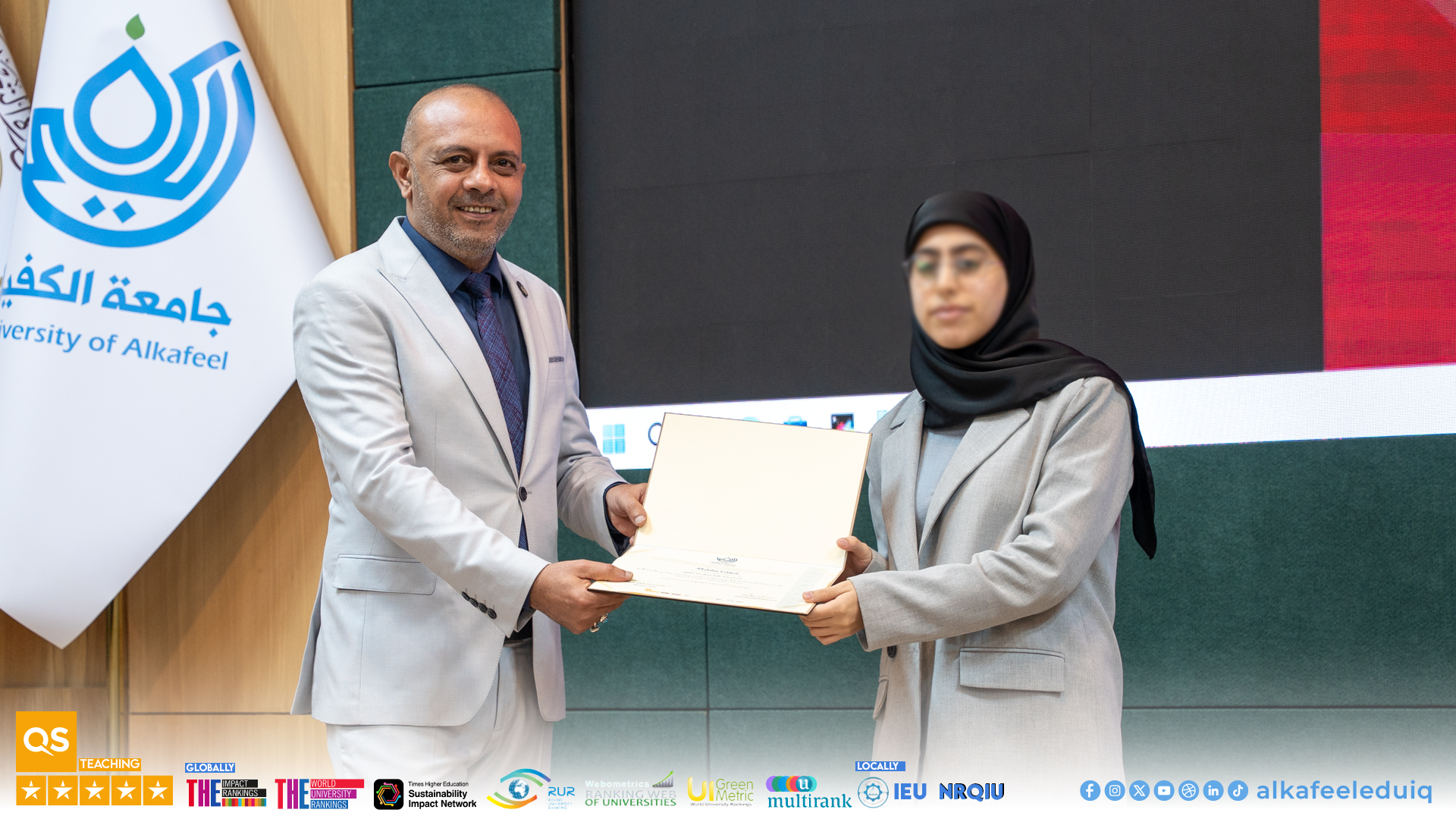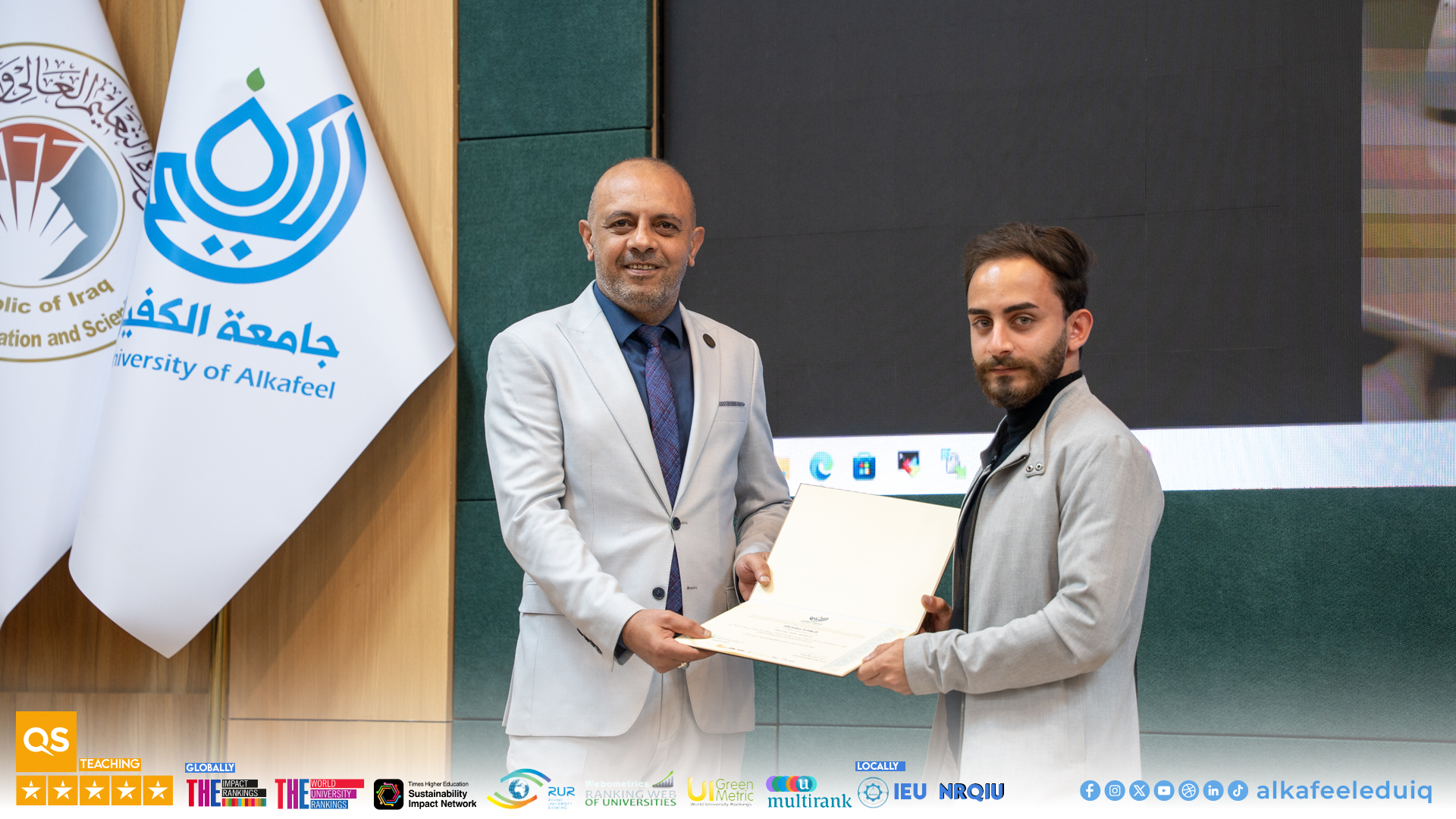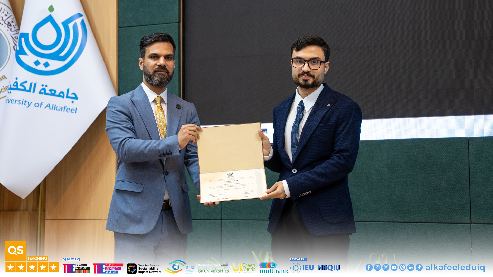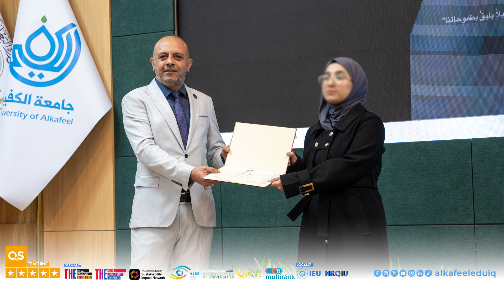 As part of its ongoing support for creative talents and student skills development, and under the auspices of the Ministry of Higher Education and Scientific Research, and under the slogan “Make Your University Your Inspiration,” Al-Kafeel University organized a ceremony on Monday, 9 February 2026, to announce and honor the winners of the fourth edition of the “My University with My Lens” competition (2025-2026).