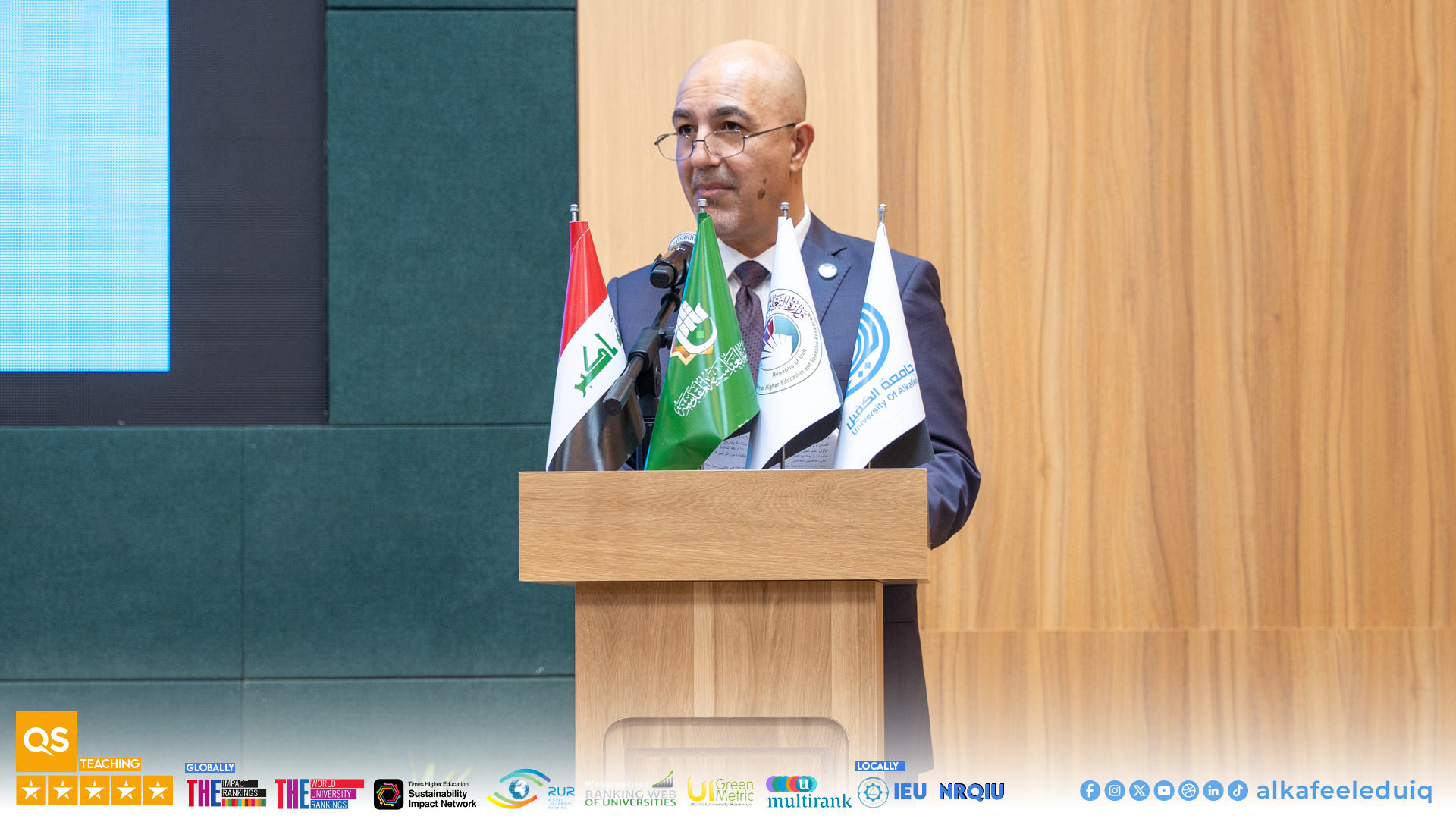 The ceremony began with a recitation of an ayat from Glorious Quran by Seid. Muhannad Al-Mayali, Director of Glorious Quran Institute , pertinent to Holy Abbas Shrine in Najaf. Then there was a speech delivered by Asst. Prof.Dr. Akram Jalal, Head of Higher Committee for Implementing University Leadership Week Program, who emphasized the importance of supporting purposeful student initiatives and fostering a spirit of creativity and innovation in the university environment.