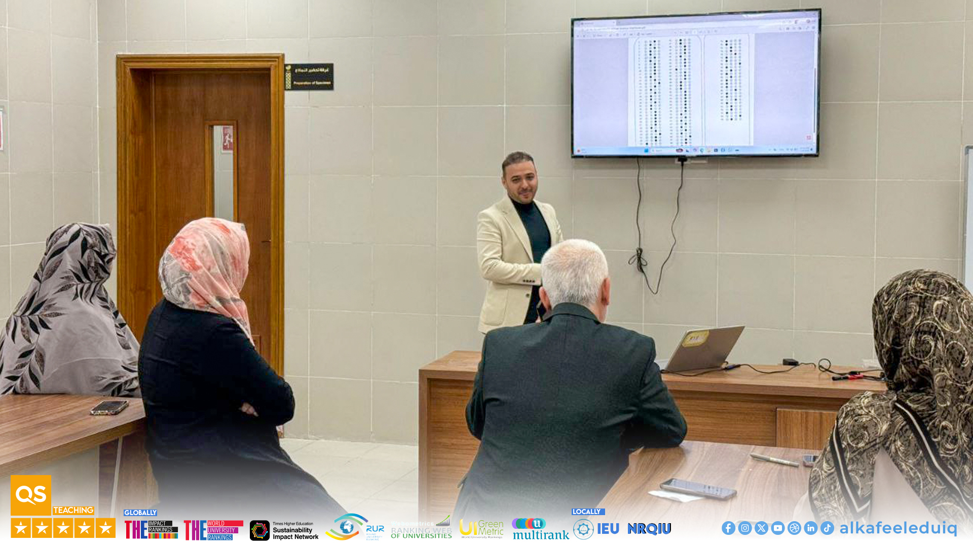 The workshop aimed to familiarize members of the examination committee with the software operation and practical application, thereby contributing to more accurate grading, faster results, and reduced human error. The workshop included a detailed explanation of the software functionality and features, the practical training on student data entry, system operation, reading answer sheets, and accurate and organized results. The questions of the participants were also addressed.
