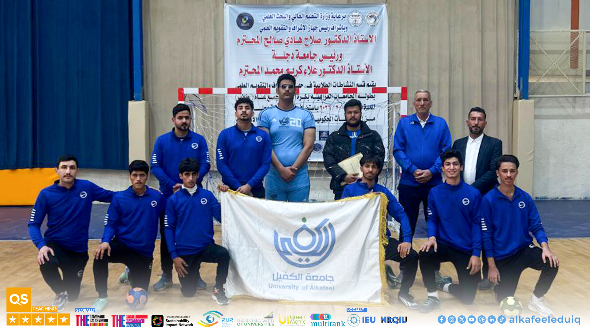 University of Alkafeel participated in the handball championship organized by the Ministry of Higher Education and Scientific Research as part of its support for university sports activities and to enhance the presence of student teams in official competitions. The team was supervised by Asst.Lect. Ali Hatem Al-Karawi, Director of the Student Activities Department, and accompanied by Coach. Nabil Kamel Al-Yassiri, from 8-15 February 2026.