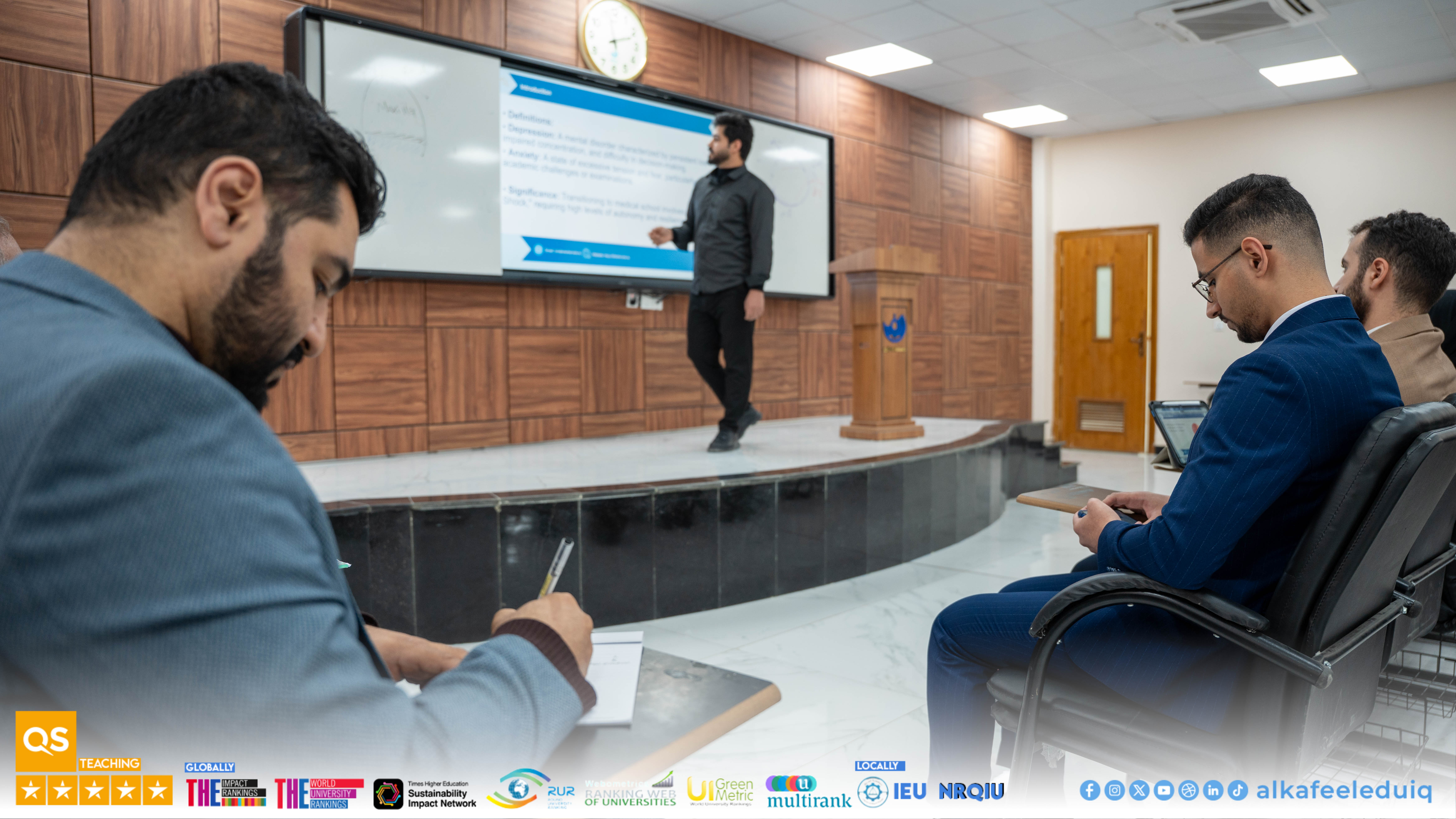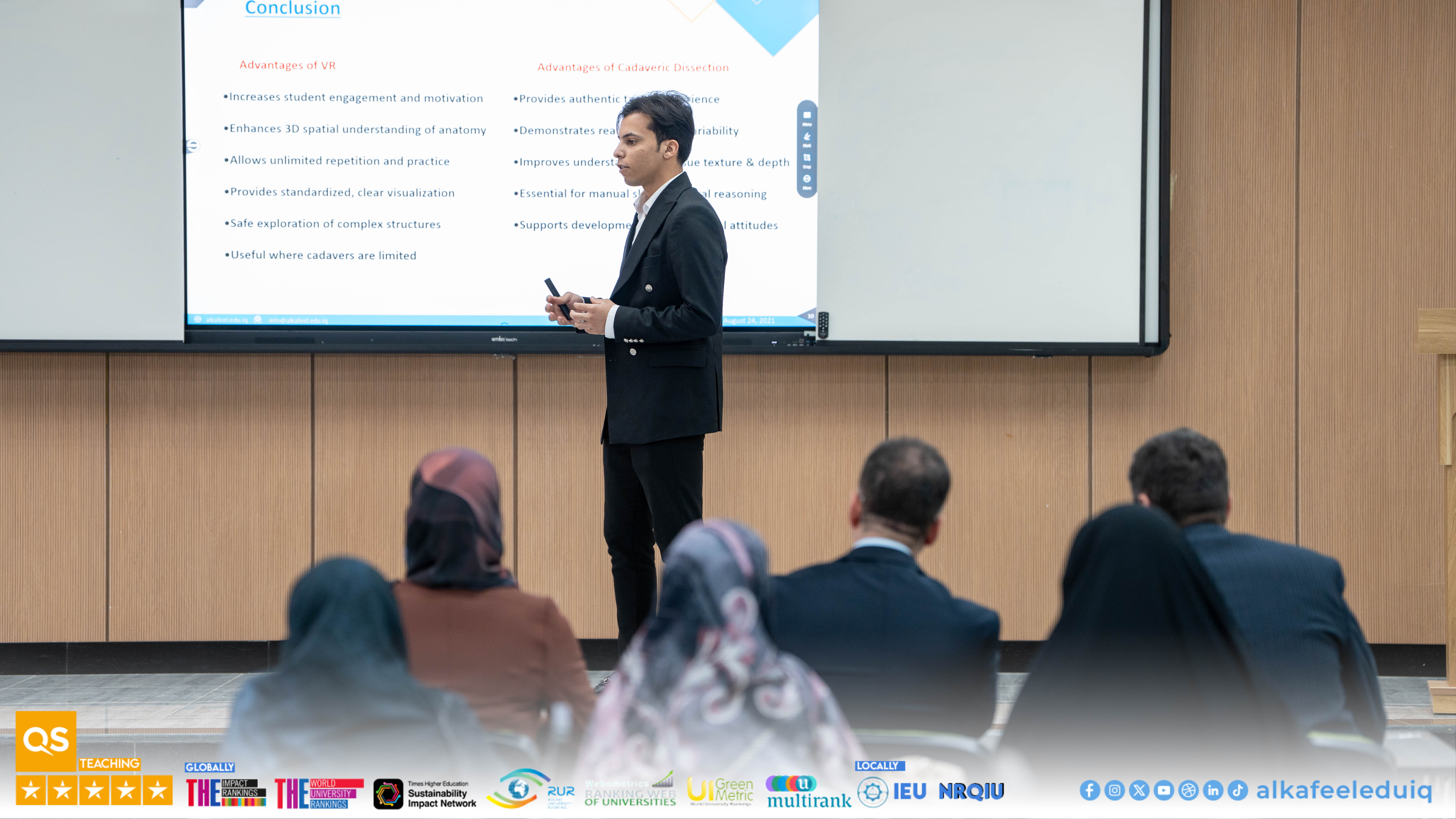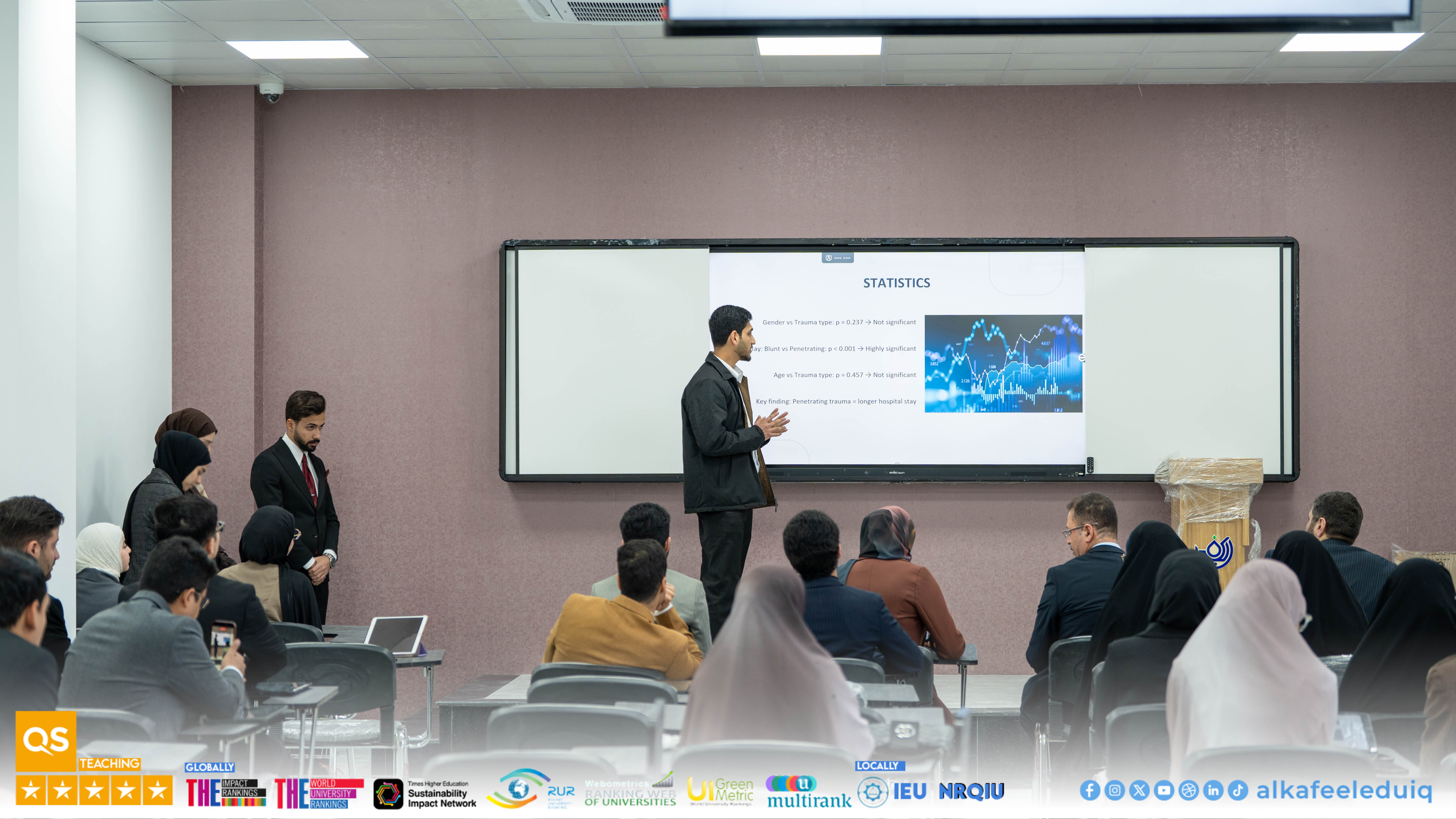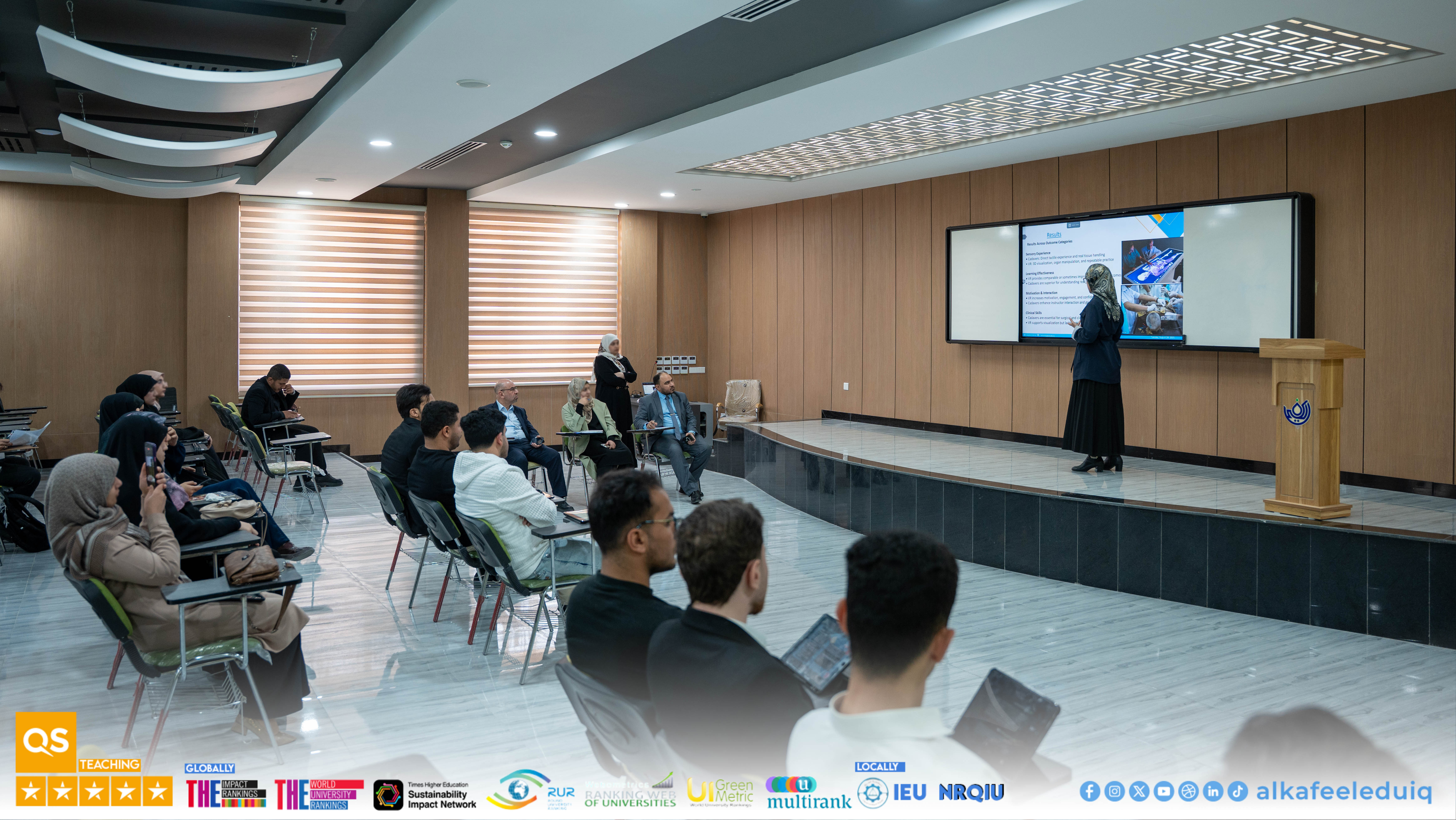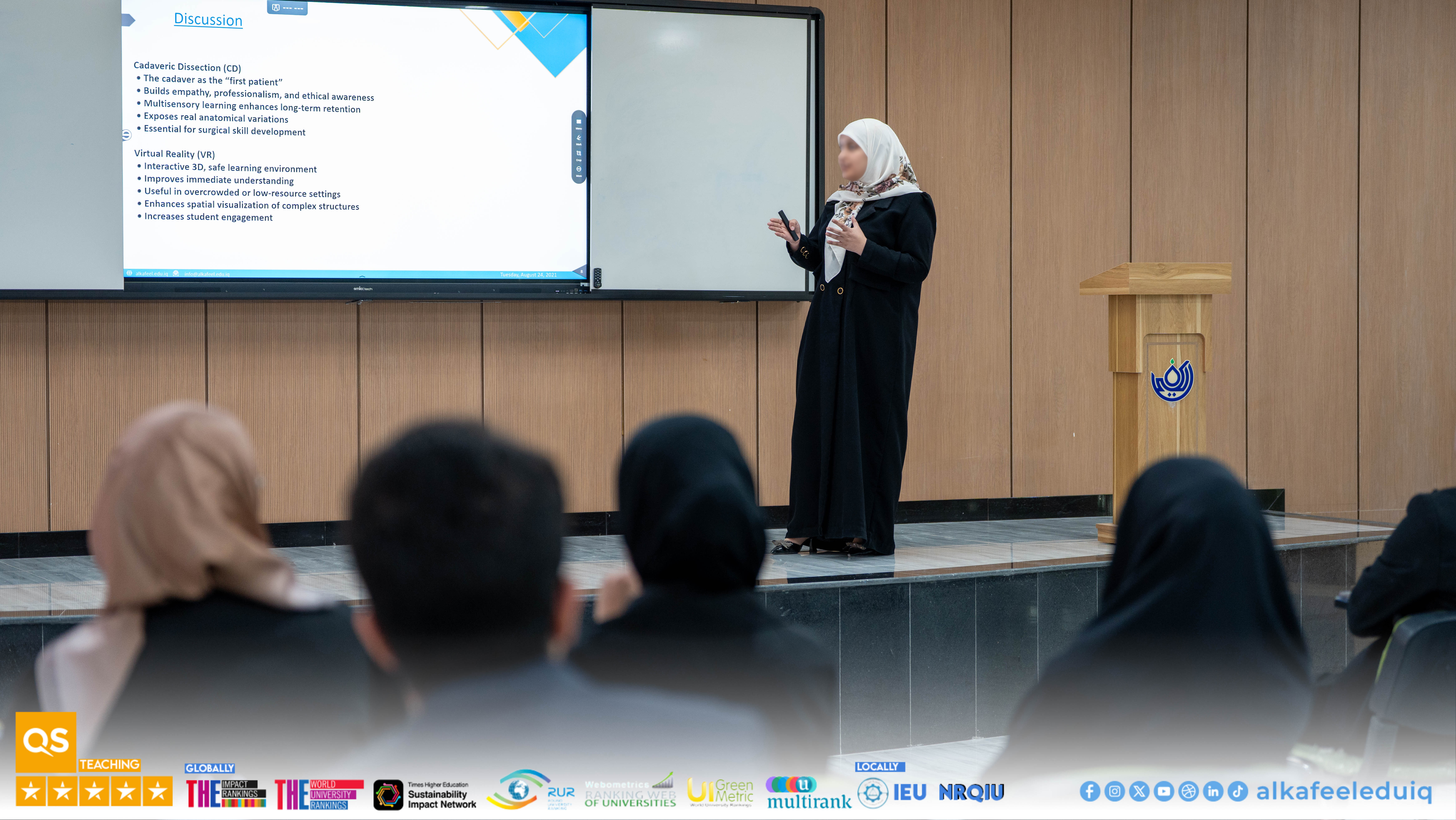 On Monday, 23 February 2026, the College of Medicine at University of Alkafeel held the research papers discussions of fourth-year medical students. The discussions were attended by Asst. Prof. Dr. Samer Maki Al-Hakak, Dean of the College of Medicine, and his deputies for scientific and administrative affairs. This important scientific step embodies the college mission to prepare physician-researchers capable of critical thinking and effective scientific contribution.