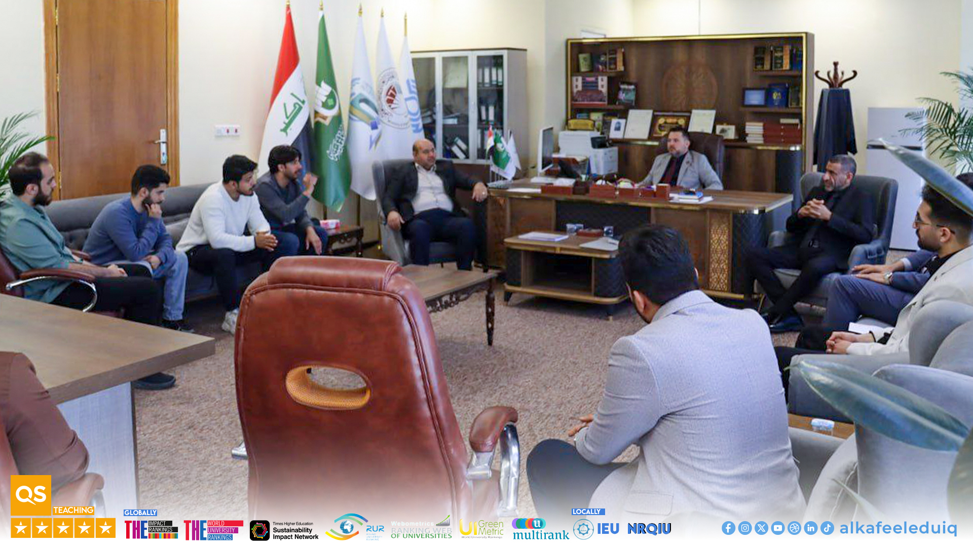 The Dean of the College of Pharmacy at University of Alkafeel , Asst. Prof.Dr. Saad Mashkour Waleed Al-Ziyadi, held a meeting with fifth-year students, in the presence of the Assistant Deans: Vice-Dean for Administrative Affairs, Asst.Prof. Dr. Ali Ahmed Hussein Al-Mayali, and Vice-Dean for Scientific Affairs, Prof.Dr. Hassanein Shaker Mahmoud, on Tuesday, 24 February 2026.