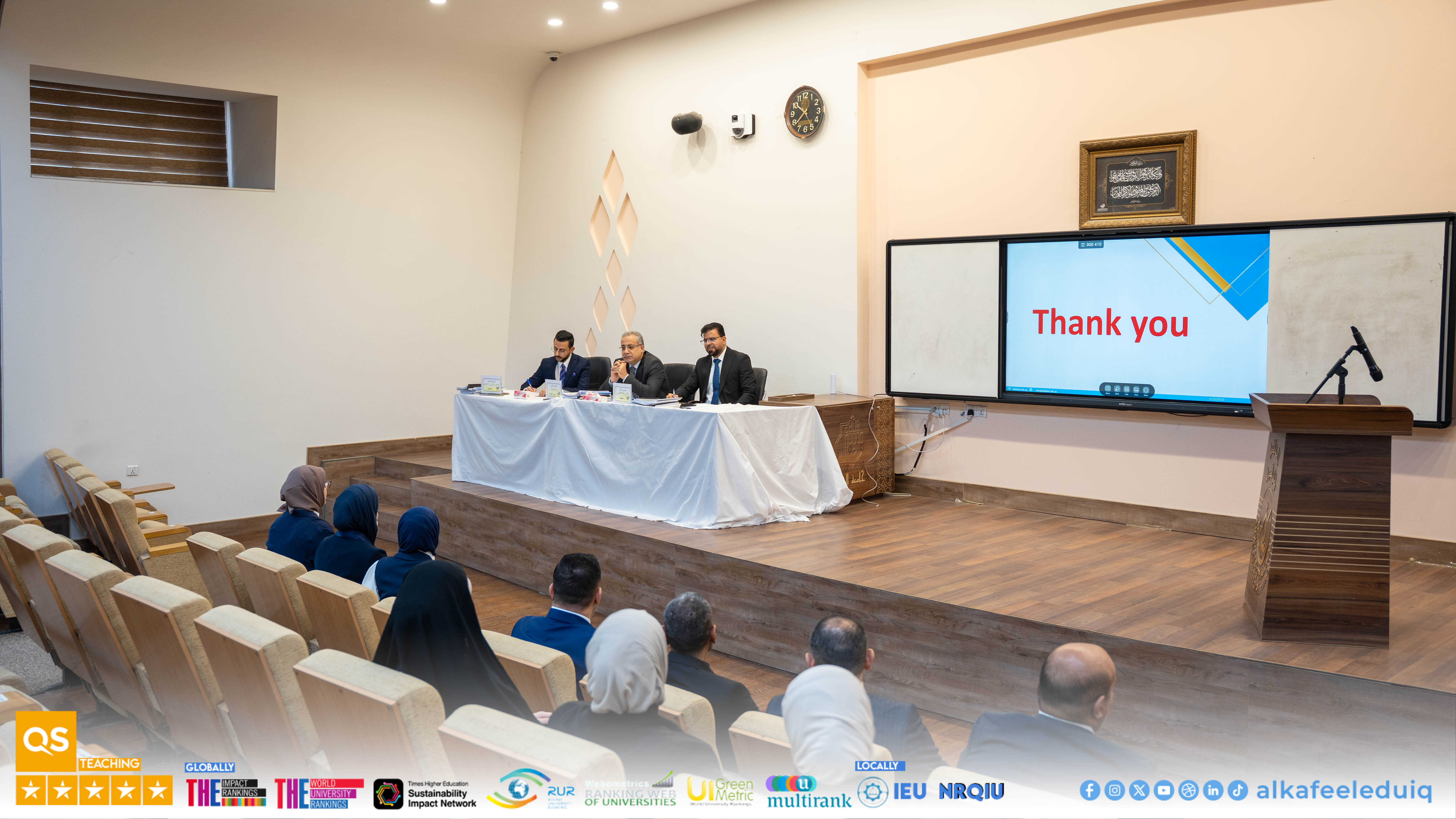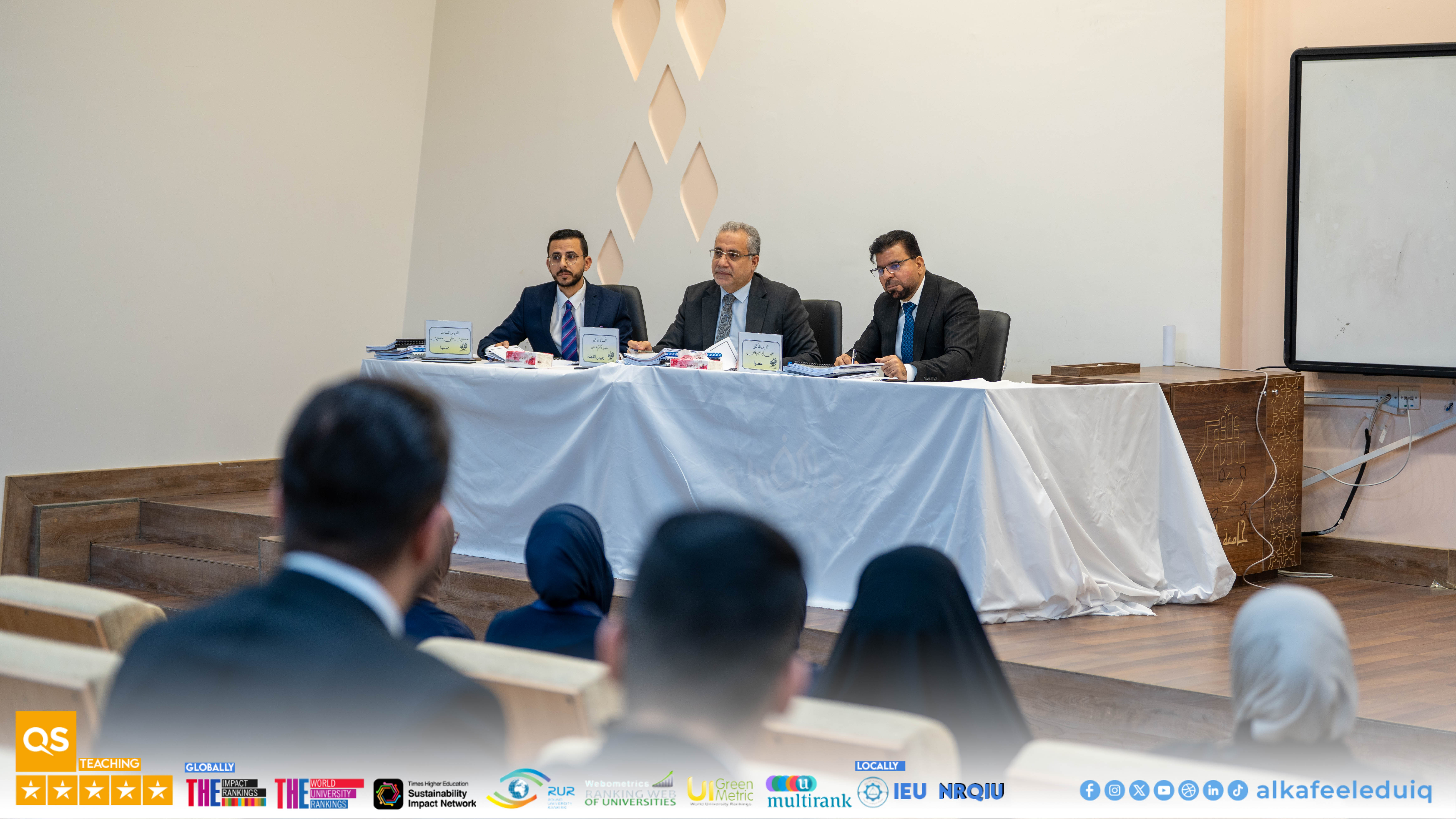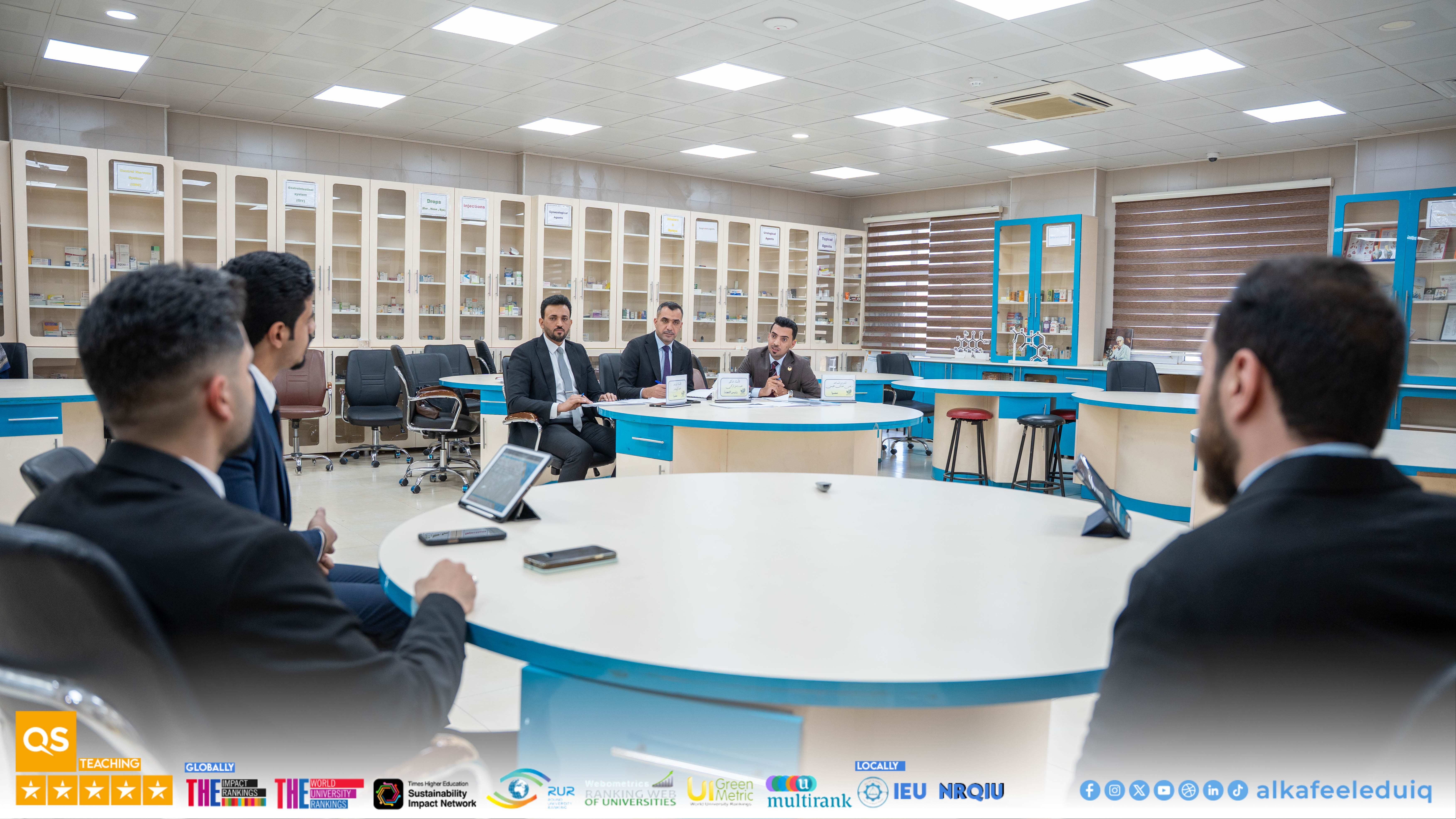 On Wednesday, 25 February 2026, the College of Pharmacy at University of Alkafeel held a discussion of the research projects of fifth-year students , Sixth Graduation Batch . The event was attended by the University President, Prof. Dr. Nawras Muhammed Shaheed Al-Dahan, the Dean of the College of Pharmacy, Asst.Prof. Dr. Saad Mashkour Waleed Al-Ziyadi, and the Vice-Deans for Scientific and Administrative Affairs.