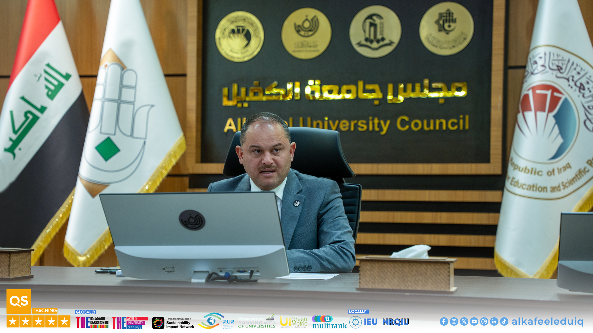 On Tuesday, 3 March 2026, the University of Alkafeel Council held its regular meeting, chaired by University President Prof.Dr. Nawras Muhammed Shaheed Al-Dahan, and attended by Vice-Chancellor for Scientific Affairs Prof.Dr. Nawal Ayed Al-Mayali and other council members.