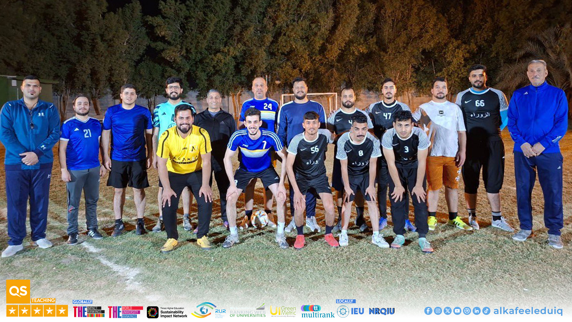 The College of Dentistry team secured a valuable victory over the Security Company team, while the College of Medical and Health Technologies team dominated the match and achieved a well-deserved win against the College of Medicine team. The Agriculture Department team also achieved an important victory over the Machinery and Maintenance Department team.