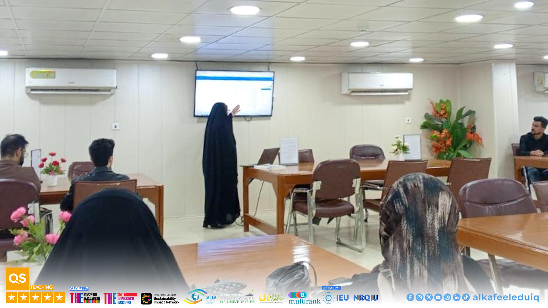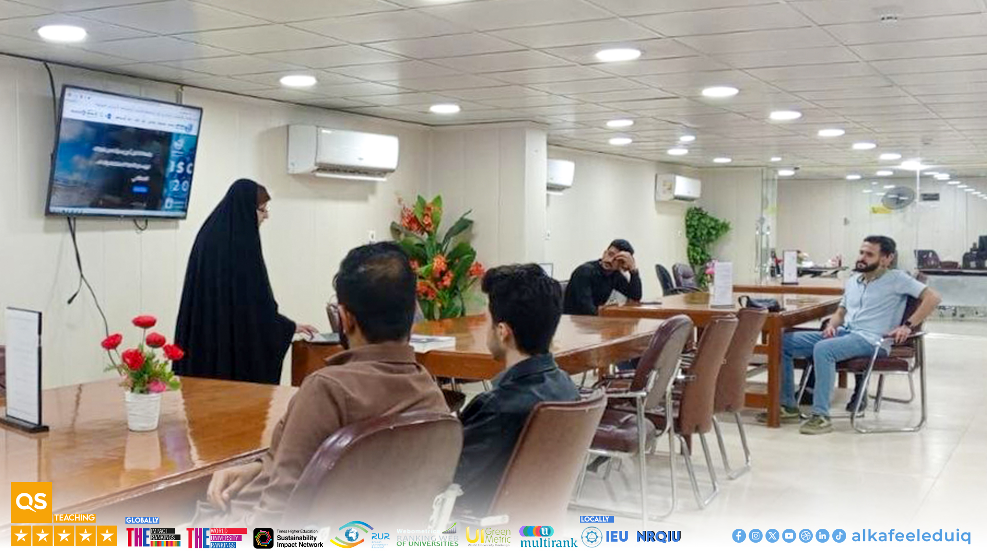 The workshop, presented by Ms. Dhikra Abdul Aziz, included a detailed explanation of how to easily access required academic resources through the website of the library . It also introduced students to the "Siraj" platform and the diverse digital academic resources the library offers.