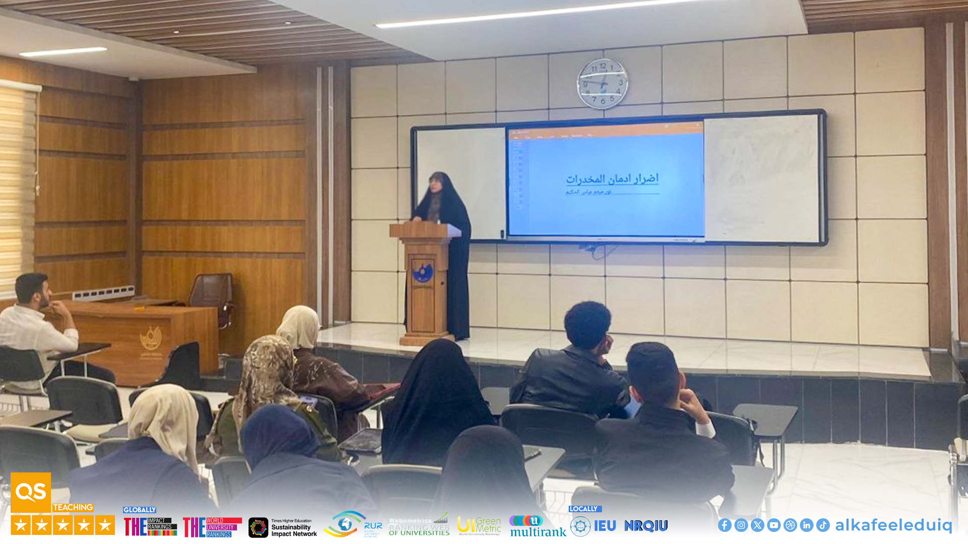 On Saturday, 28 March 2026, the Lifelong Learning Center and the Department of Psychological Guidance and Educational Orientation at University of Alkafeel held an awareness lecture : "Psychological and Social Dimensions of Drug Addiction." The lecture, presented by Counsl. Noor Maitham Abbas, targeted first-year medical students.