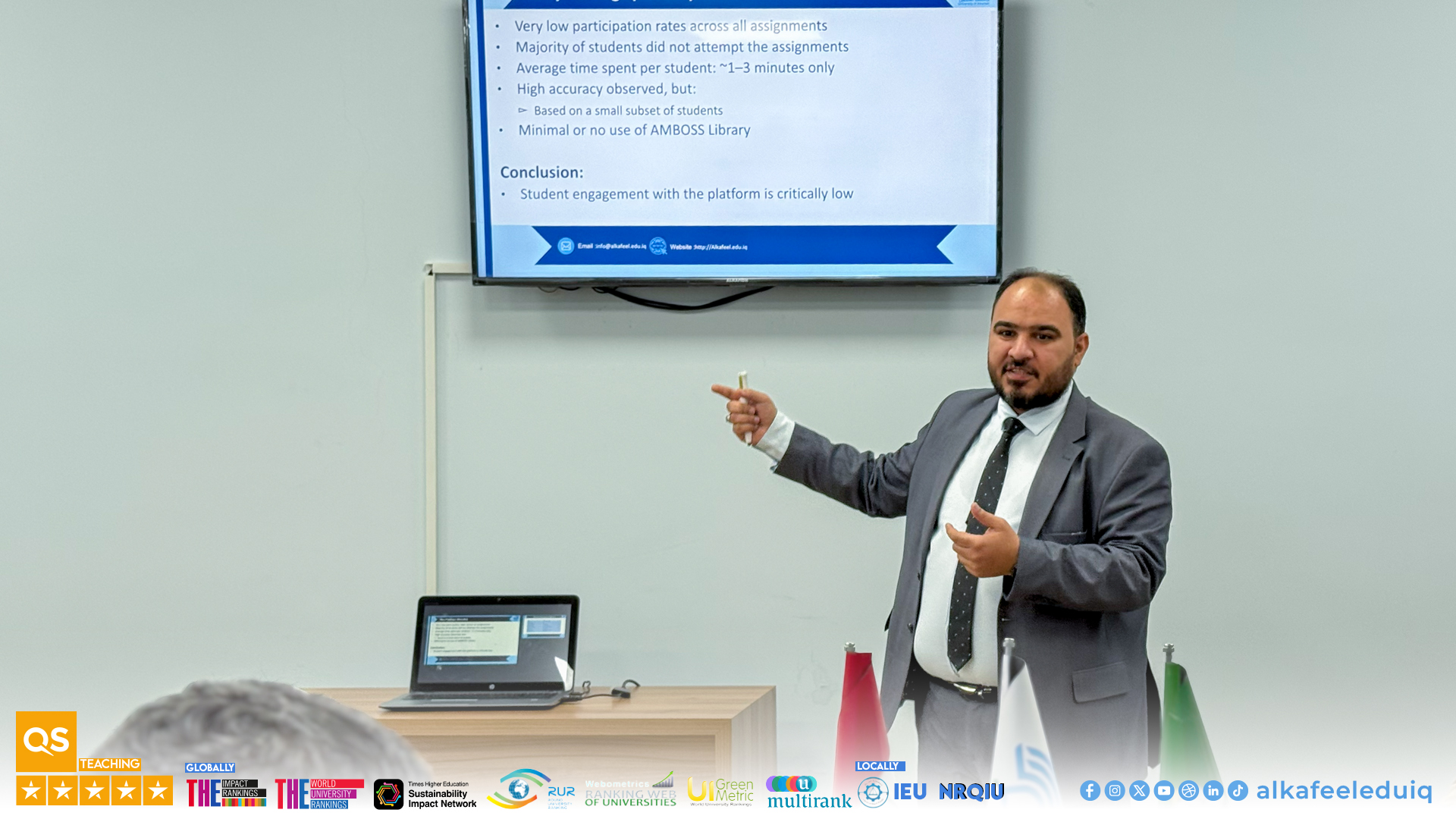 The College of Medicine at University of Alkafeel organized a scientific workshop : “Using Digital Educational Platforms in Medical Education,” presented by Asst. Lect. Ghufran Abdul-Ilah Jawad and Asst. Lect. Ghaith Hassan Alwan, on Wednesday, 1 April 2026, with the participation of a number of faculty members. The workshop aimed to develop the skills of the faculty members in using digital educational platforms and to promote their systematic integration into the educational process, thereby contributing to improved teaching quality and academic interaction.