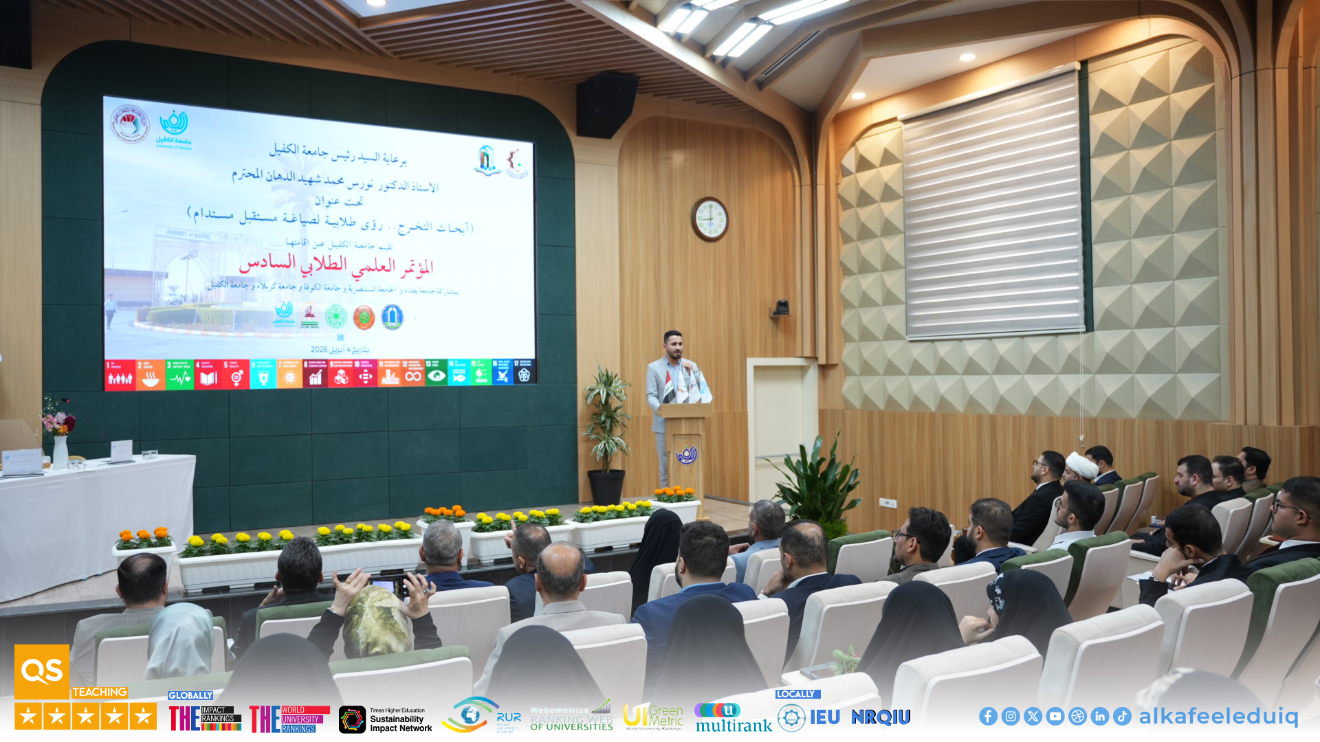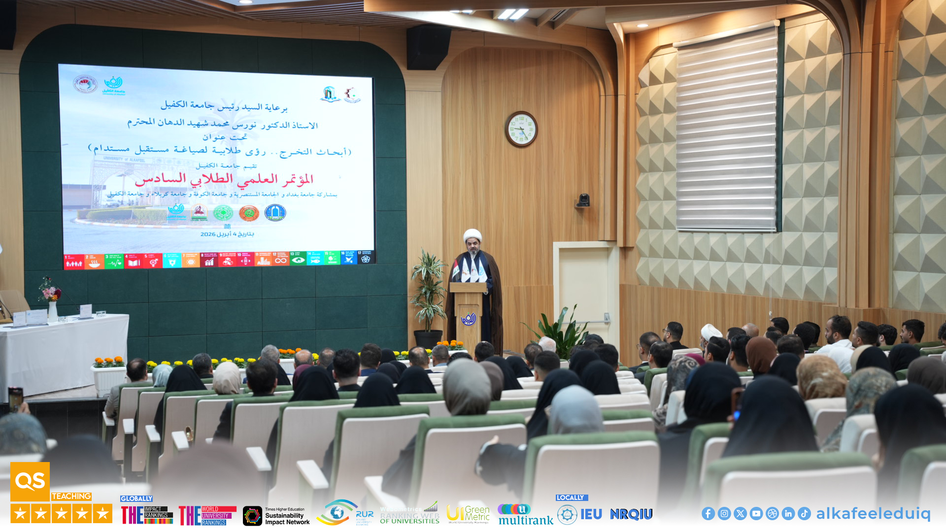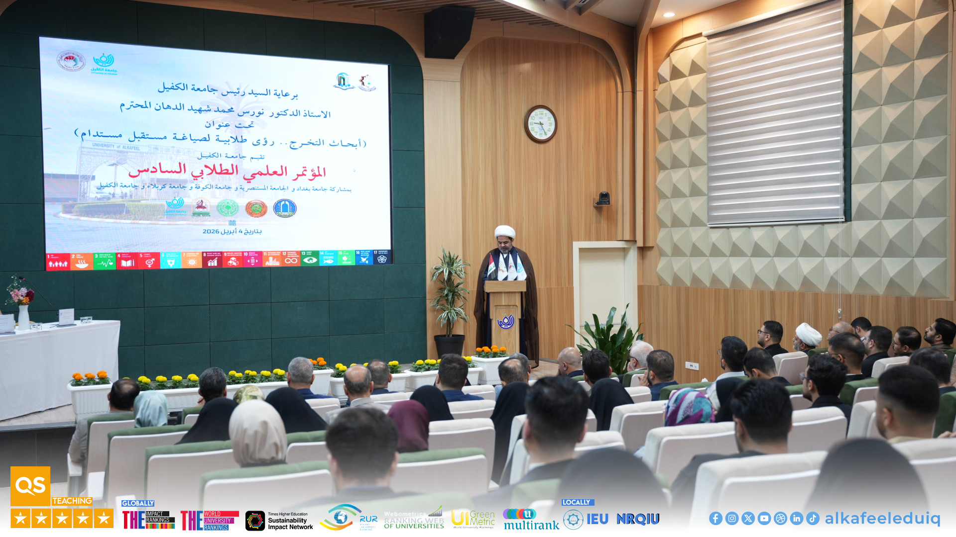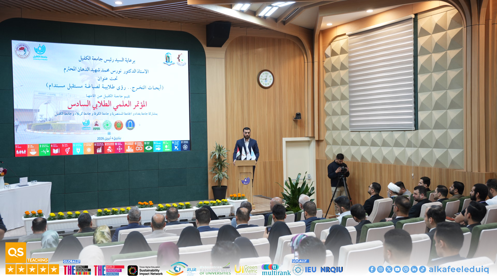 Under the patronage of the President of University of Alkafeel , Prof. Dr. Nawras Muhammed Shaheed Al-Dahan, University of Alkafeel launched its Sixth Student Scientific Conference : "Graduation Research: Student Visions for Shaping Sustainable Future." This conference is part of the scientific activities of the students for the 2025-2026 academic year and will feature the participation of a select group of Iraqi universities.