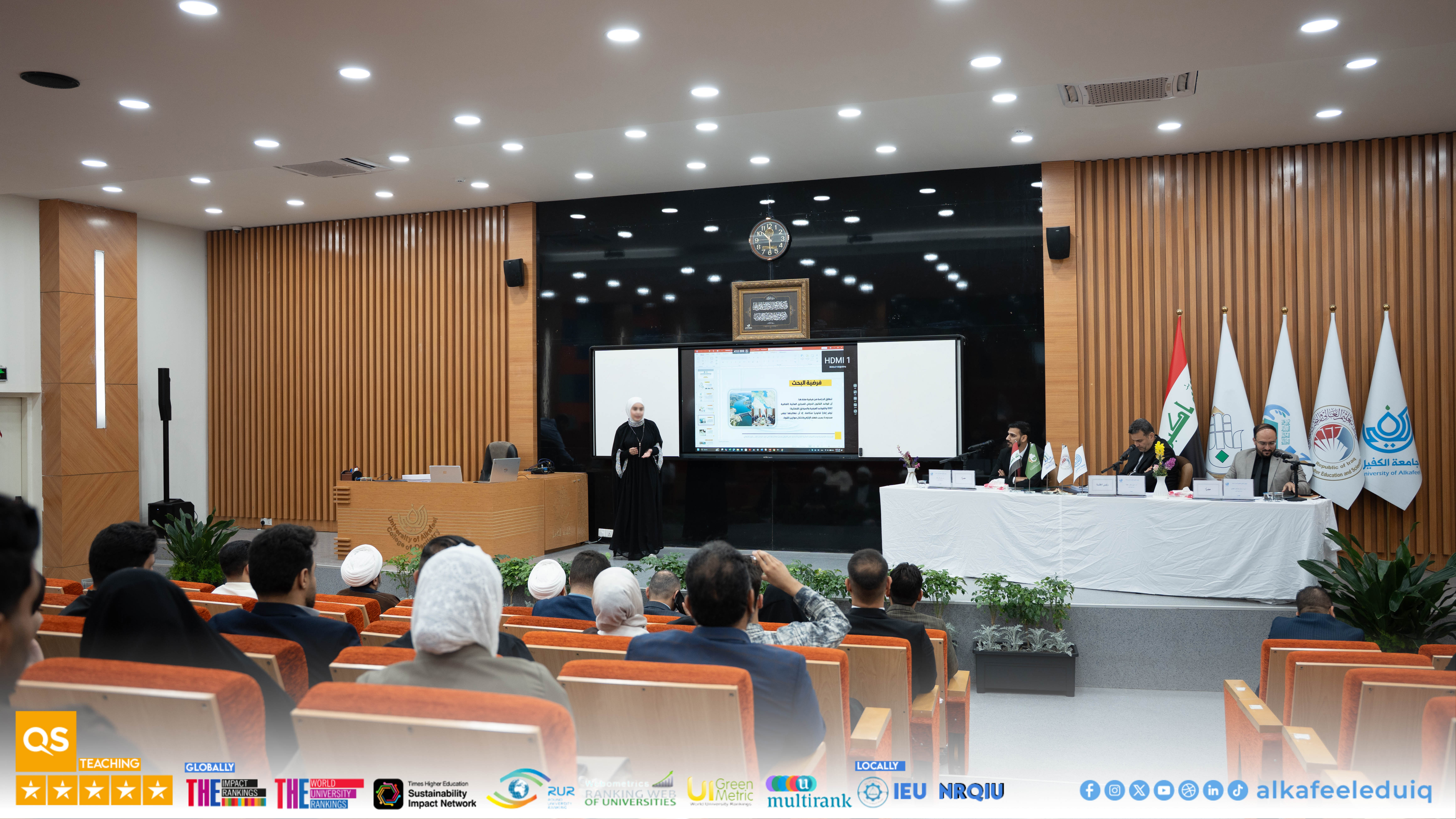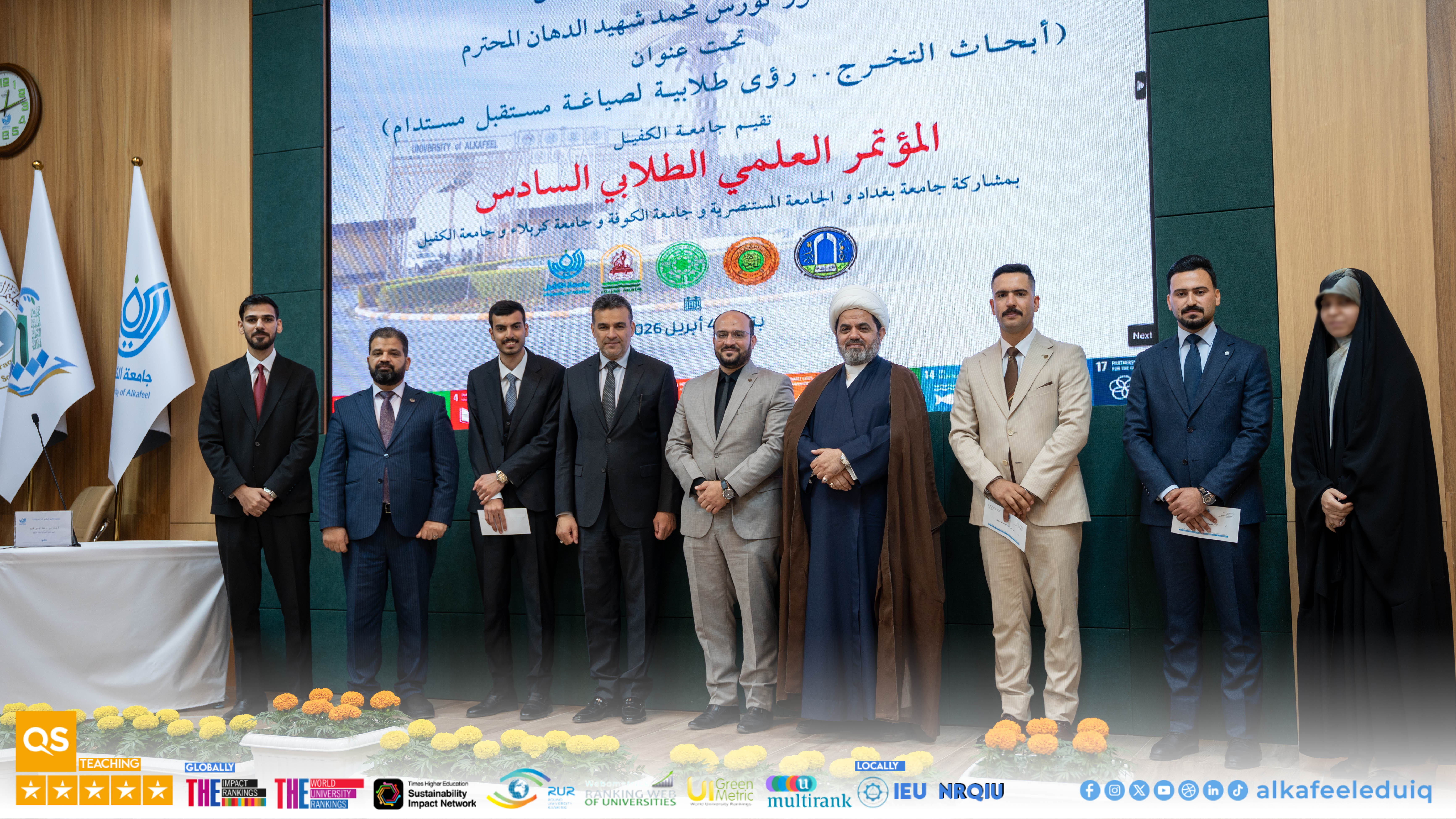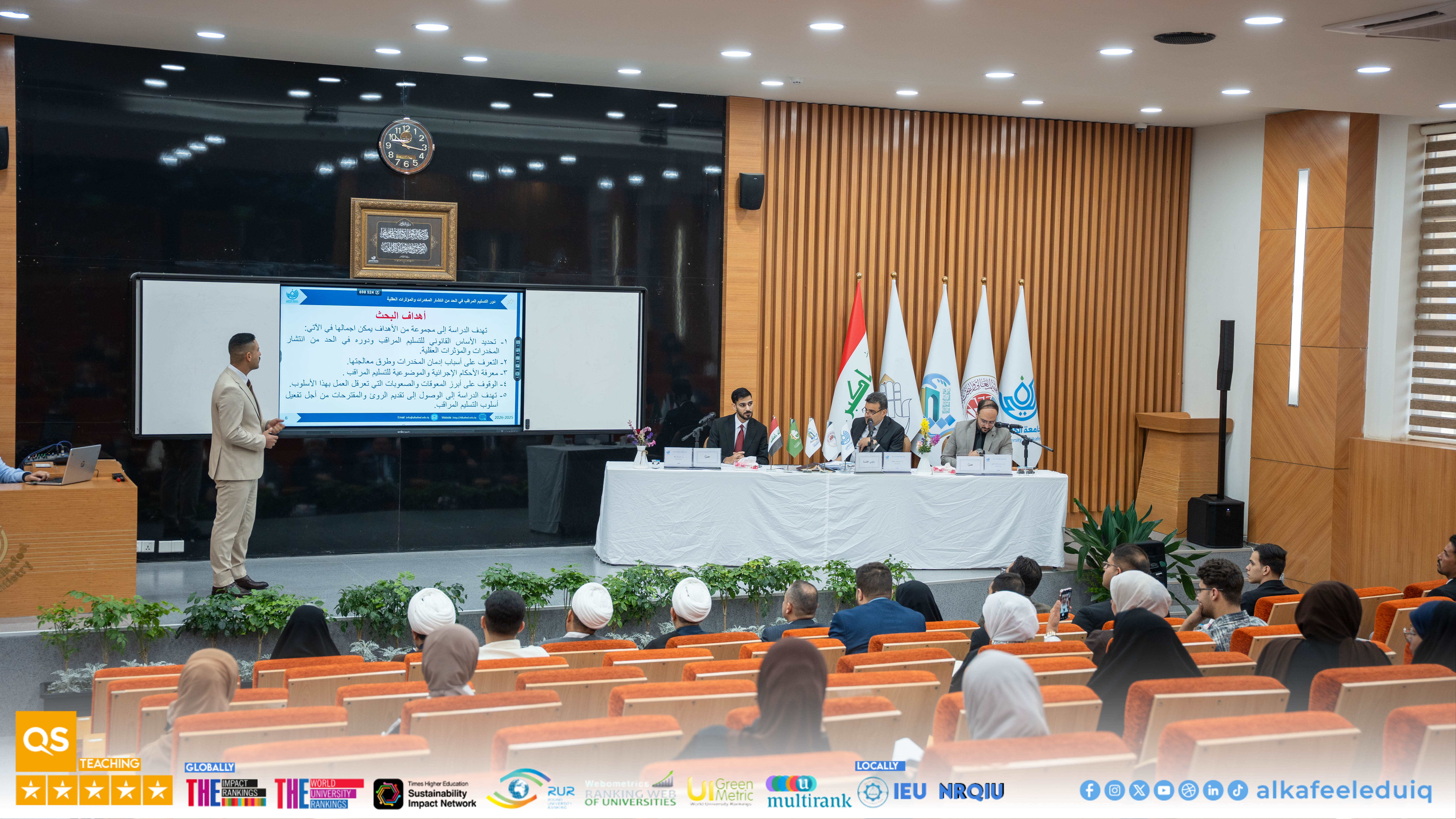 University of Alkafeel hosted the graduation research presentations for law students as part of its Sixth Student Scientific Conference, held on the slogan : "Graduation Research: Student Visions for Shaping Sustainable Future." Students from University of Alkafeel and the University of Kufa participated in the event, which took place on Saturday, 4 April 2026. The sessions included a distinguished presentation of graduation projects, where students presented law research addressing contemporary issues and contributing sound scientific solutions. A select group of professors and specialists attended, discussing and evaluating the presented works according to rigorous academic standards. The competition results were as follows : Abdullah Ahmed Hakim, a student from the College of Law at the University of Kufa, win first place. Mohammed Salman Farhoud, a student from the College of Law at University of Alkafeel , came second, and Ali Hakim Abdul Wahid, also from the College of Law at University of Alkafeel , did third .