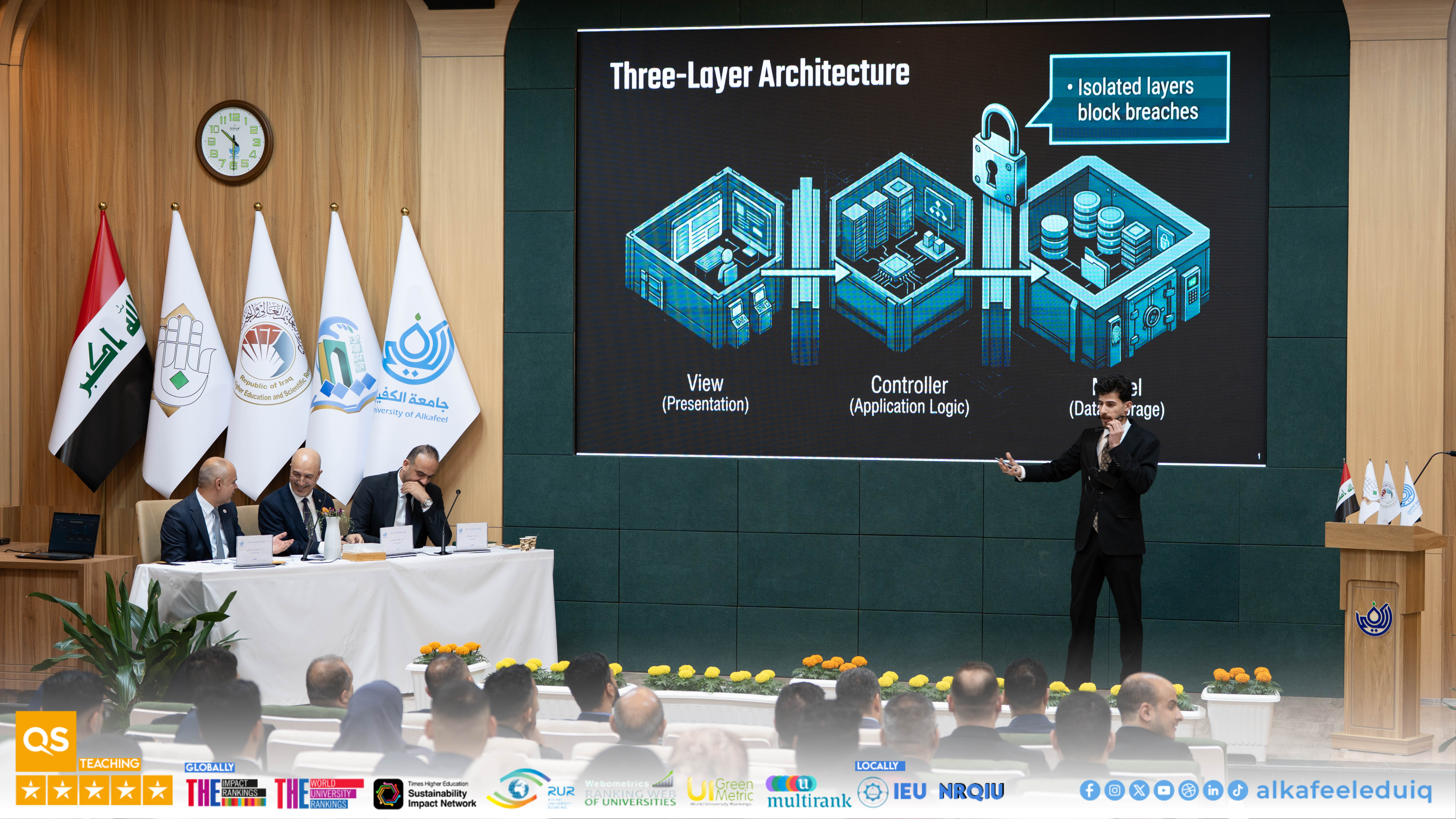 These events were attended by the University President, Prof.Dr. Nawras Muhammed Shaheed Al-Dahan, the Vice-Chancellor for Scientific Affairs, Prof.Dr. Nawal Ayed Al-Mayali, the Head of the Computer Engineering Department, Asst.Prof. Dr. Ali Jassim Al-Amiri, and a number of faculty members.