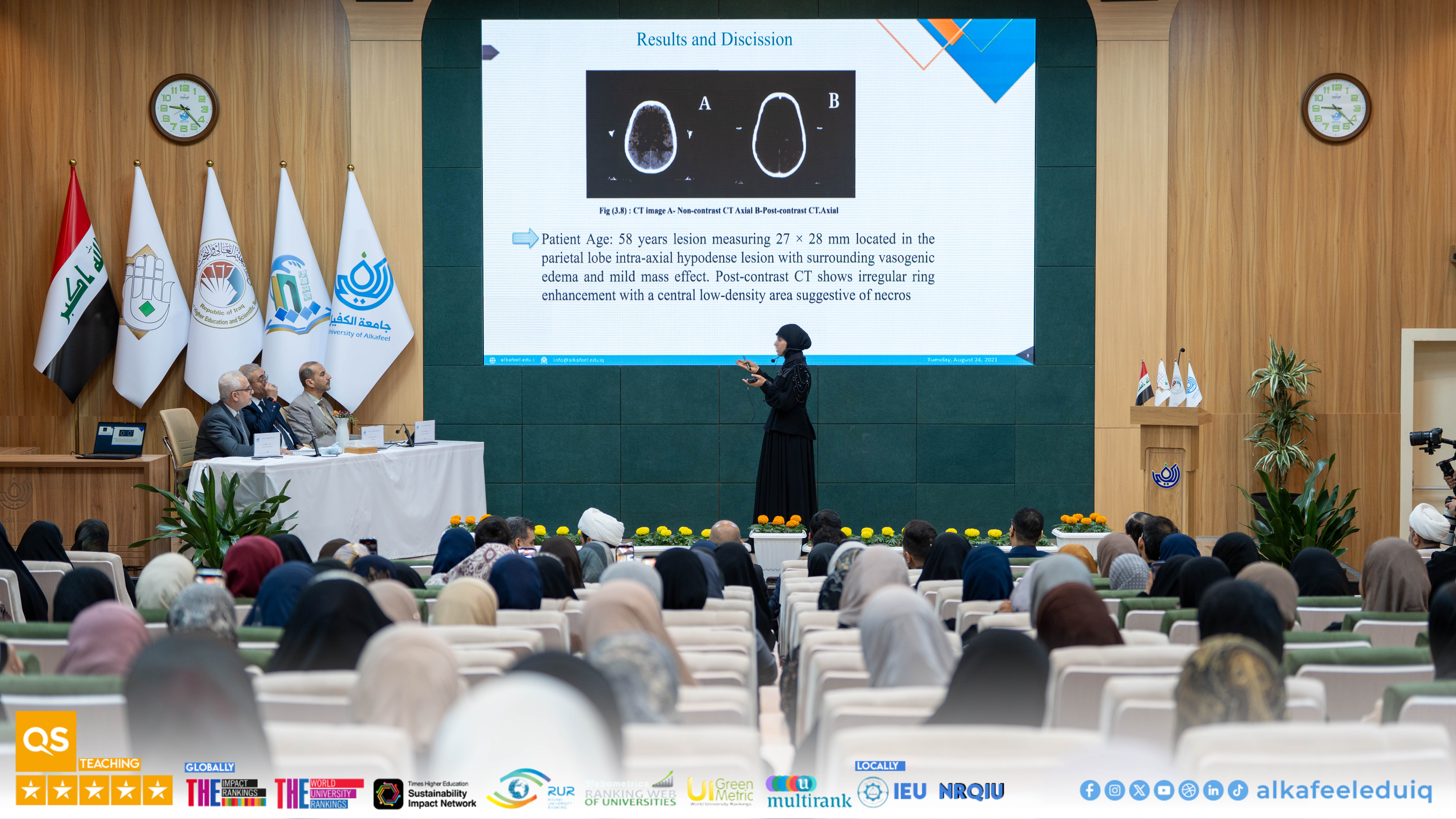 The conference was attended by the University President, Professor Dr. Nawras Mohammed Shaheed Al-Dahhan, the Vice-Chancellor for Scientific Affairs, Prof.Dr. Nawal Ayed Al-Mayali, and the Dean of the College, Prof. Dr. Fadhil Ismail Sharad, assistant deans and faculty members who reviewed the presentations of the students and participated in evaluating their scientific projects. In the sessions, the graduation projects demonstrated a high level of professionalism and innovation, highlighting the ability of the students to apply theoretical knowledge to address practical problems in the medical and radiological fields.