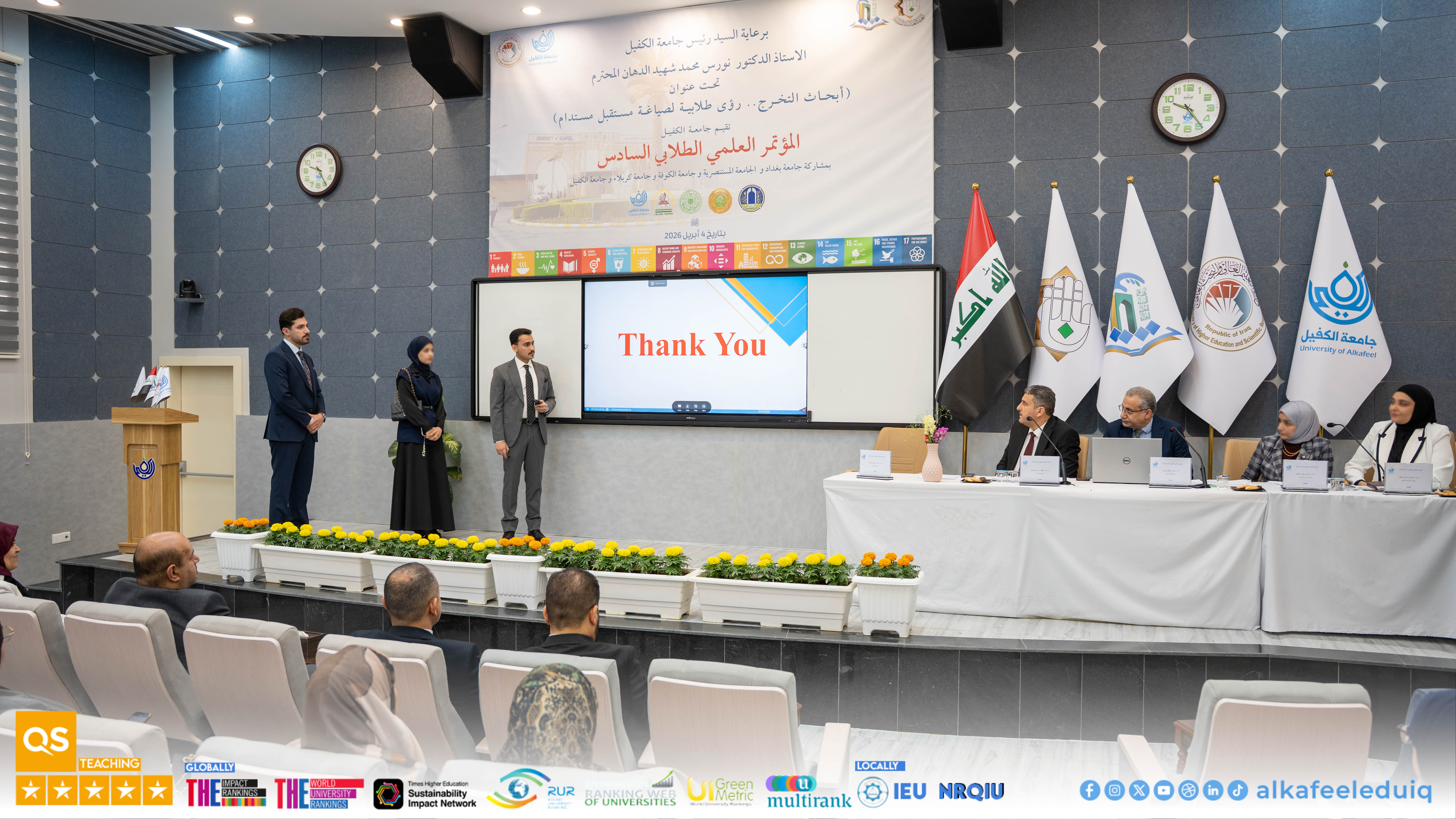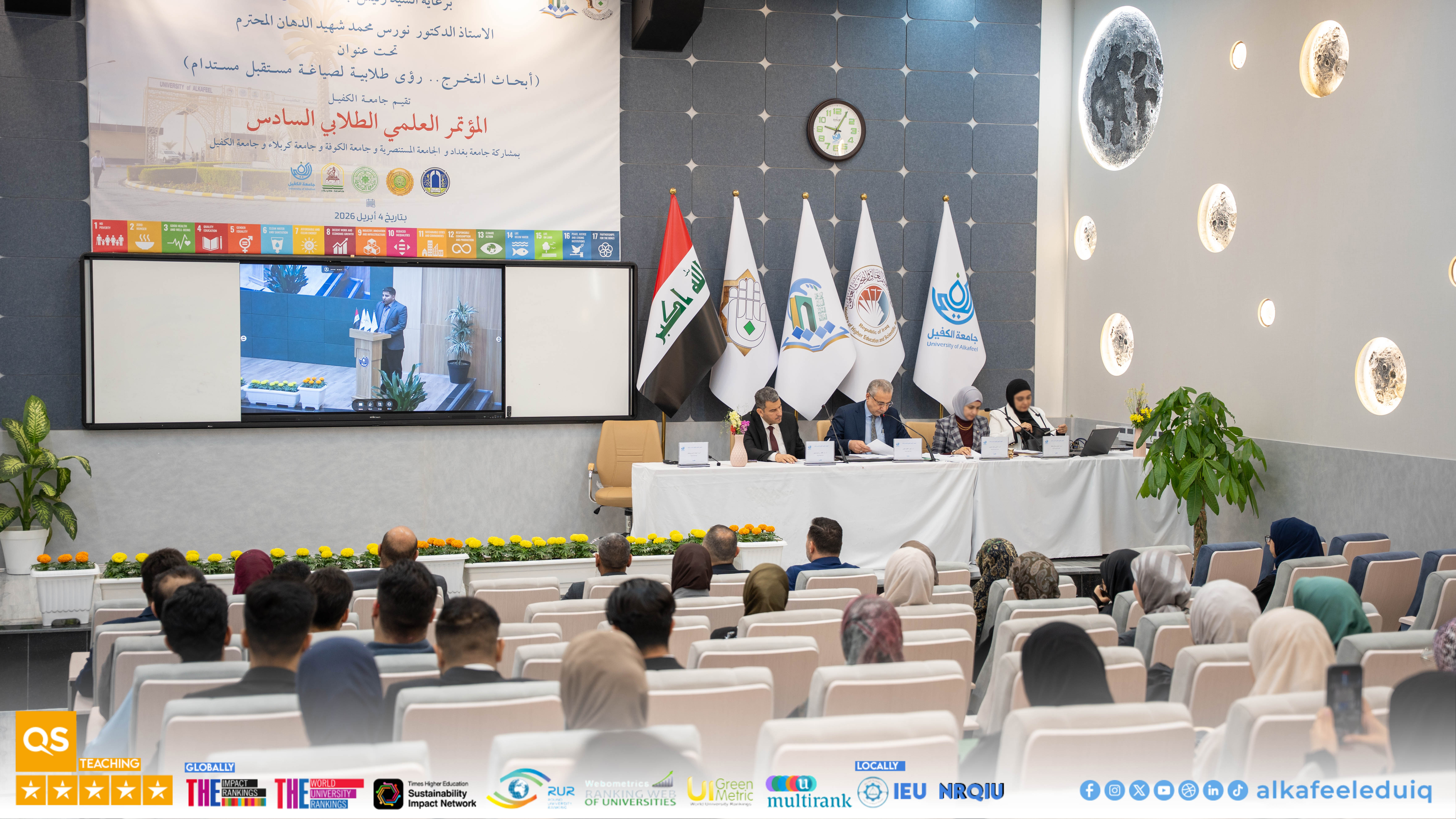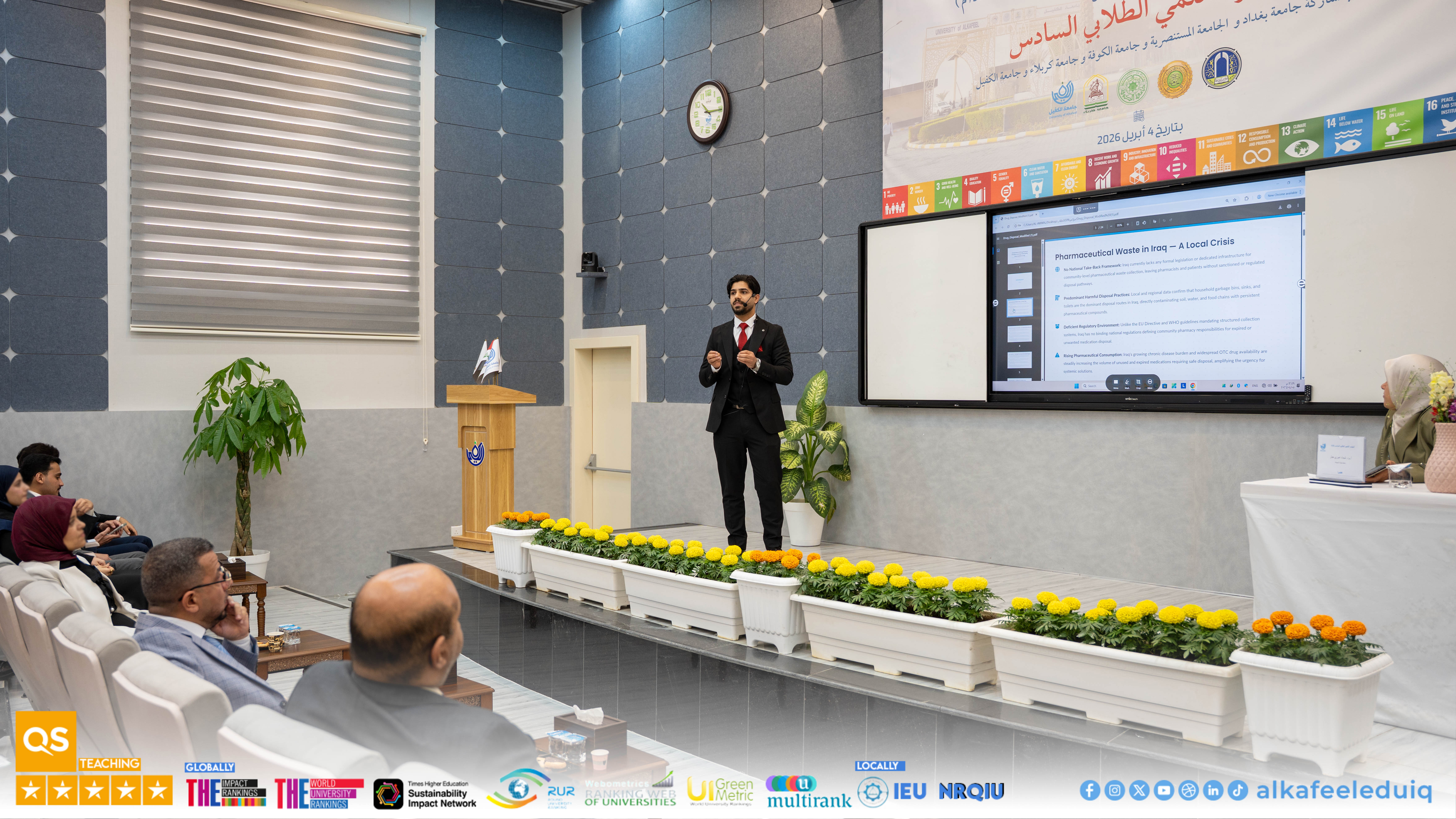 University of Alkafeel hosted the second day of its Sixth Student Scientific Conference, featuring discussions of graduation research projects by pharmacy students with the participation of a select group of Iraqi universities. This event was part of the Second University Sustainability Week activities and took place on Sunday, 5 April 2026.