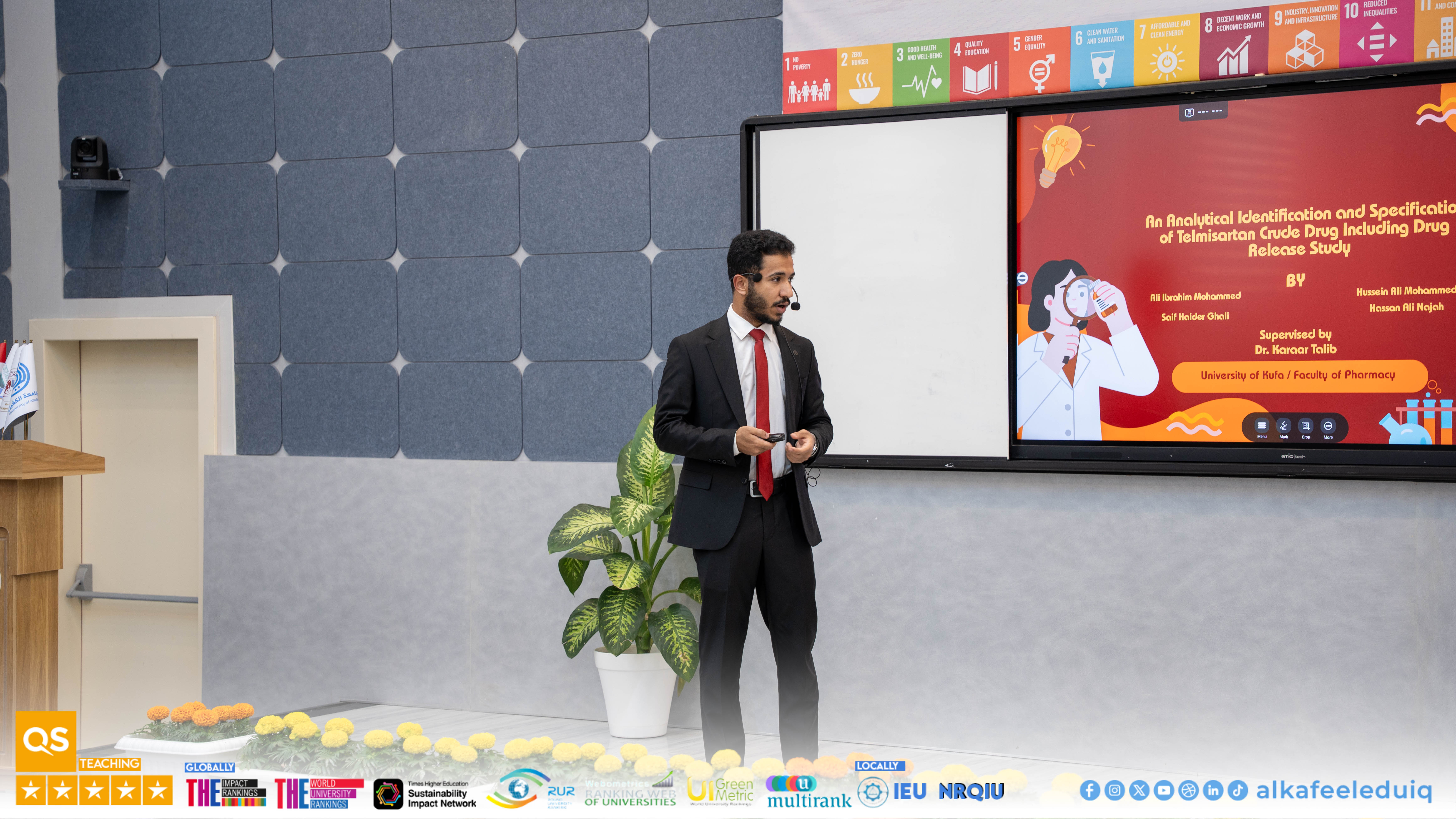 The discussions resulted in the first-place award for pharmacy students from the University of Karbala, while the second-place award went to pharmacy students from Al-Mustansiriya University. Third place was shared by pharmacy students from both University of Alkafeel and Al-Mustansiriya University. The sessions featured presentations of advanced scientific research addressing contemporary topics in the pharmaceutical field. These presentations reflected a high level of scientific expertise and demonstrated the ability of the students to utilize their academic knowledge to find innovative solutions to health and pharmaceutical challenges.